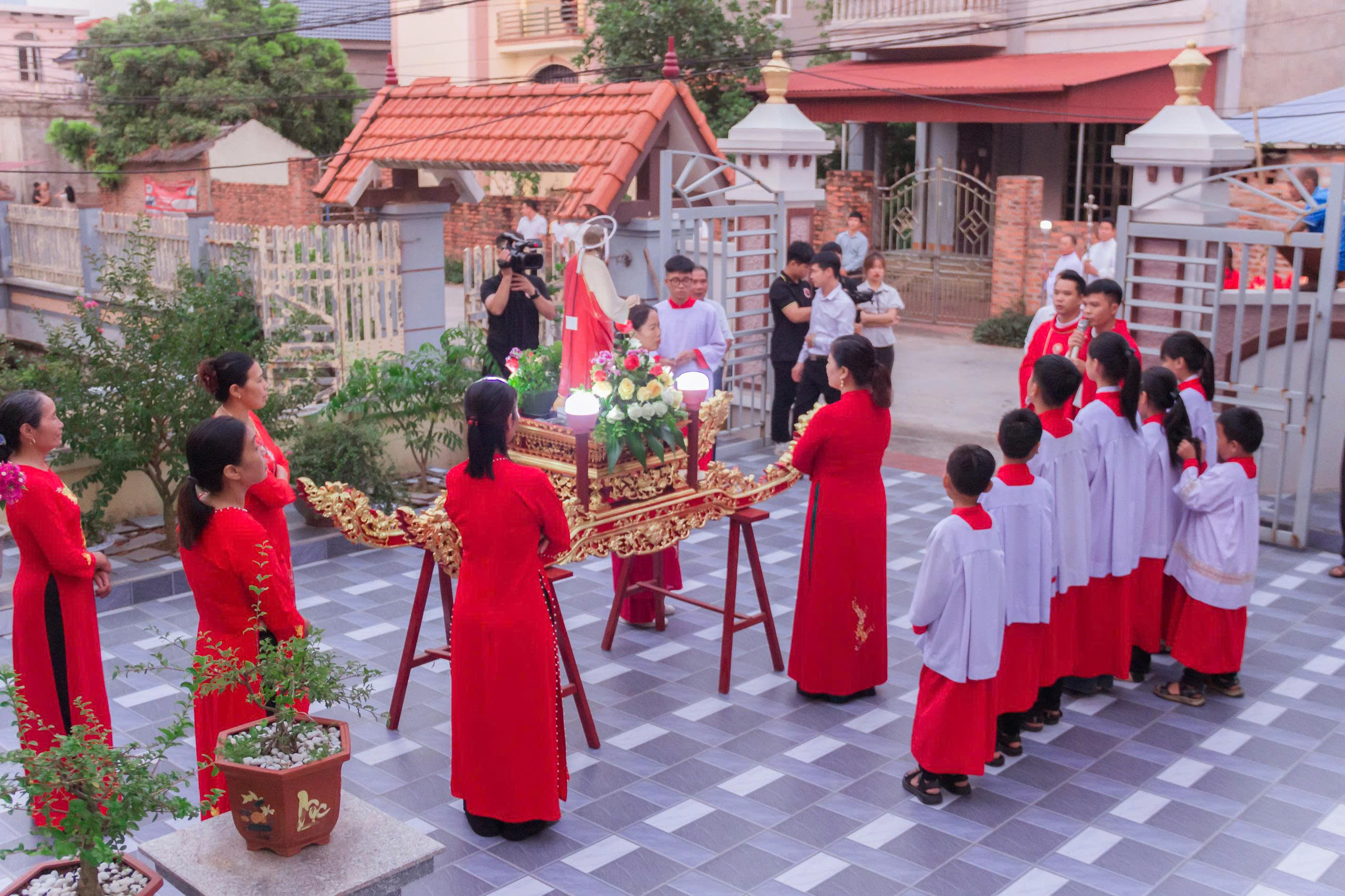 Trước thánh lễ, quý cha cùng cộng đoàn đã cung nghinh kiệu thánh Mátthêu trên những con đường cạnh khuôn viên giáo xứ.