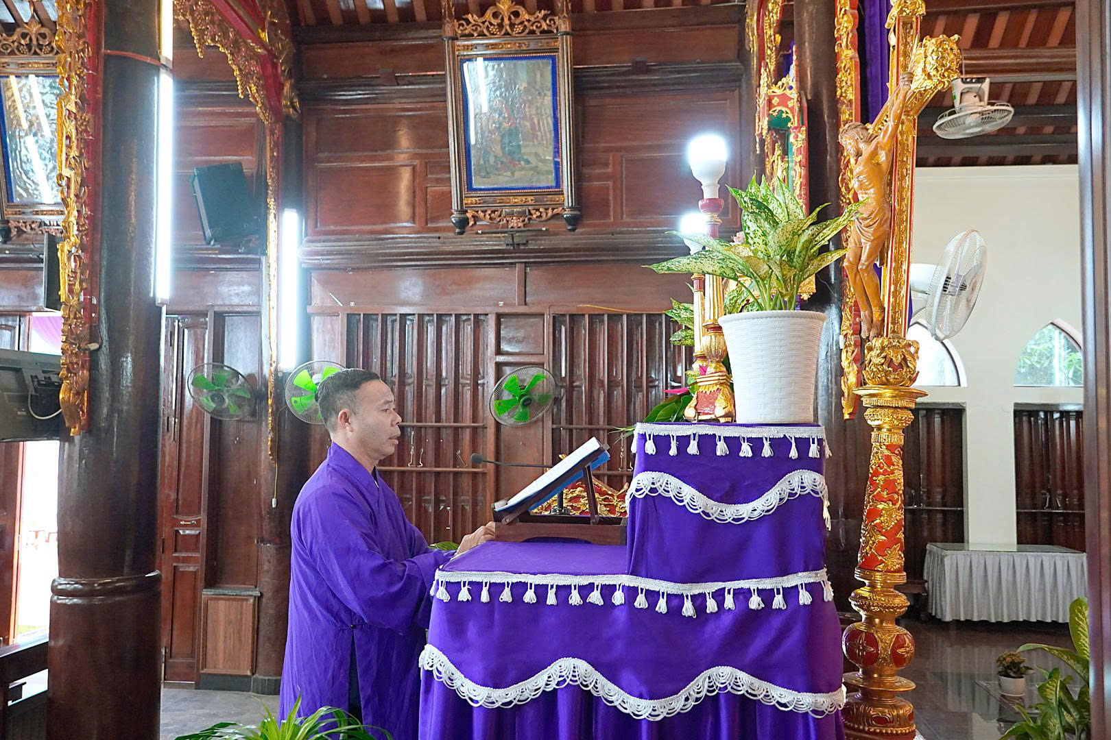 Mở đầu giờ giao lưu ngắm nguyện, cha xứ Gioakim Nguyễn Đình Hiệp thay lời cho cộng đoàn giáo xứ Xâm Bồ chào mừng quý cha, quý tu sĩ và toàn thể cộng đoàn đã hiện diện tham dự. Trong lời chia sẻ, ngài gợi nhắc về truyền thống đạo đức tốt đẹp của Giáo phận Hải Phòng qua các bài ngắm Mùa Chay, một hình thức đạo đức bình dân giúp các tín hữu suy niệm sâu xa hơn về cuộc Thương Khó của Đức Chúa Giêsu Kitô.