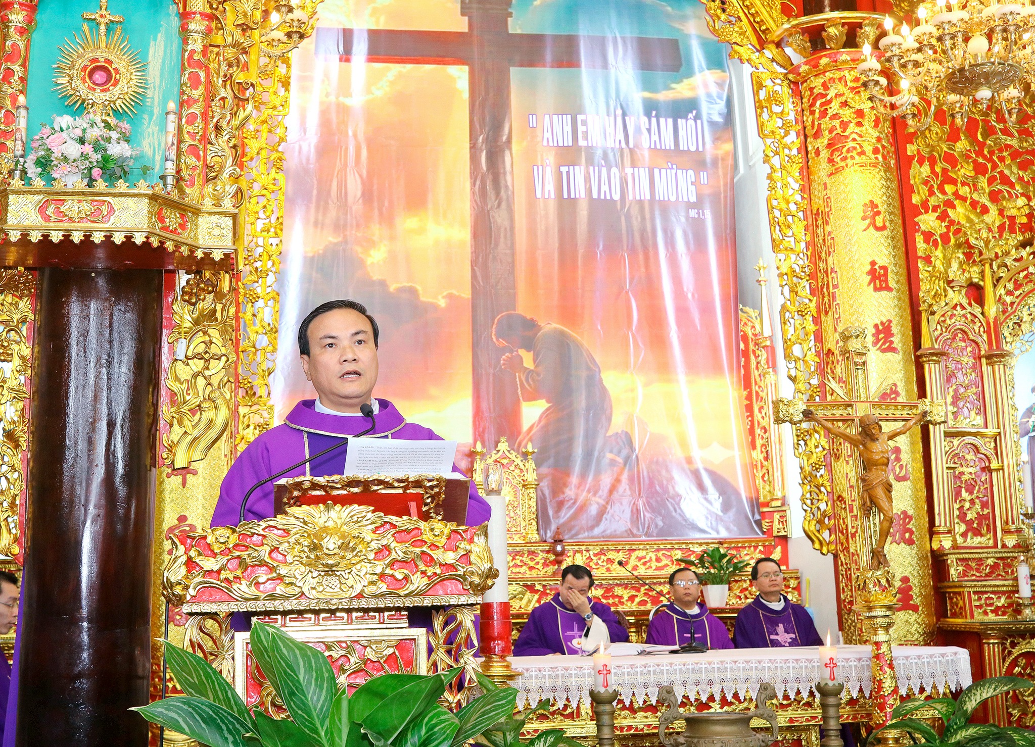 Trong bài giảng, cha Phanxicô Xaviê Nguyễn Bạch Dương chia sẻ về mầu nhiệm Thánh Thể và sức mạnh của Lời Thiên Chúa trong đời sống đức tin, giúp cộng đoàn chuẩn bị tâm hồn cho ngày Chầu Thánh Thể thay mặt Giáo phận sắp tới.