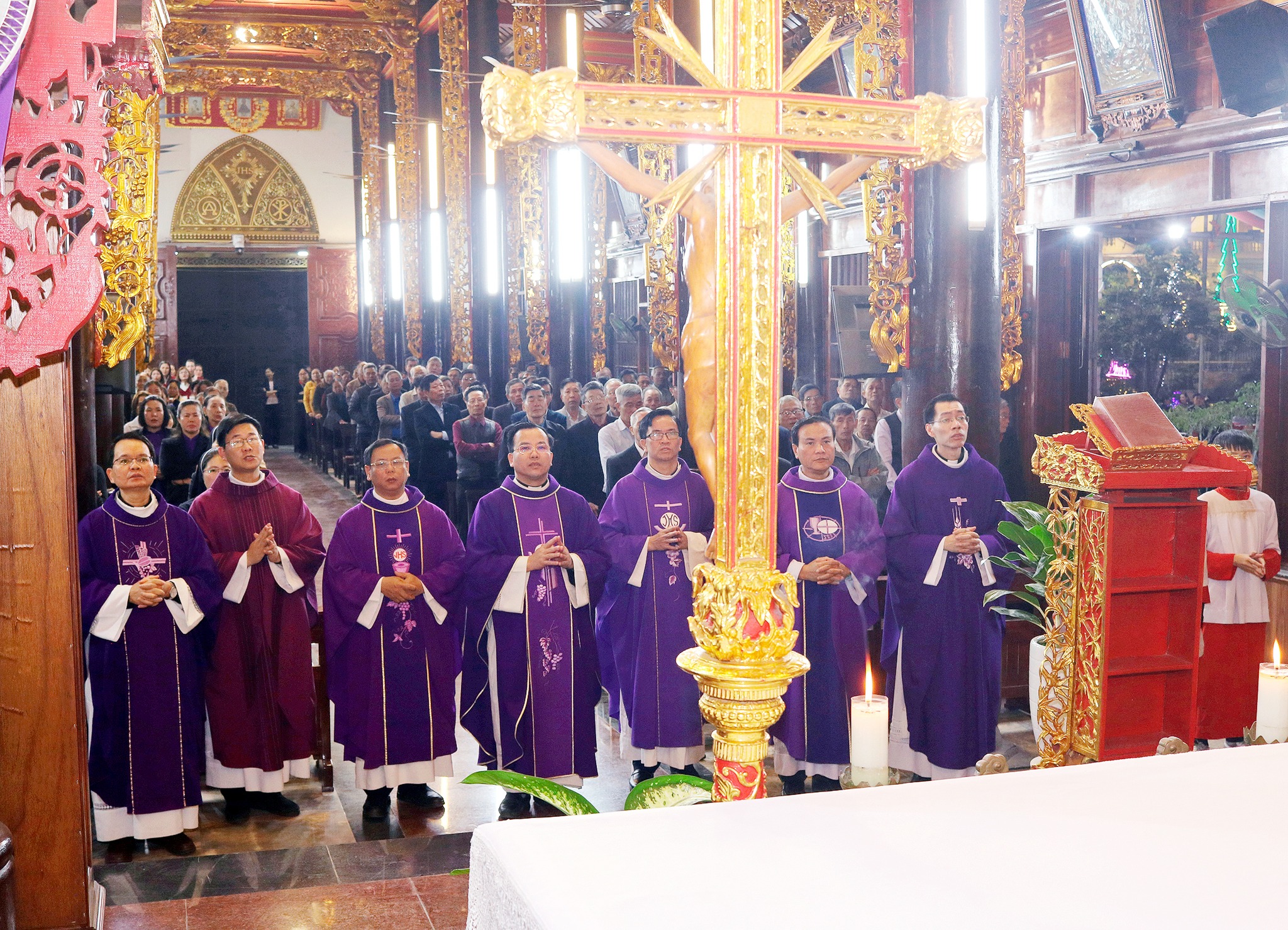 Thánh lễ đồng tế được cử hành vào lúc 18h30, do cha xứ Gioakim Nguyễn Đình Hiệp chủ sự, cùng với sự hiệp dâng của quý cha và đông đảo cộng đoàn tín hữu.