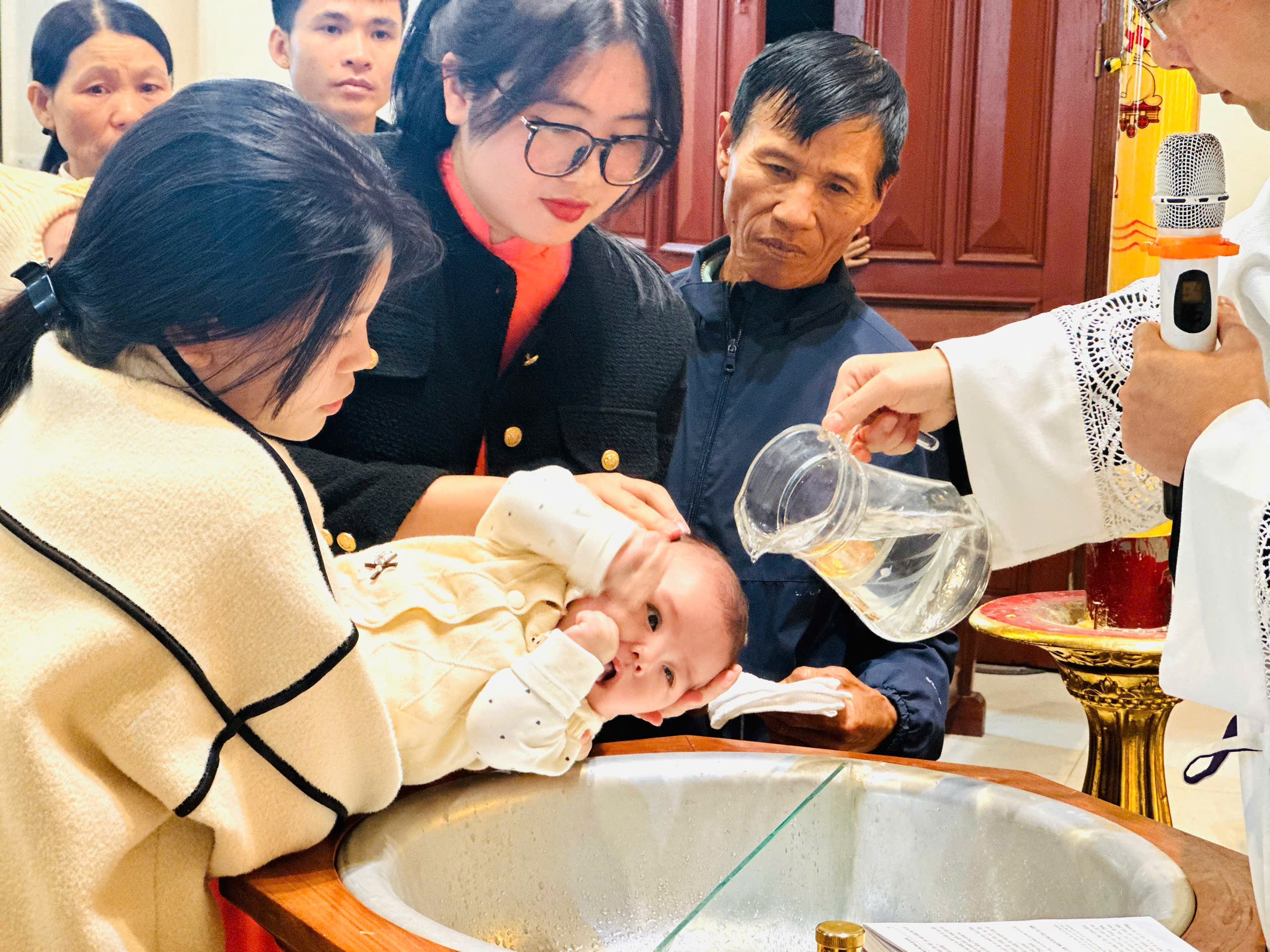 Thánh lễ khép lại trong niềm vui của toàn thể cộng đoàn, đặc biệt là gia đình của các “tân thành viên”: vui mừng hãnh diện vì là con Thiên Chúa – vui mừng hãnh diện vì được Thiên Chúa gọi “là con yêu dấu” để quyết tâm sống xứ đáng với ơn cao cả đó, hầu ngày sau được nghe tiếng Chúa Cha tuyên phán “con đã sống đẹp lòng Ta”.