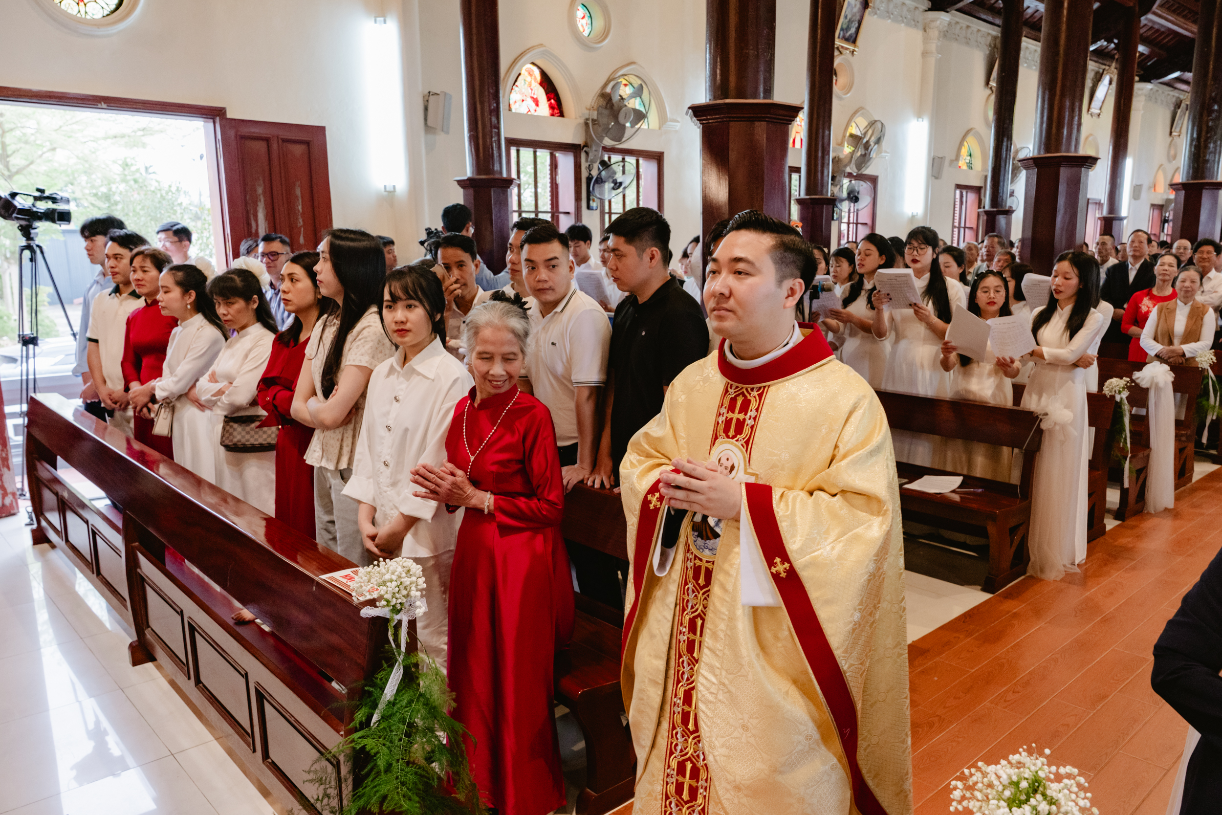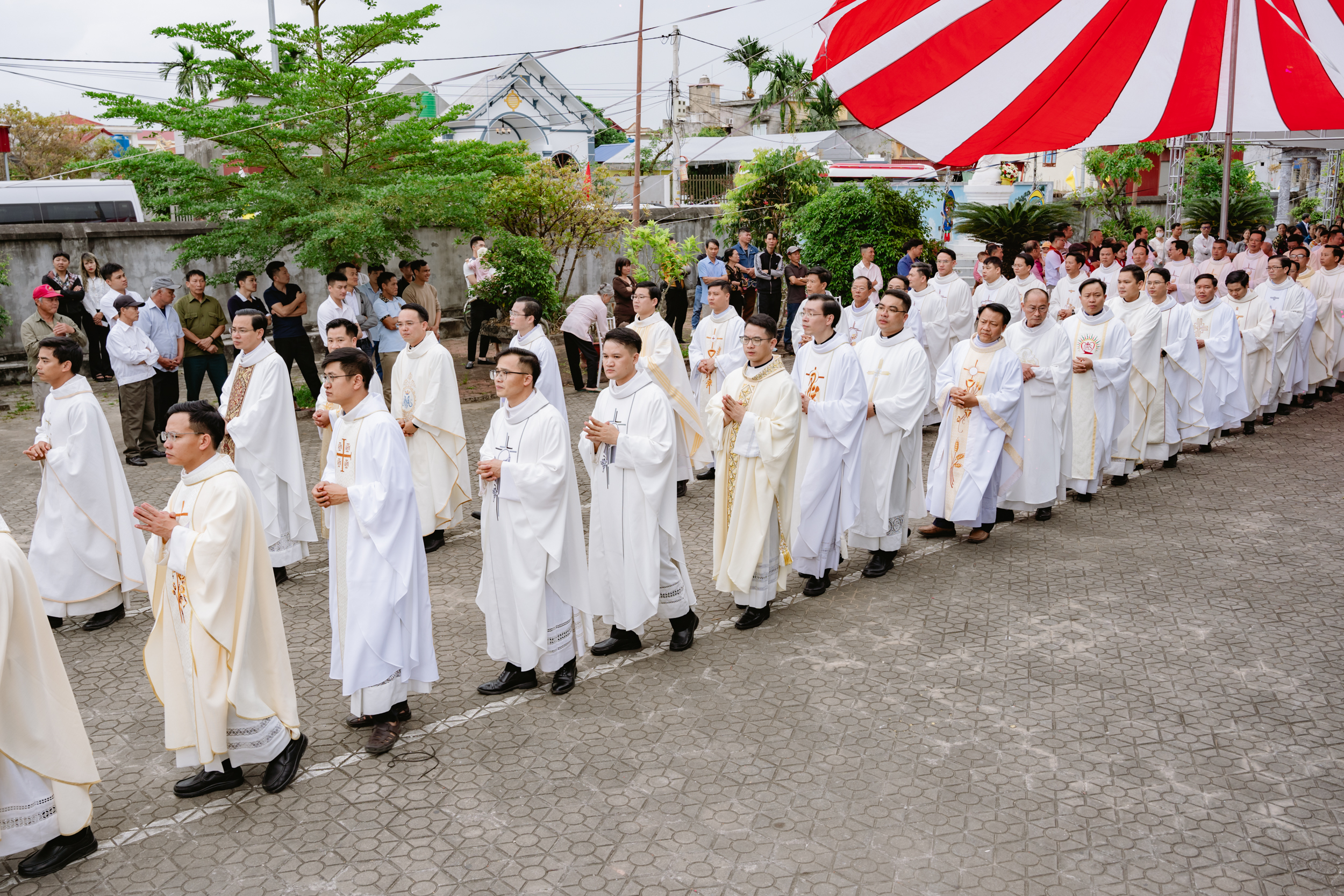 Hiệp dâng Thánh lễ có sự hiện diện đông đảo của quý cha trong và ngoài giáo phận, quý nam nữ tu sĩ, quý khách, cộng đoàn giáo dân giáo xứ sở tại và các cộng đoàn đến từ các Giáo xứ nơi Tân Linh mục từng thực tập mục vụ.