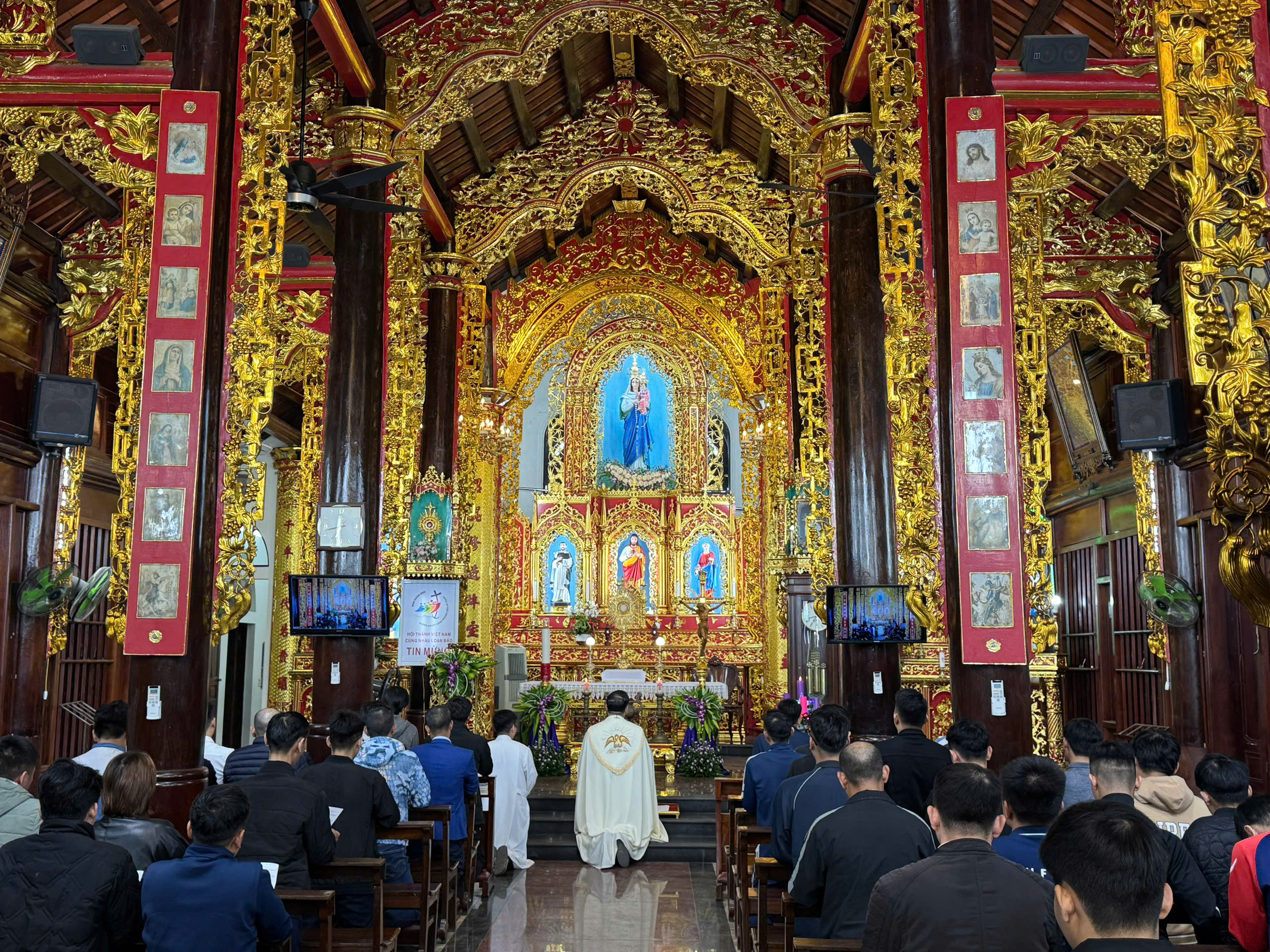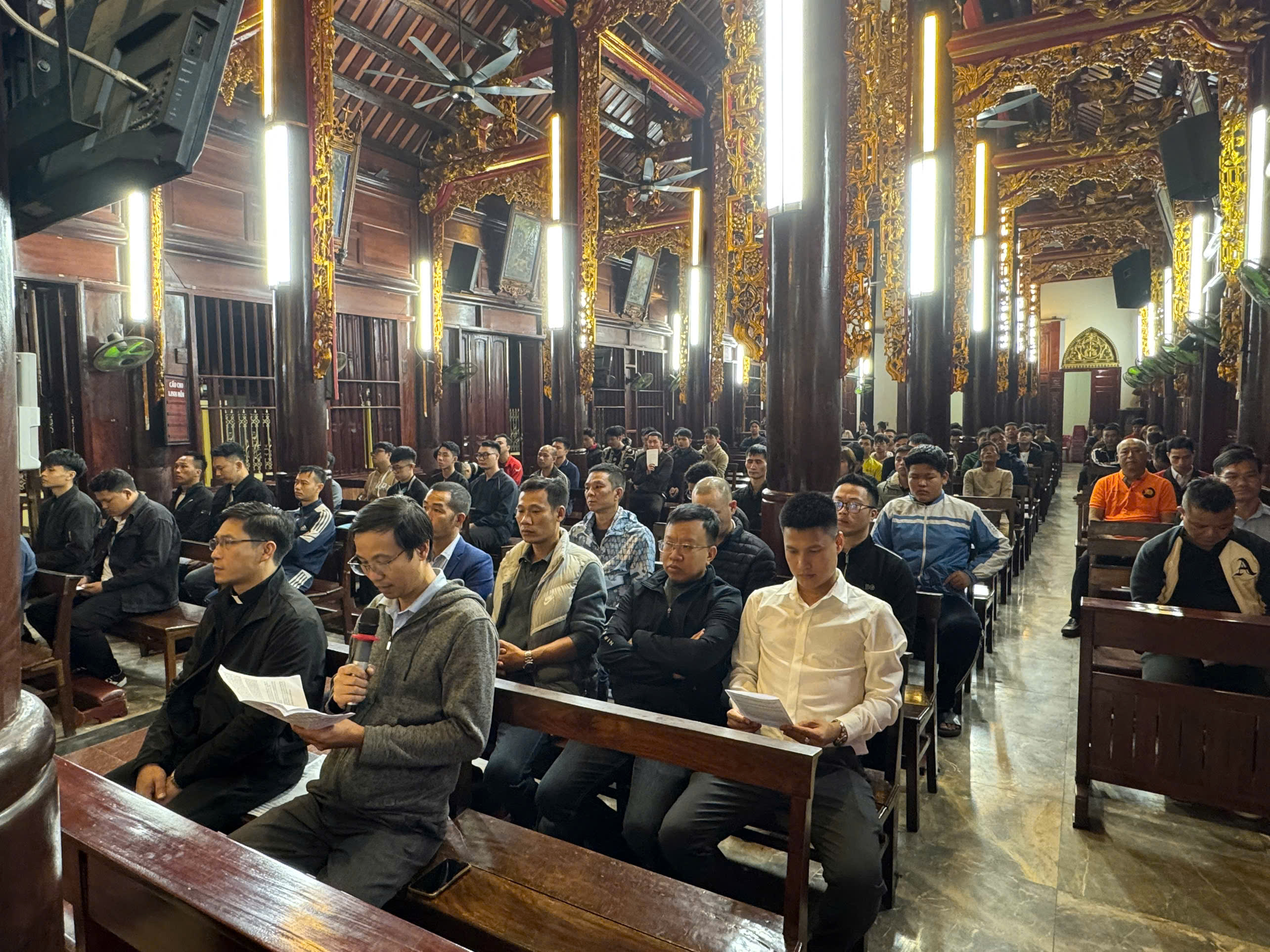Khởi đầu chương trình, các đội bóng đến từ các giáo xứ: Chính Tòa, Xâm Bồ, Lương Khê, Nam Pháp, Cựu Viên, Lãm Hà, Hữu Quan và Đồng Giá đã quy tụ về Thánh đường Giáo xứ Xâm Bồ để gặp gỡ Chúa trong giờ Chầu Thánh Thể trang nghiêm và sốt sắng.