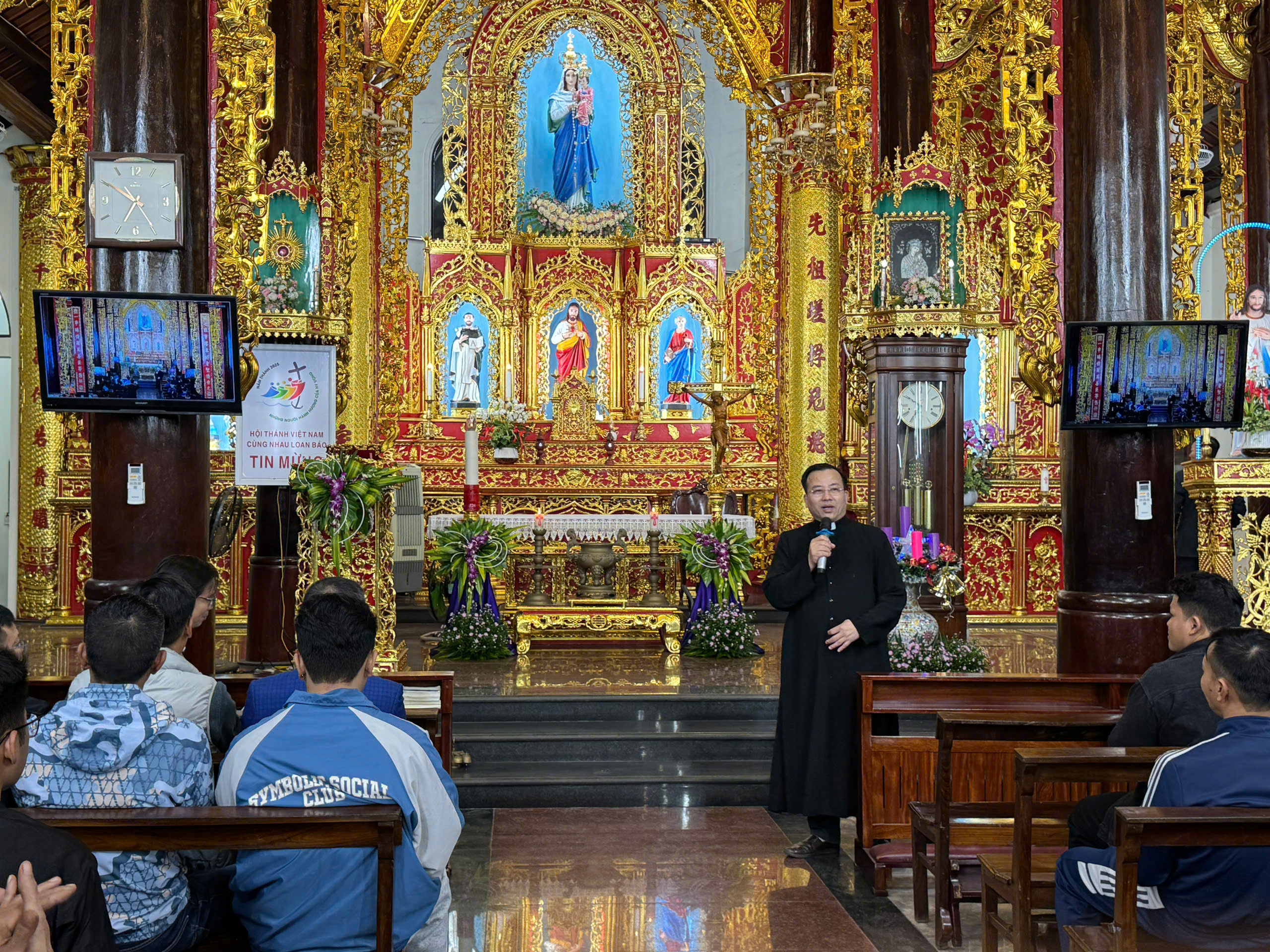 Trong phần chia sẻ, Cha Gioakim mời gọi các cầu thủ tham gia với tinh thần thi đấu lành mạnh, gặp gỡ trong yêu thương. Ngài nhấn mạnh rằng: “Mỗi cầu thủ mà chúng ta gặp, mỗi lần giao lưu hay kèm cặp nhau trên sân bóng – chính là lúc chúng ta gặp Chúa trong anh em mình”.