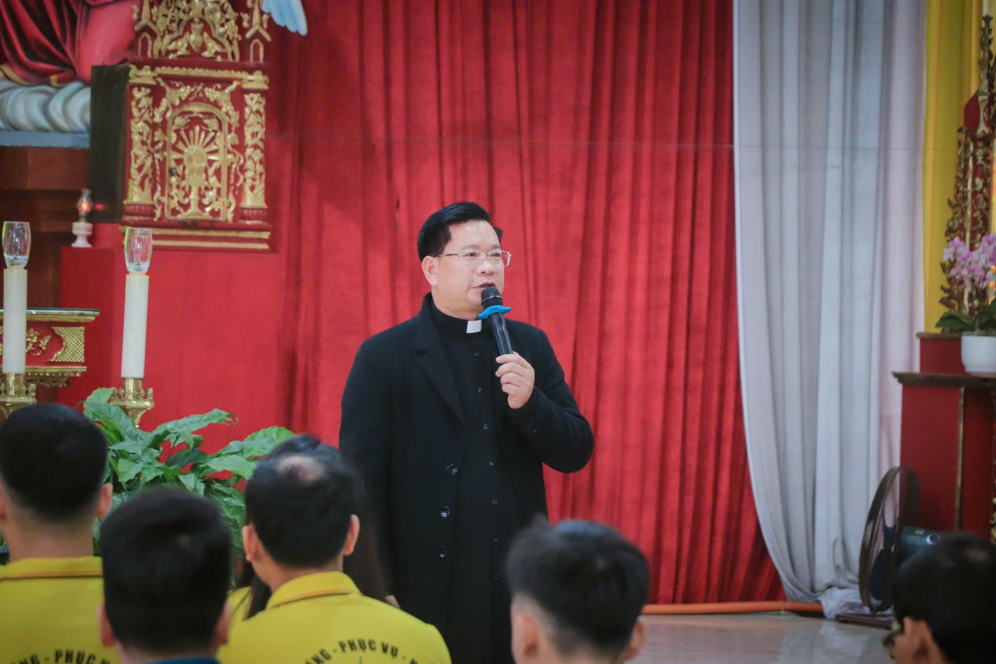 Ngay từ sớm, bầu khí Đền thánh đã tràn ngập tiếng hát, niềm vui gặp gỡ và tinh thần hiệp nhất, yêu thương. Các bạn trẻ bước vào chương trình tĩnh tâm với tâm hồn lắng đọng, lắng nghe phần chia sẻ của Cha Phêrô Đoàn Văn Khải – Đặc trách Giới trẻ Giáo phận, với chủ đề: “Giới trẻ Hạt Hải Dương trở về Nguồn Hy vọng Giêsu.”
