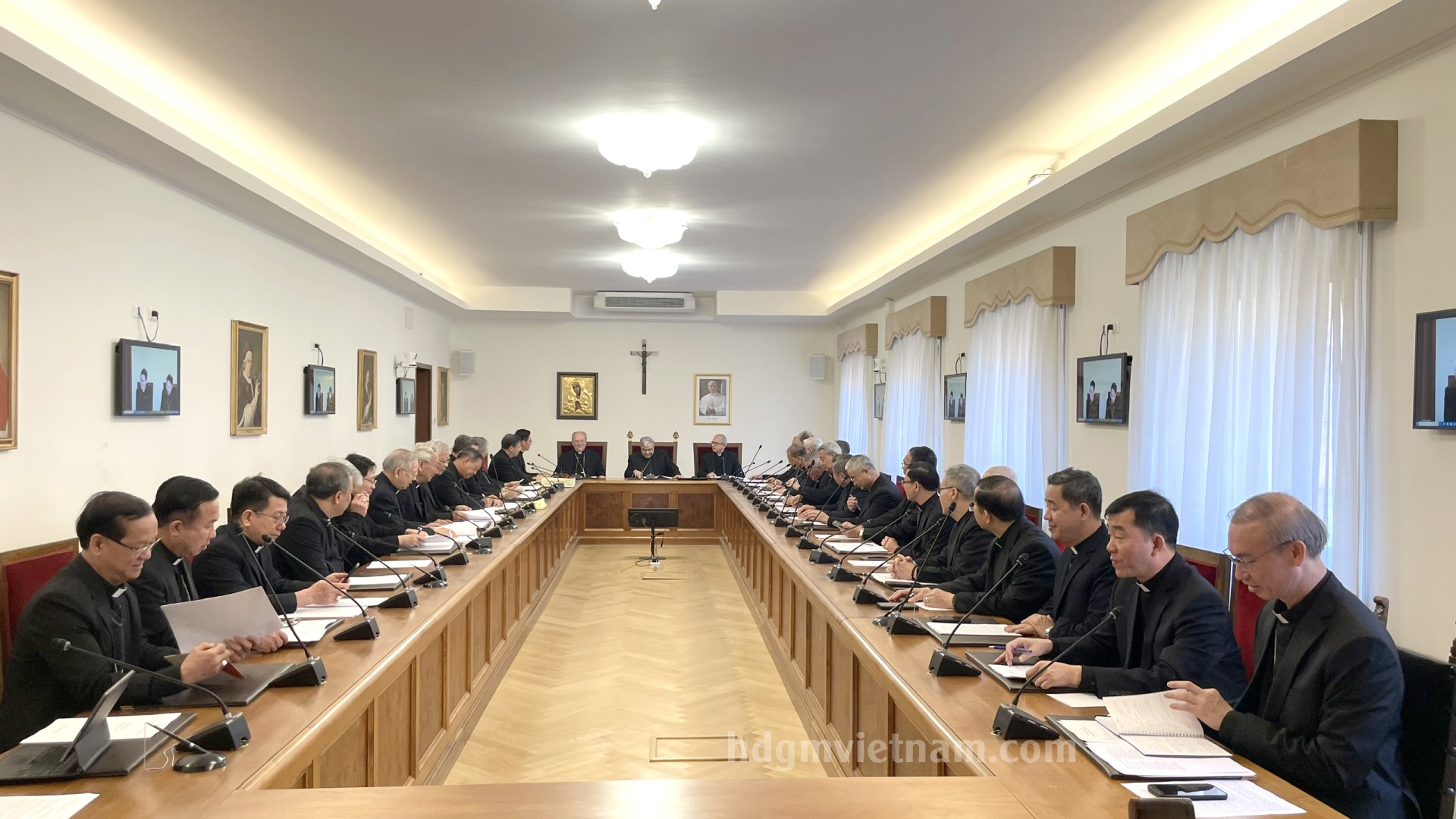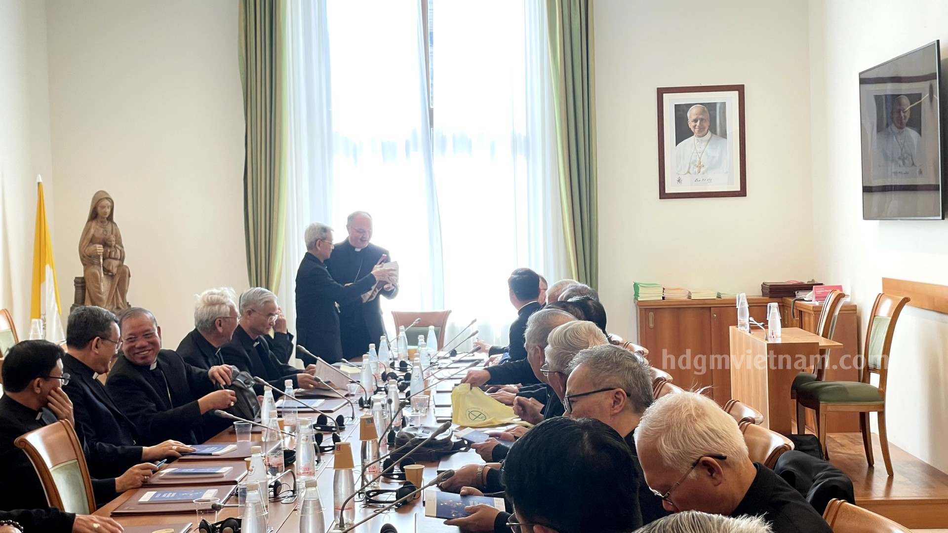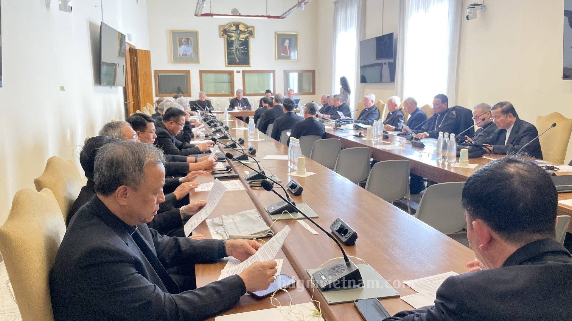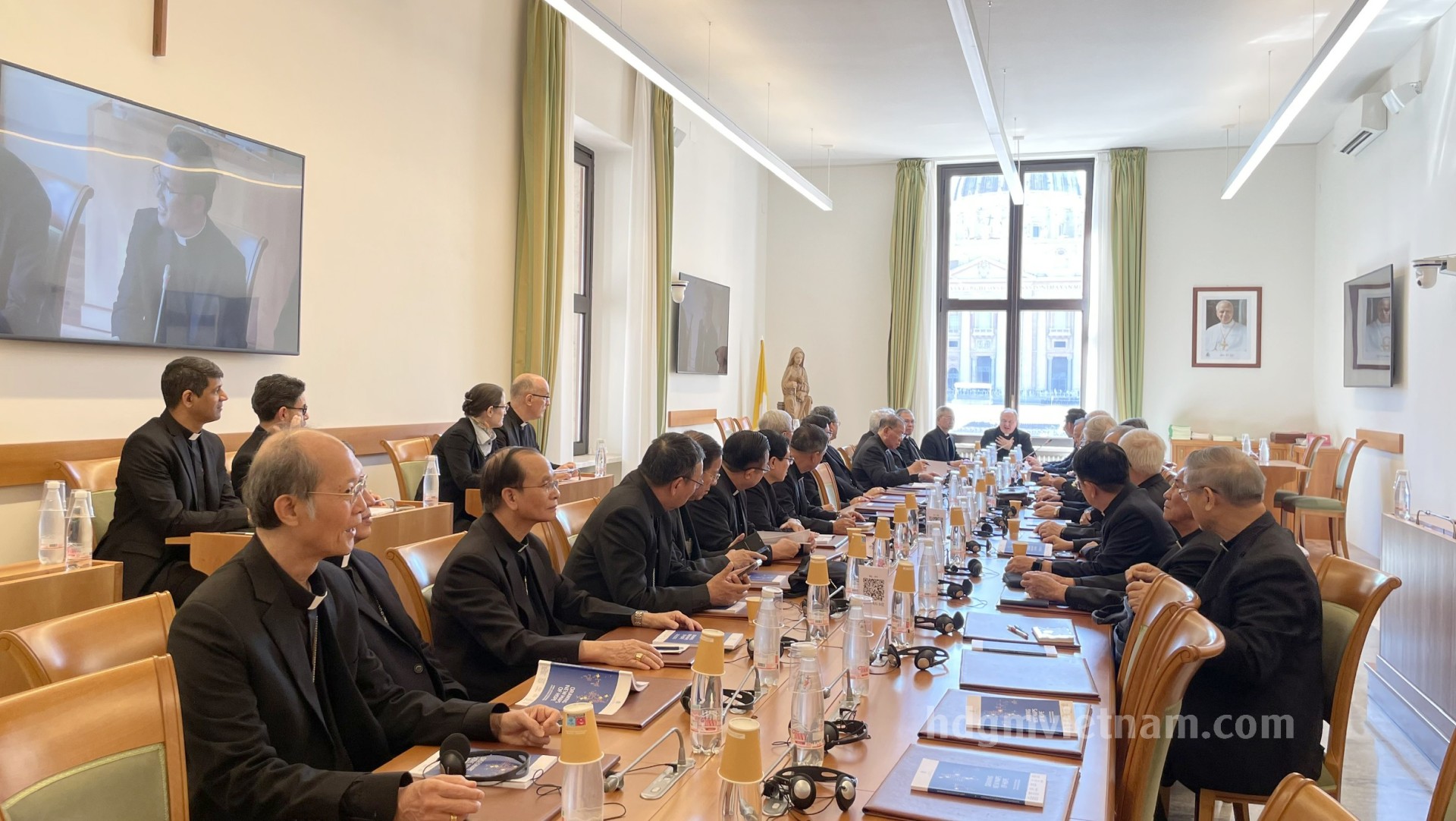 Kết thúc ngày làm việc thứ IV, các Đức Giám mục trở về nhà Foyer Phát Diệm, tiếp tục những giây phút hiệp thông huynh đệ, nghỉ ngơi, tái tạo lại năng lượng để sẵn sàng cho ngày làm việc thứ V, ngày Yết kiến Đức Thánh cha Lêô XIV. Xin cộng đoàn tiếp tục hiệp thông và cầu nguyện cho các Đức Giám mục có những ngày Ad Limina hiệu quả, đem lại nhiều hoa trái thiêng liêng cho các ngài và Hội thánh tại Việt Nam.