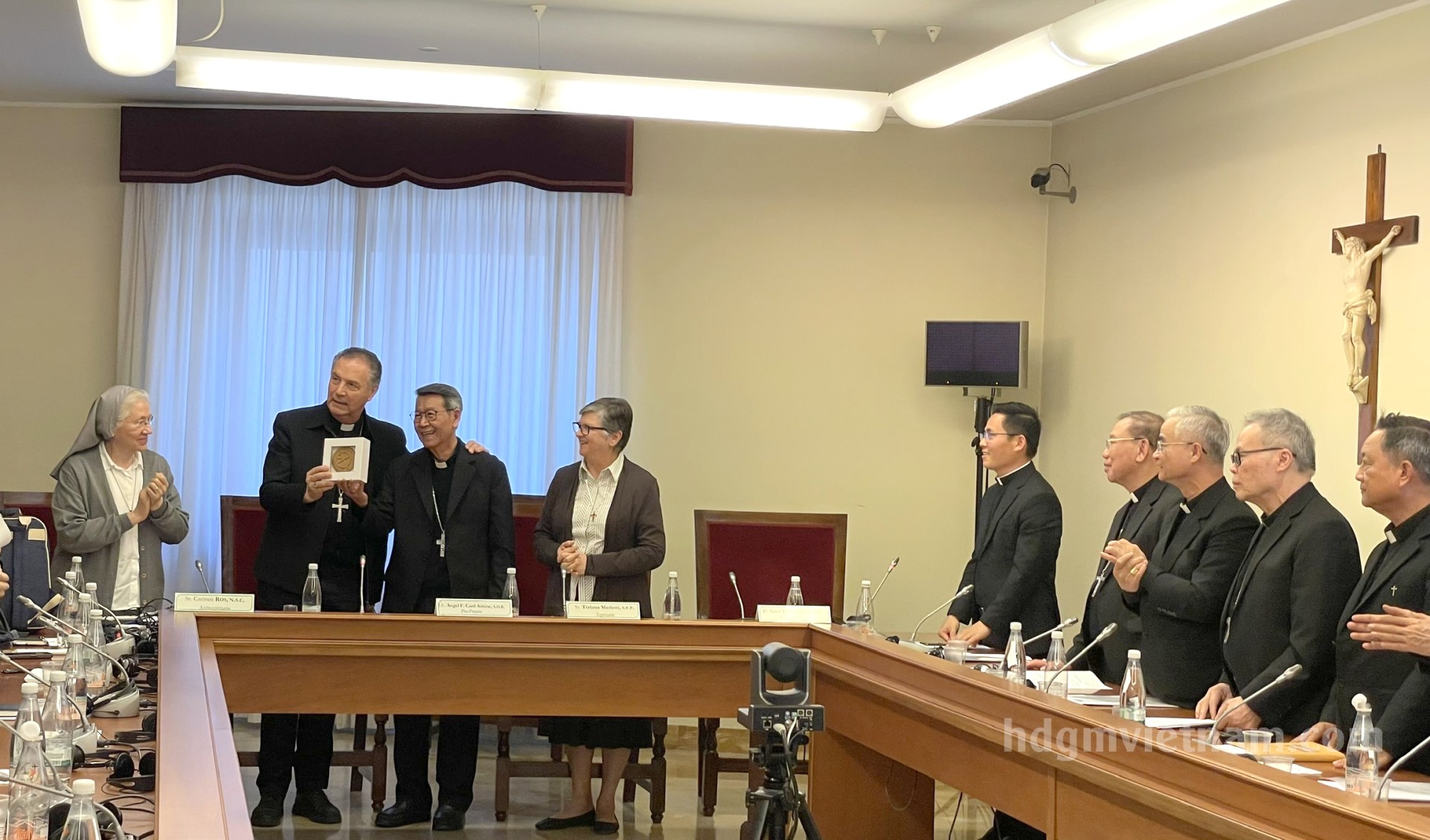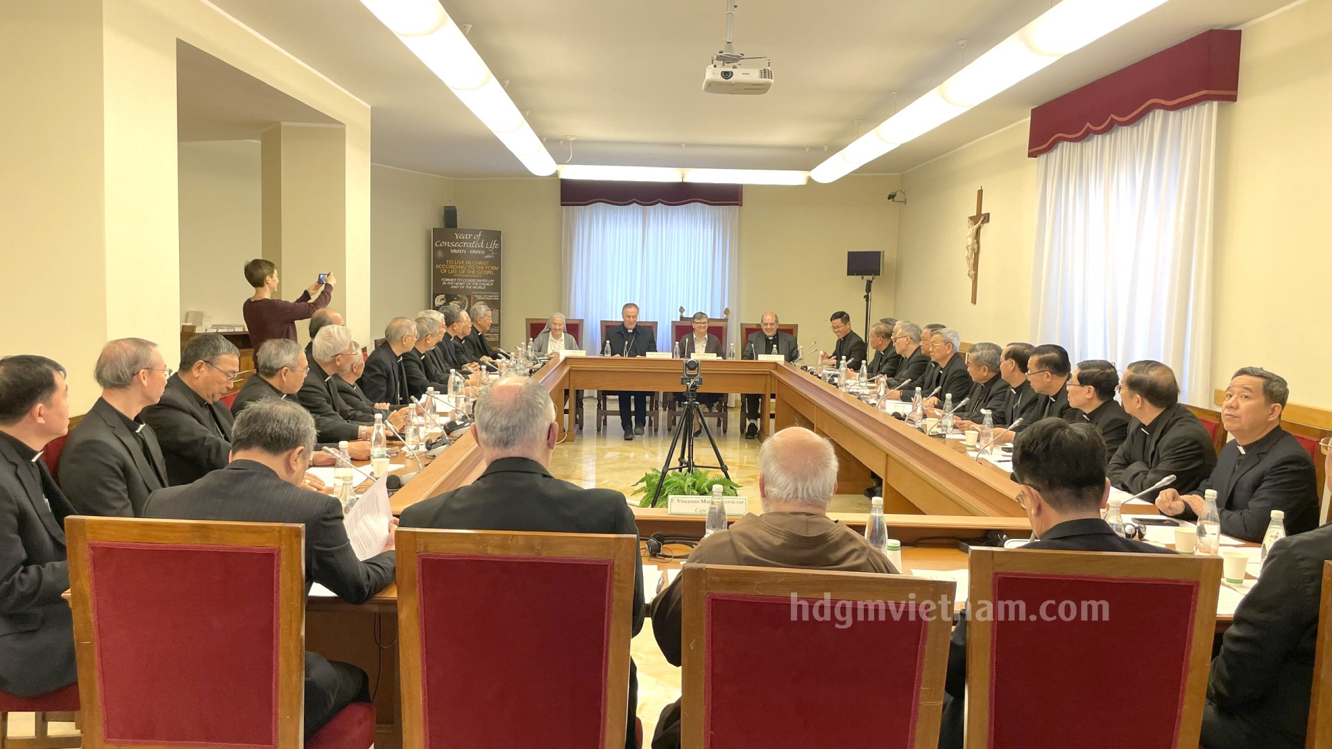 Đức cha Phêrô Nguyễn Văn Khảm, Chủ tịch Ủy ban Tu sĩ, đã đại hiện HĐGMVN chia sẻ về niềm vui và thách đố của các tu sĩ và người sống đời thánh hiến hiện nay tại Việt Nam. Đức Hồng y Phó Bộ trưởng đã nói lên niềm vui mừng về sức sống, sự năng động và phong phú về ơn gọi tu sĩ và đời sống thánh hiến ở Việt Nam. Bộ đã kiên nhẫn lắng nghe các Đức Giám mục vừa giải trình, vừa thắc mắc về đời sống các dòng tu, qua đó hiểu hơn về tiến trình hình thành và những đặc thù của các dòng tu cấp giáo phận tại Việt Nam.