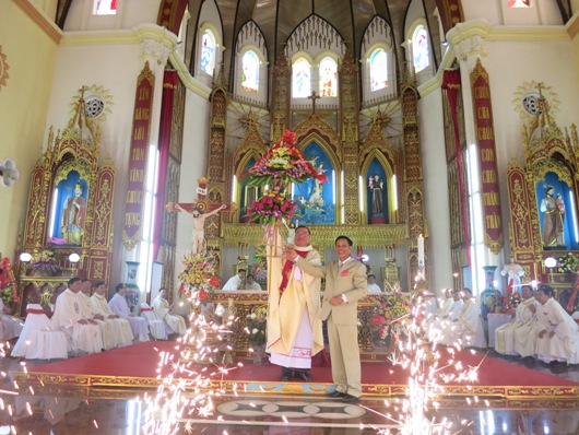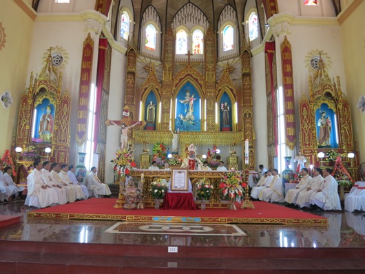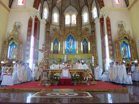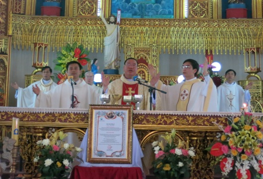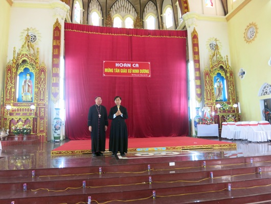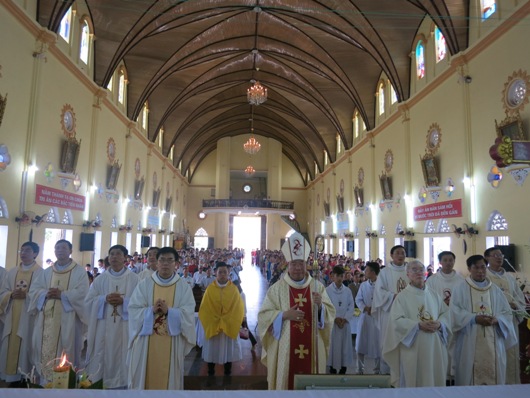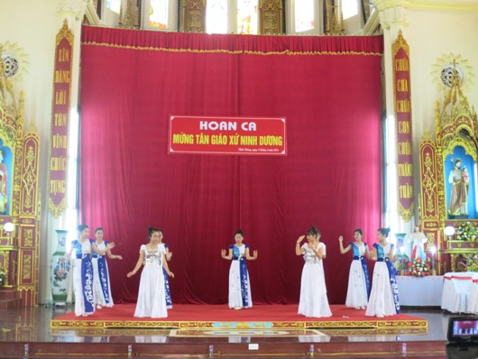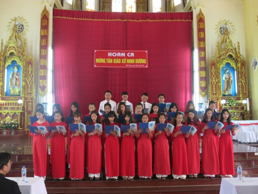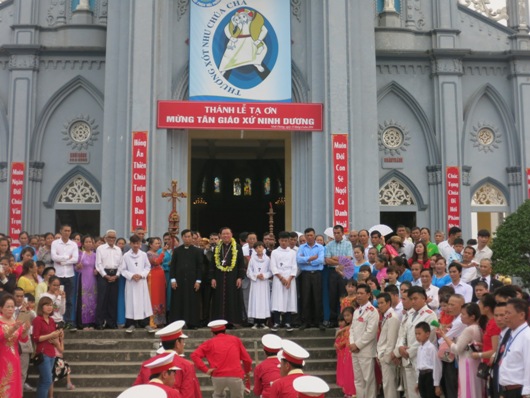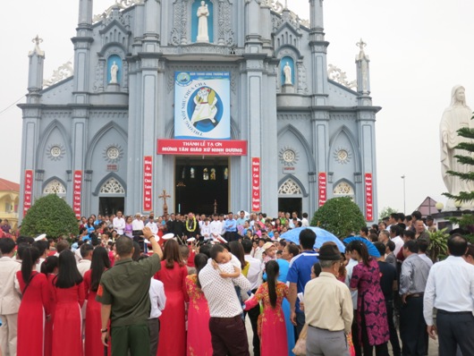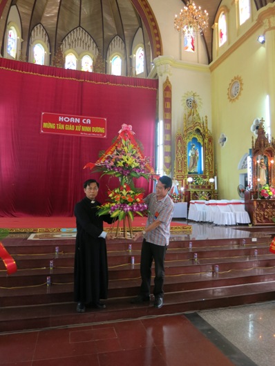 Đức Giám mục giáo phận đã trao quyết định và chủ sự thánh lễ tạ ơn lên xứ của giáo xứ Ninh Dương vào lúc 10h30 sáng nay (13/4/2016). Cùng đồng tế, có cha xứ Giuse Ngô Văn Vàng, quý cha quản hạt Hòn Gai, Mạo Khê, Nam Am cùng quý cha khách. Tham dự thánh lễ đặc biệt này, ngoài cộng đoàn Ninh Dương còn có quý khách chính quyền, quý khách đến từ các giáo xứ bạn và nhất là có những người con Ninh Dương xa quê.