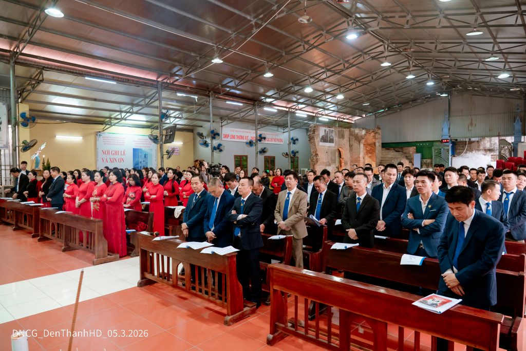 Hiệp dâng Thánh lễ có sự hiện diện của Cha cố Antôn Nguyễn Văn Uy cùng quý Cha đặc trách các nhóm doanh nhân. Chủ tế Thánh lễ là Linh mục Giuse Nguyễn Văn Vang, Giám đốc Đền thánh. Cha Gioan Baotixita Vũ Văn Kiện, Linh hướng Hội Doanh nhân Công giáo Giáo phận Hải Phòng, đã chia sẻ Lời Chúa với cộng đoàn.