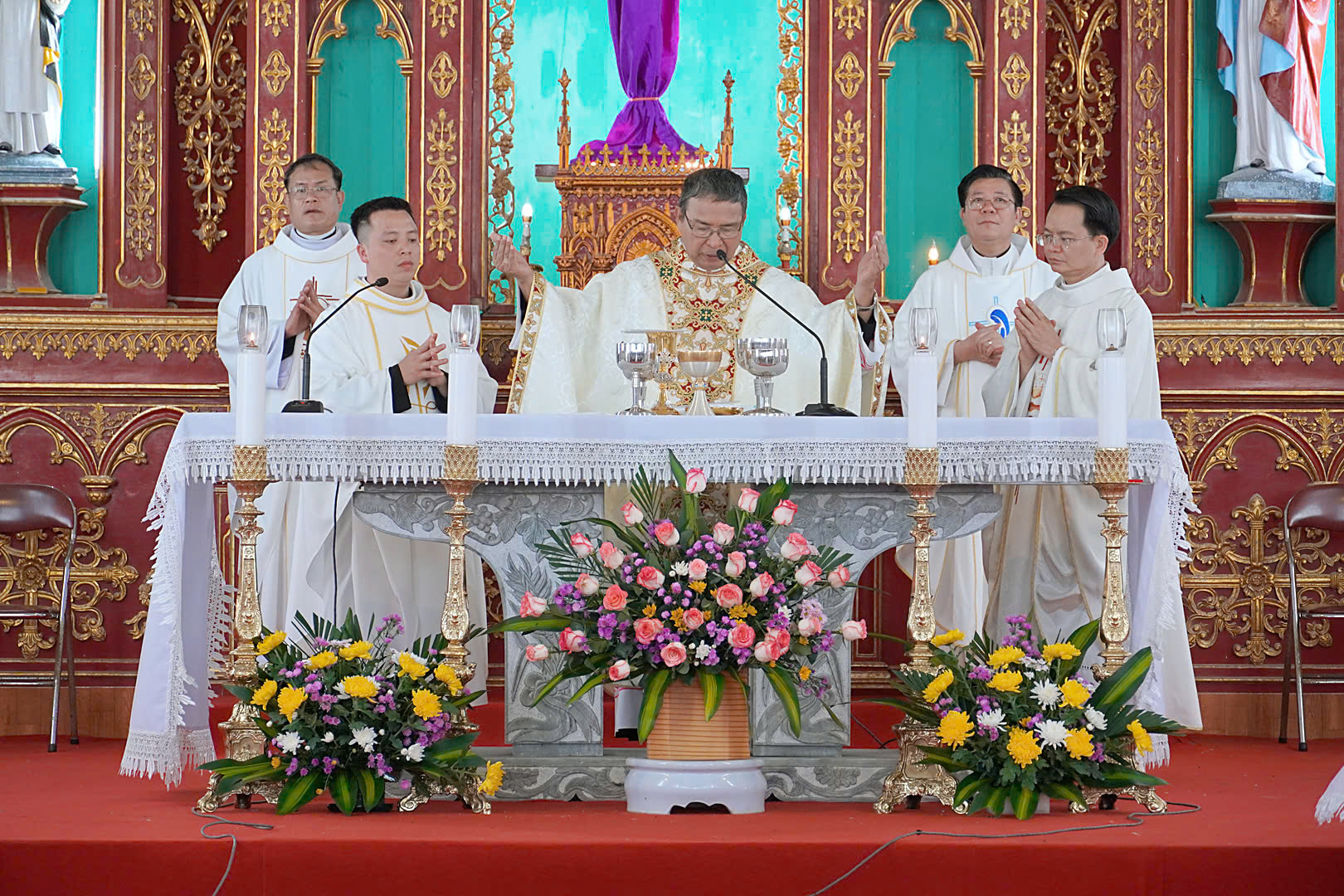 Đỉnh cao của ngày Tĩnh huấn là Thánh lễ tạ ơn do Đức cha Vinh sơn chủ tế và quý cha đồng tế.