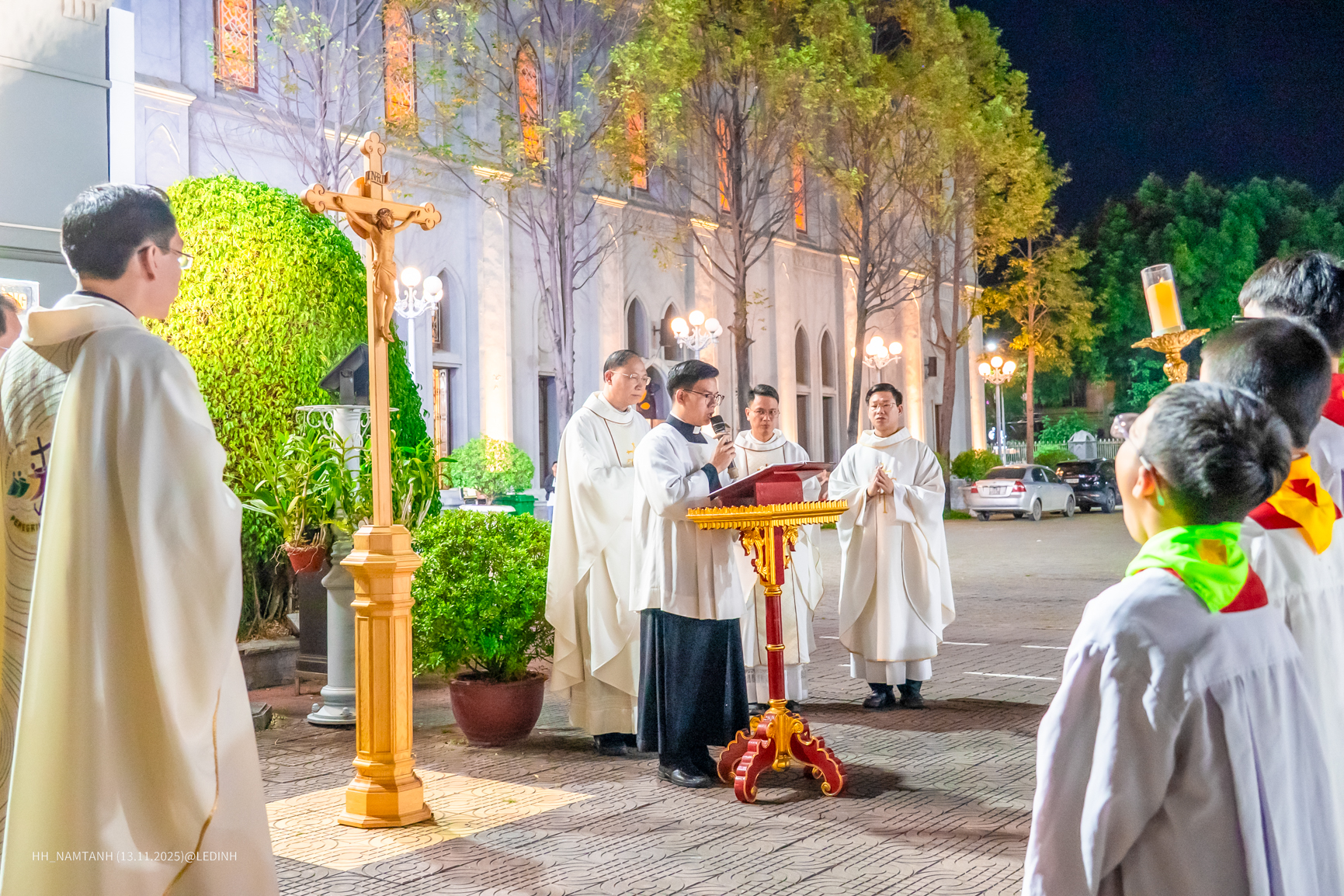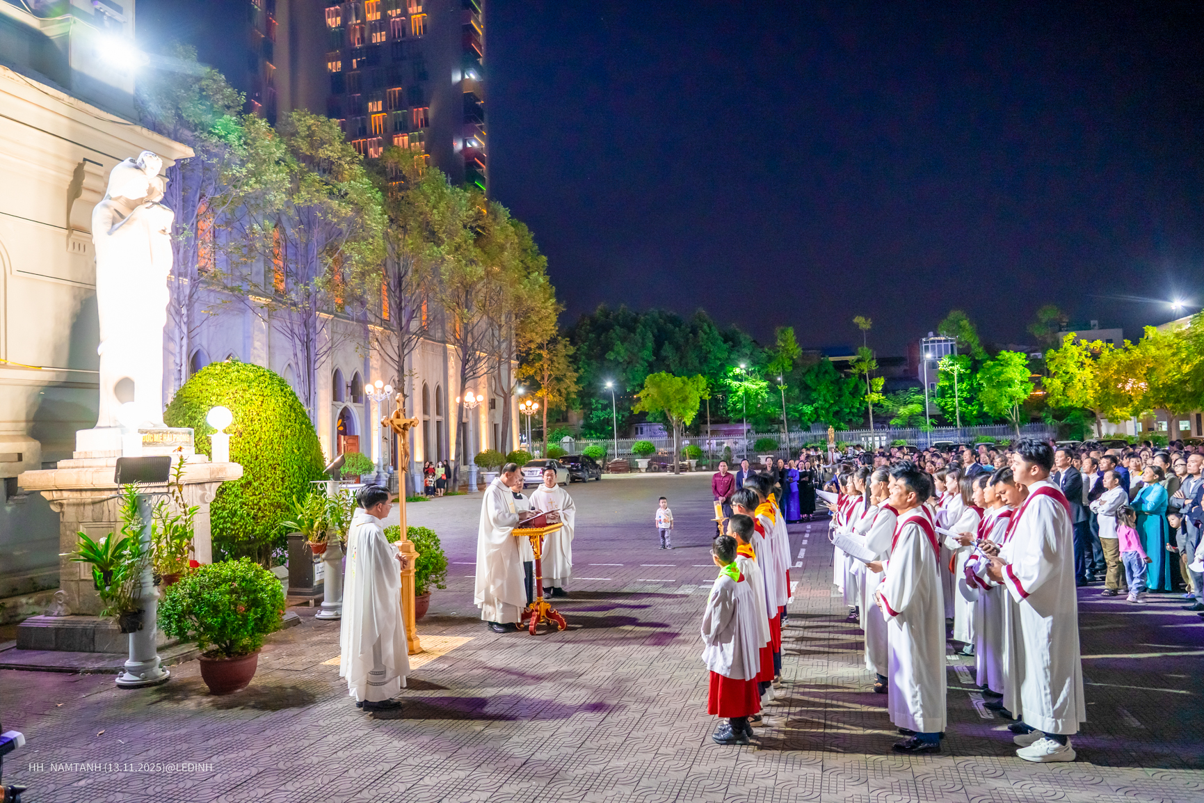 Trước Thánh lễ, vào lúc 17h45, cộng đoàn cùng quy tụ trước tượng đài Đức Mẹ Hải Phòng và Thánh Giá Năm Thánh để cử hành nghi thức Năm Thánh do Cha Tổng Đại diện Phêrô Nguyễn Văn Nguyên – chính xứ Chính Tòa – chủ sự.