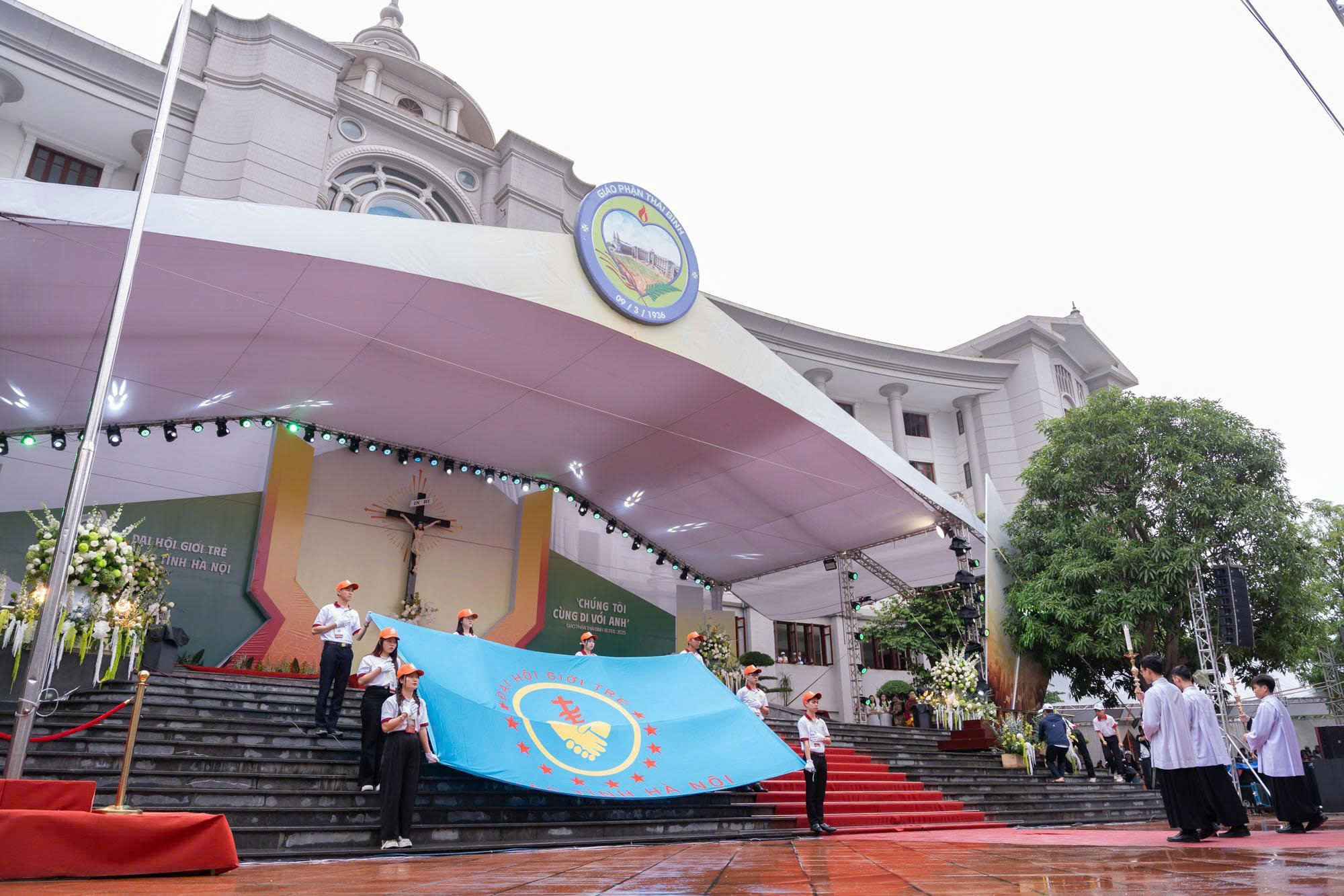 Ngay sau đó, nghi thức thượng cờ Đại hội được cử hành trong sự trang trọng, khơi dậy trong tâm hồn người trẻ quyết tâm sống đức tin cách mạnh mẽ giữa lòng xã hội hôm nay. Lá cờ Đại hội tung bay trong niềm tin, hy vọng và tình yêu, như lời nhắn nhủ người trẻ hãy trở nên “muối men và ánh sáng” cho thế giới.