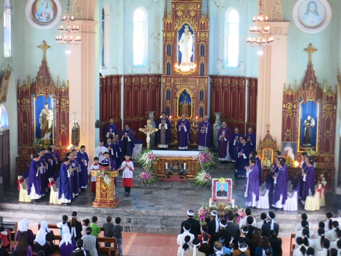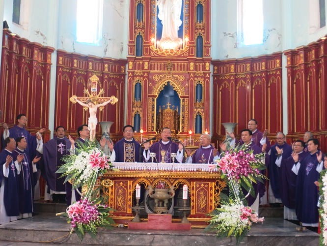 “Từ vực sâu, con cầu lên Chúa, Chúa ơi! Đó cũng là lời cầu nguyện của những kẻ nhận ra sự yếu đuối của mình, của những kẻ đã từ bỏ cõi trần chỉ còn biết trông chờ vào lòng nhân hậu khoan dung của Chúa, đó còn là lời kêu cầu của những người lữ hành nơi trần gian này, mong được sớm giải thoát, để về hưởng hạnh phúc muôn đời với Chúa”. Đức cha đã khởi đầu thánh lễ bằng lời cầu khẩn trên.