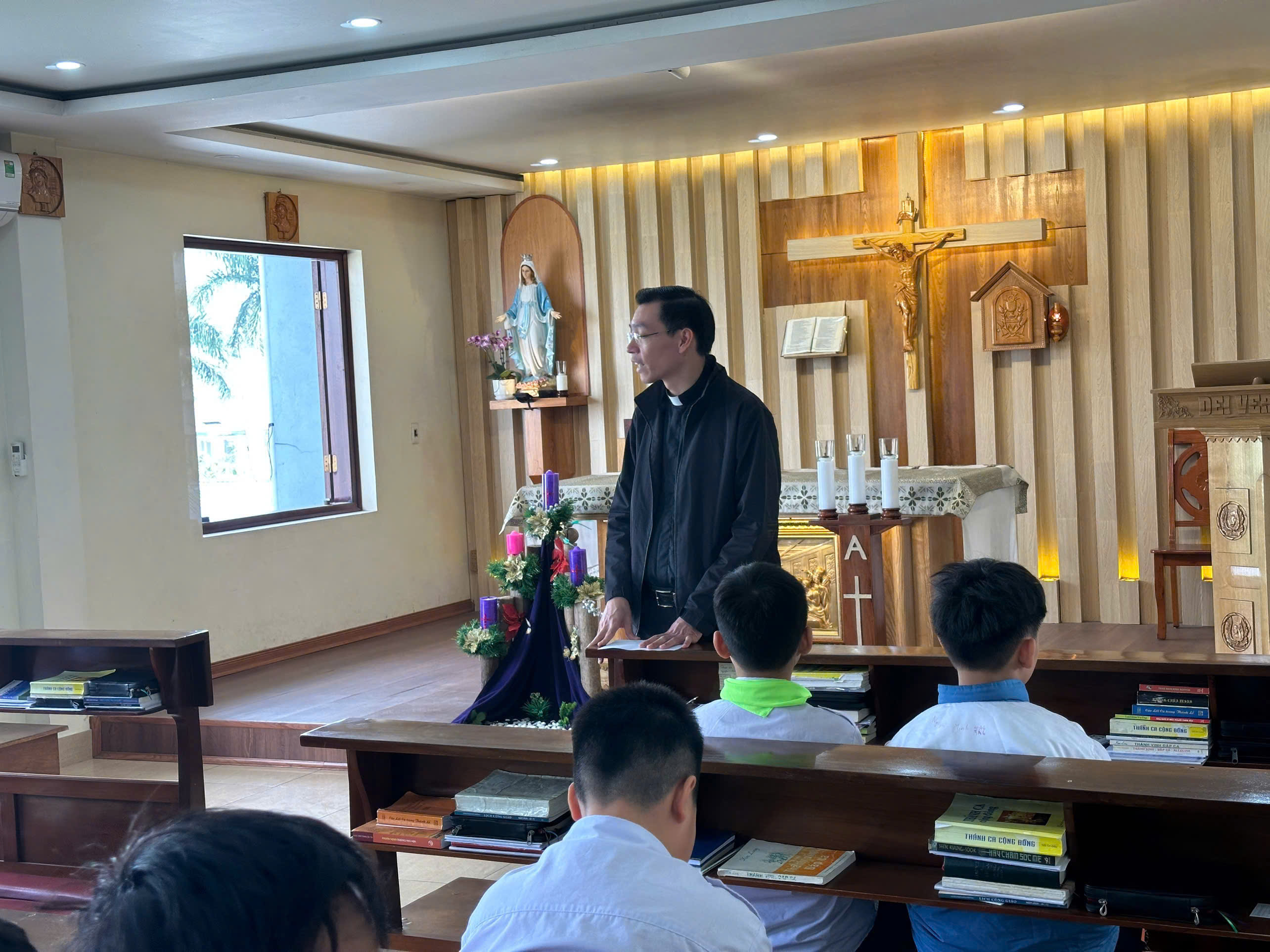 Trong buổi gặp gỡ ngắn gọn nhưng ấm cúng, Cha Giám đốc đã giới thiệu cho các em sơ lược về đời sống thường ngày, lịch trình sinh hoạt cũng như chương trình đào tạo tại Tiền Chủng viện. Qua đó, các em có cơ hội cảm nhận cụ thể hơn về hành trình ơn gọi và sứ mạng cao cả mà một Linh mục được mời gọi bước vào.
