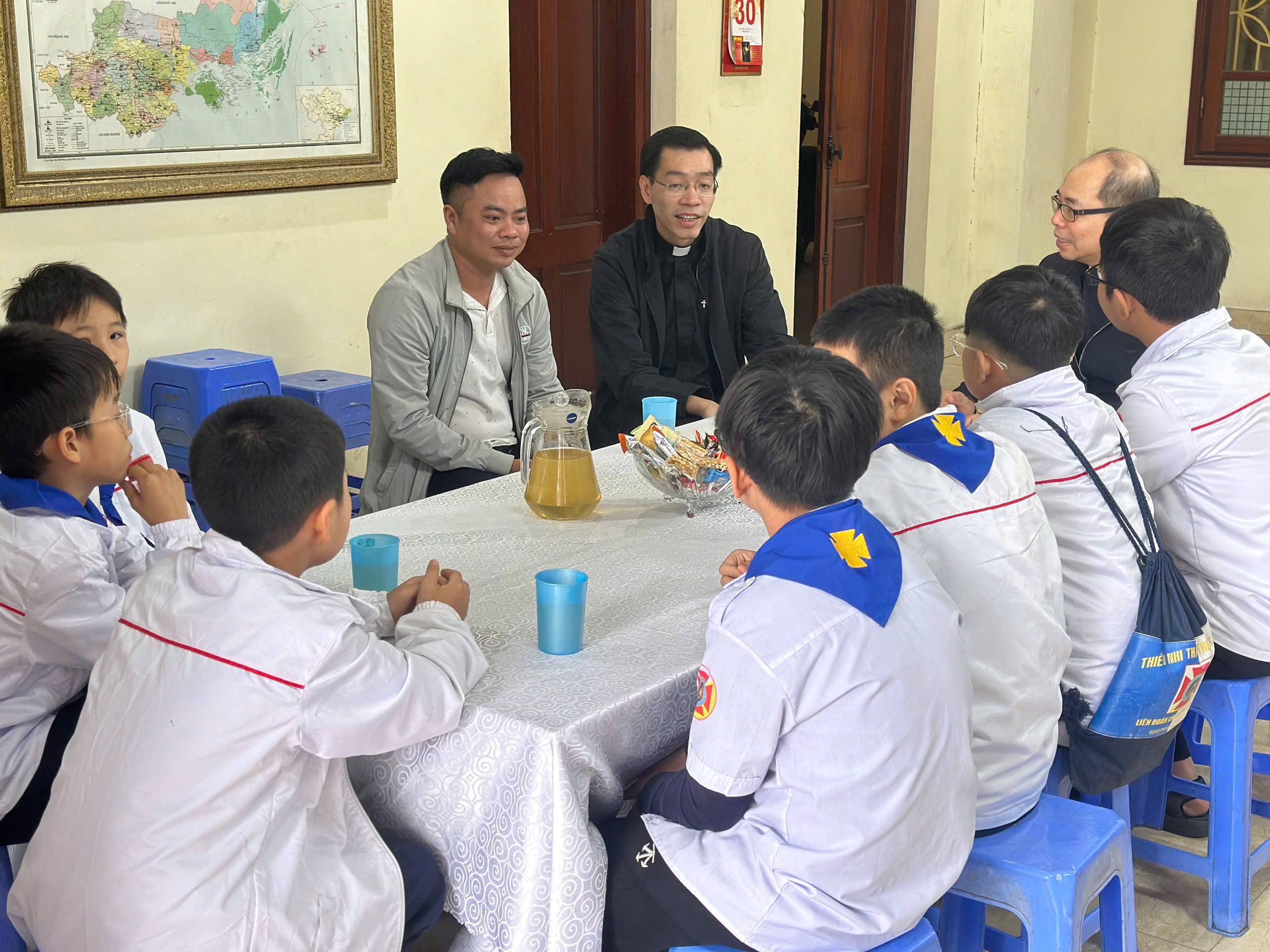 Tiếp đó, Cha Phó Giám đốc Antôn đã đồng hành cùng các em trong chuyến tham quan khuôn viên, nhà nguyện, phòng học và những không gian sinh hoạt của các chú Ứng sinh. Chuyến thăm được khép lại bằng giờ kinh nguyện chung trước khi cùng nhau chia sẻ bữa cơm đơn sơ trong tình huynh đệ.