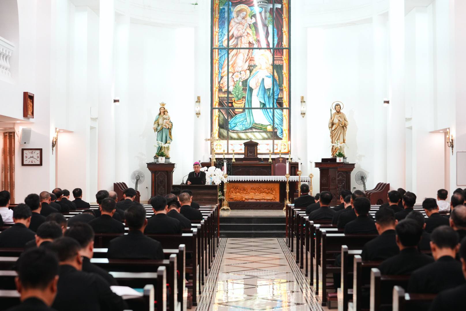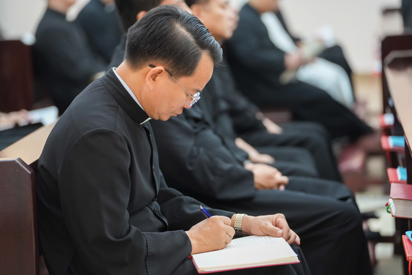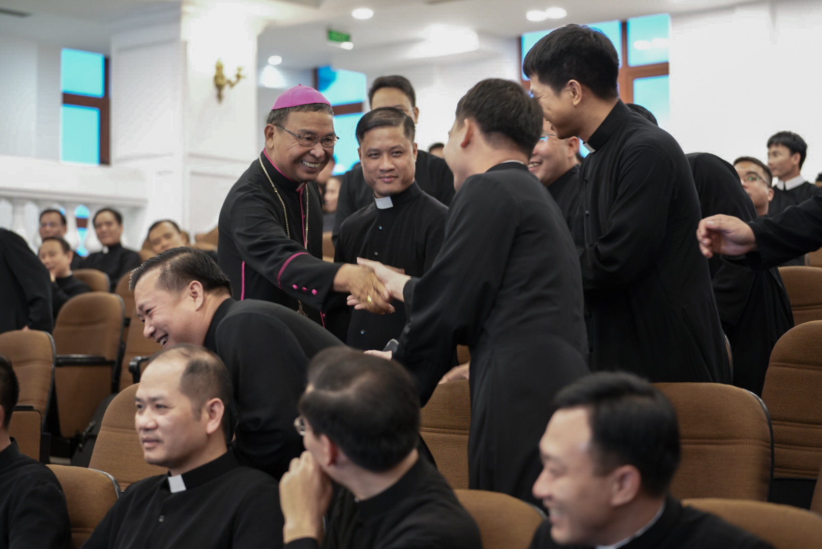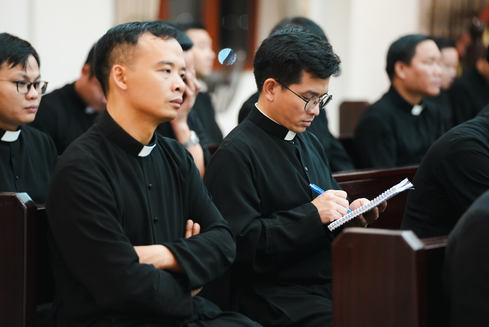 Ngay sau giờ Chầu Thánh Thể, Đức Cha Đaminh đã khai mở chủ đề đầu tiên của kỳ tĩnh tâm. Ngài nhấn mạnh: “Cầu nguyện là hơi thở của đời sống đức tin, và là yếu tố sống còn trong đời sống linh mục.” Những lời chia sẻ sâu sắc và đầy tâm huyết ấy đã đánh động tâm hồn, khơi dậy nơi các cha niềm xác tín và niềm vui của đời dâng hiến, giúp quý Cha sẵn sàng bước vào tuần tĩnh tâm với tâm hồn rộng mở và lòng khao khát được ở lại bên Chúa.