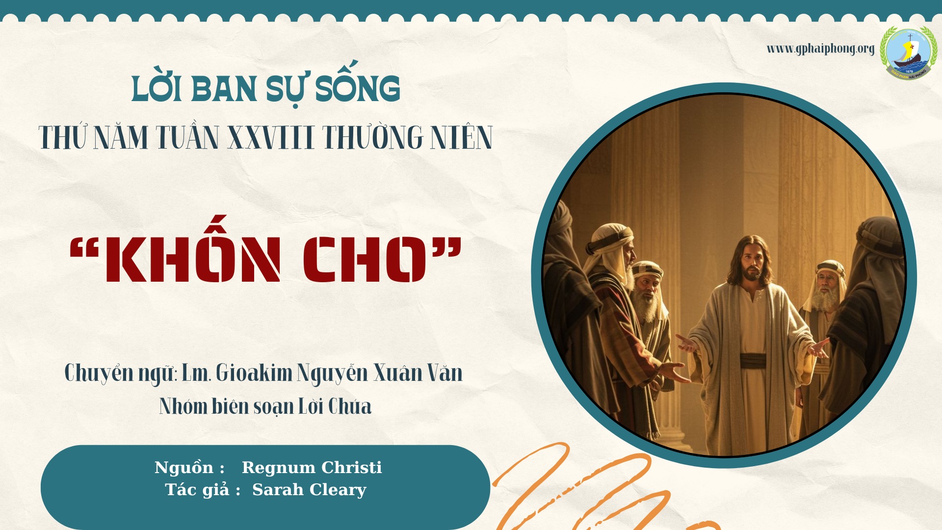 Có lẽ, với một cách đọc chính xác hơn, chúng ta có thể ngắm nhìn Thánh Tâm Chúa Giêsu qua những lời này. “Khốn cho” không phải là một lời khiển trách; đó là tiếng kêu từ trái tim, của nỗi đau, giống như Chúa Kitô khi Người đứng ở cửa thành Giêrusalem trước cuộc Khổ Nạn và khóc thương: “Ôi! Phải chi ngày hôm nay ngươi cũng nhận ra những gì đem lại bình an cho người!” (Lc 19, 42)