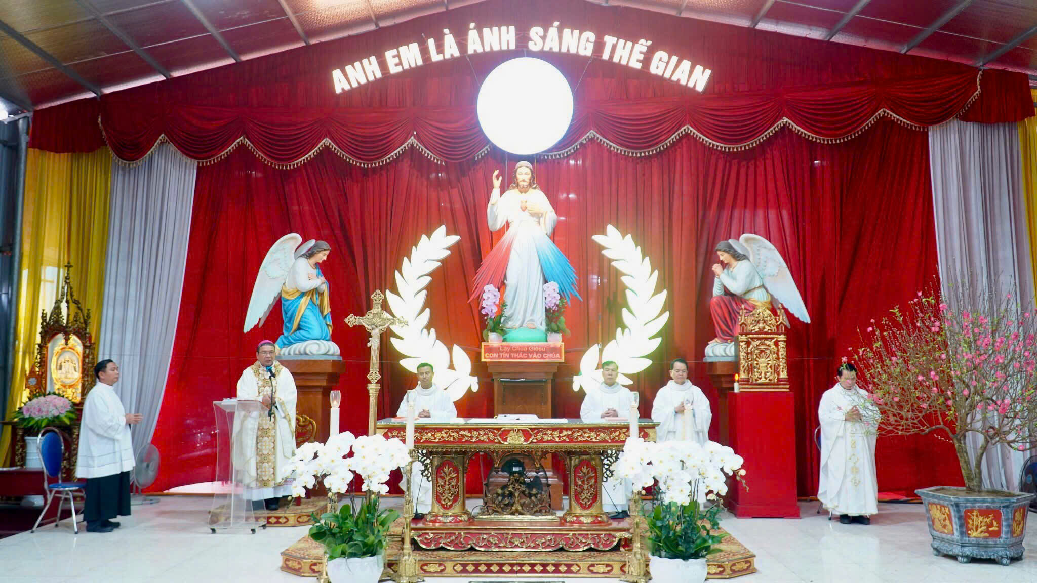 Cao điểm của ngày hành hương là Thánh lễ do Đức cha Vinh Sơn, Giám mục Giáo phận chủ sự. Mở đầu Thánh lễ, vị cha chung mời gọi cộng đoàn hành hương dâng lên Chúa “lời ca tạ ơn vì biết bao ơn lành Chúa đã ban cho gia đình Giáo phận, cho Đền thánh cũng như cho mỗi người”. Hòa chung trong tâm tình tạ ơn, Đức cha cũng mời gọi cộng đoàn cầu xin Chúa chúc lành cho quý ân nhân của Đền thánh, đồng thời khẩn xin Lòng Thương Xót Chúa nâng đỡ những anh chị em đang đau khổ về thể xác cũng như tinh thần, để họ có thêm sức mạnh vượt qua những nghịch cảnh của cuộc sống.