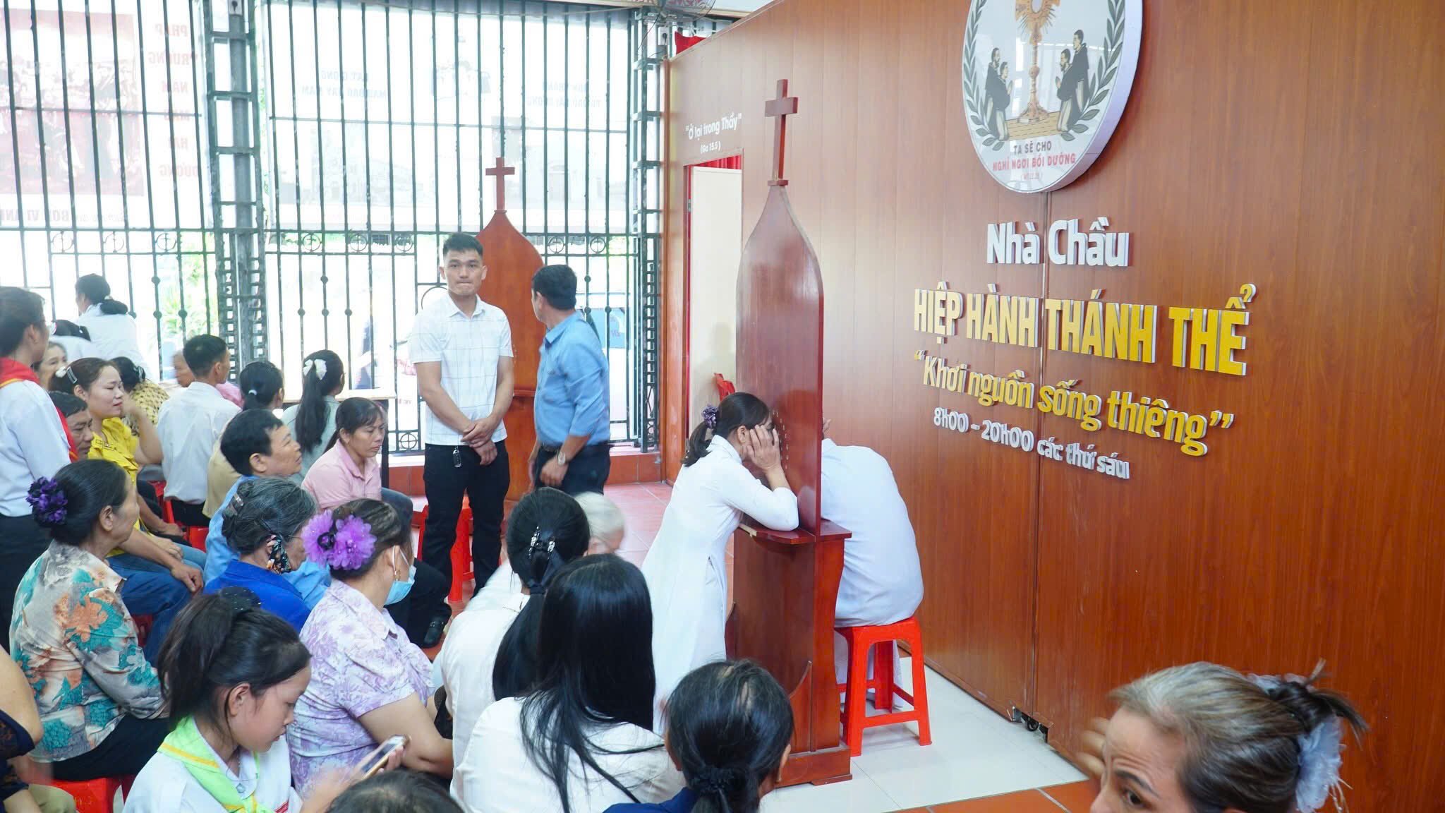 Ngay từ sáng sớm, đông đảo tín hữu đã quy tụ nơi Đền Thánh, sốt sắng lãnh nhận Bí tích Hòa Giải, để làm mới bản thân, canh tân tâm hồn và giao hòa với Thiên Chúa.