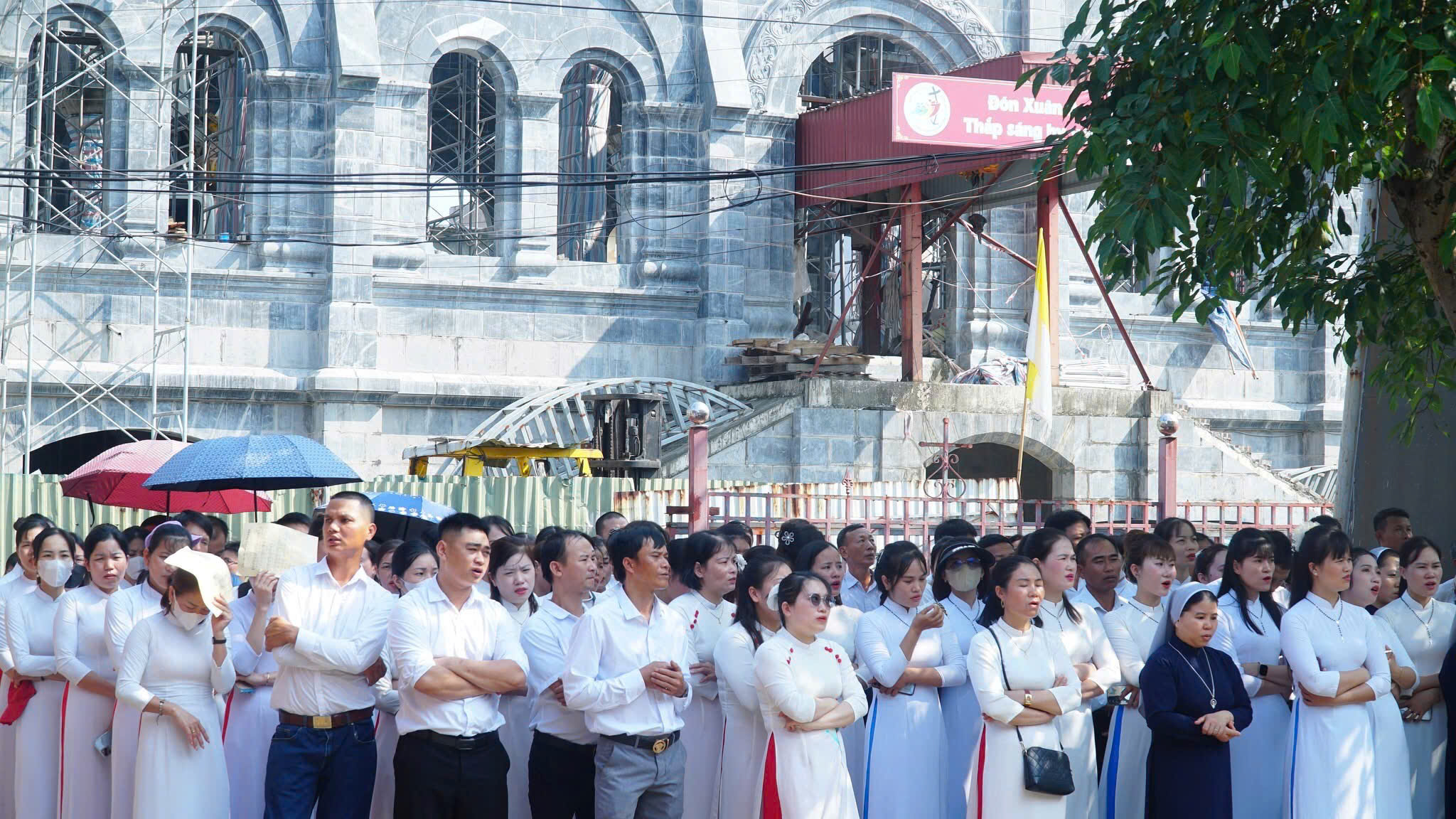 Đáp lời, Cha Giám đốc Đền Thánh, Cha Giuse Nguyễn Văn Vang, cảm ơn quý cha và cộng đoàn hành hương đã trở về với nơi thánh thiêng của Giáo phận – nơi đã thấm đẫm máu đào của các chứng nhân đức tin. Ngài nhấn mạnh: việc tái thiết Đền Thánh không chỉ là công trình vật chất, nhưng từ công trình này, mỗi người được mời gọi củng cố đời sống đức tin để ngày càng yêu mến Chúa, sống chứng tá và loan báo Tin Mừng trong cuộc sống ngày hôm nay. Cha cũng mời gọi cộng đoàn tiếp tục hướng lòng về Đền Thánh, cùng hiệp thông trong công cuộc tái thiết.