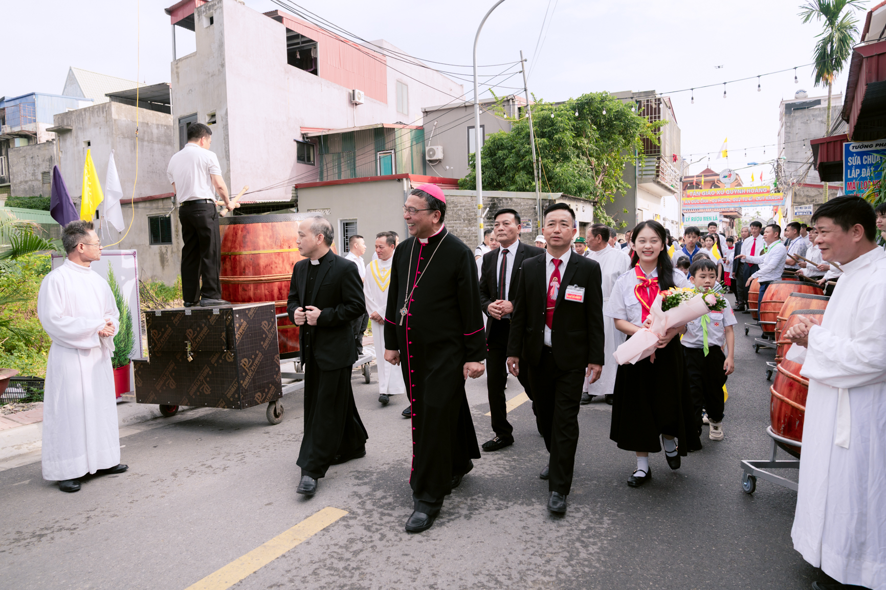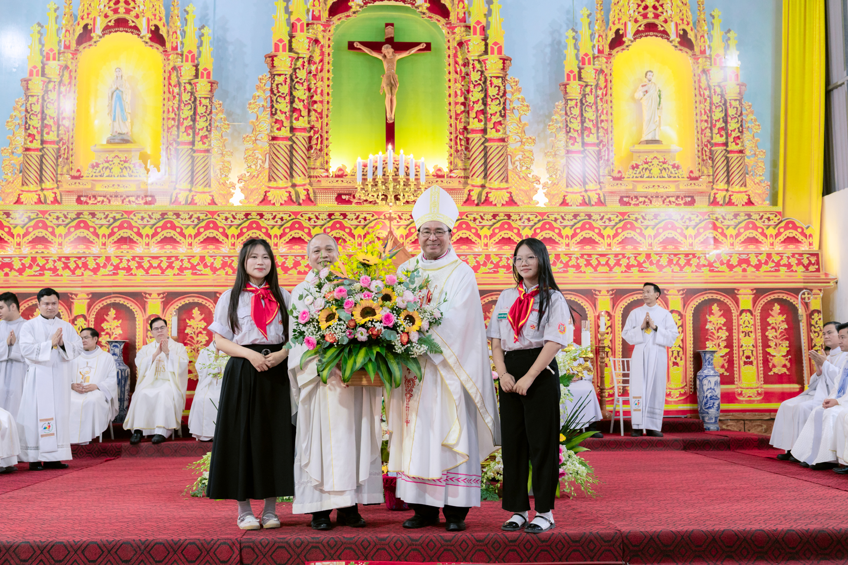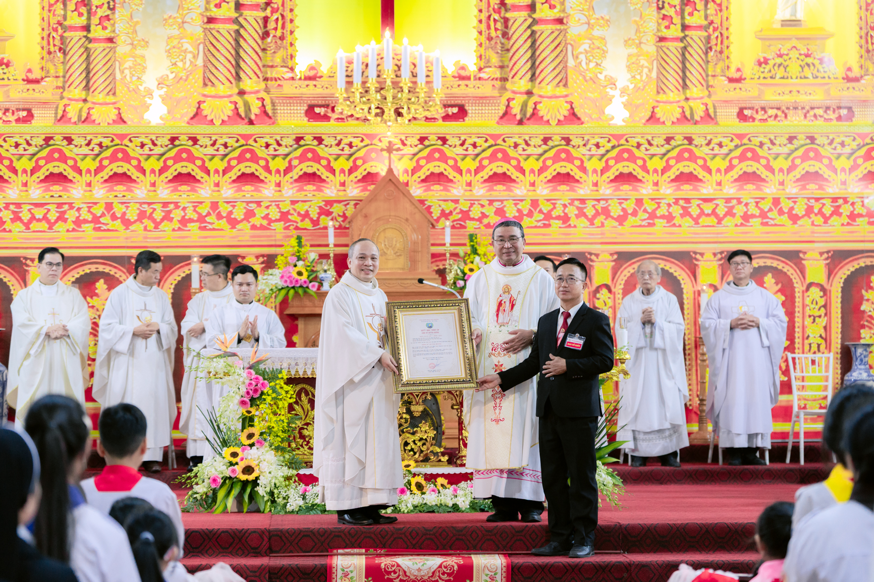 Sáng ngày 03/12, Giáo xứ Quỳnh Hoàng hân hoan đón Đức Cha Vinh Sơn về chủ sự Thánh lễ. Đoàn rước Đức Cha cùng sắc phong từ đầu làng Quỳnh Hoàng tiến vào thánh đường giữa tiếng trống vang dội và niềm vui tràn ngập của toàn thể cộng đoàn. Cao điểm của ngày lịch sử là Thánh lễ tạ ơn Thiên Chúa, mừng kính thánh Quan thày giáo xứ và công bố Sắc phong nâng Giáo họ Quỳnh Hoàng lên hàng giáo xứ, một giây phút lịch sử mà mọi người đã mong đợi từ lâu.