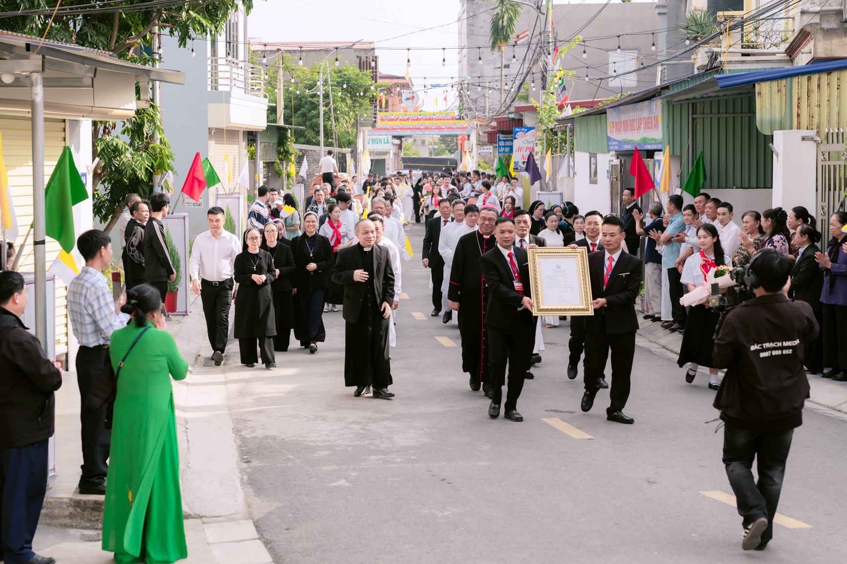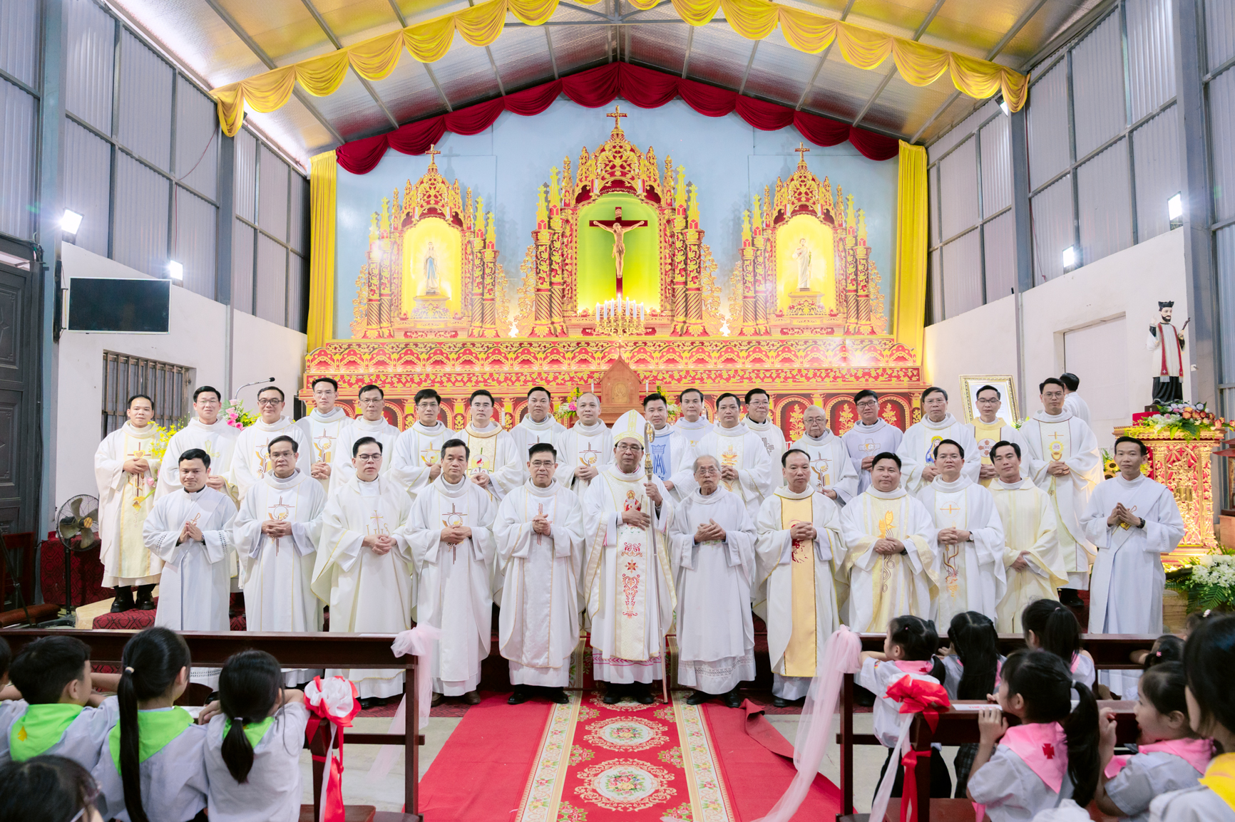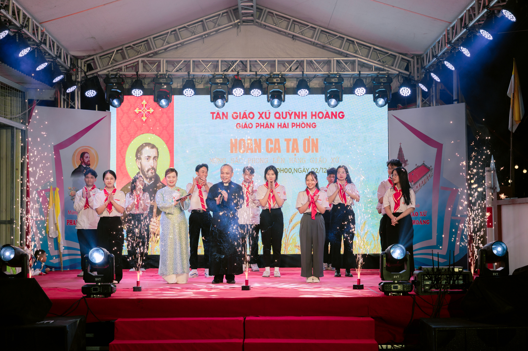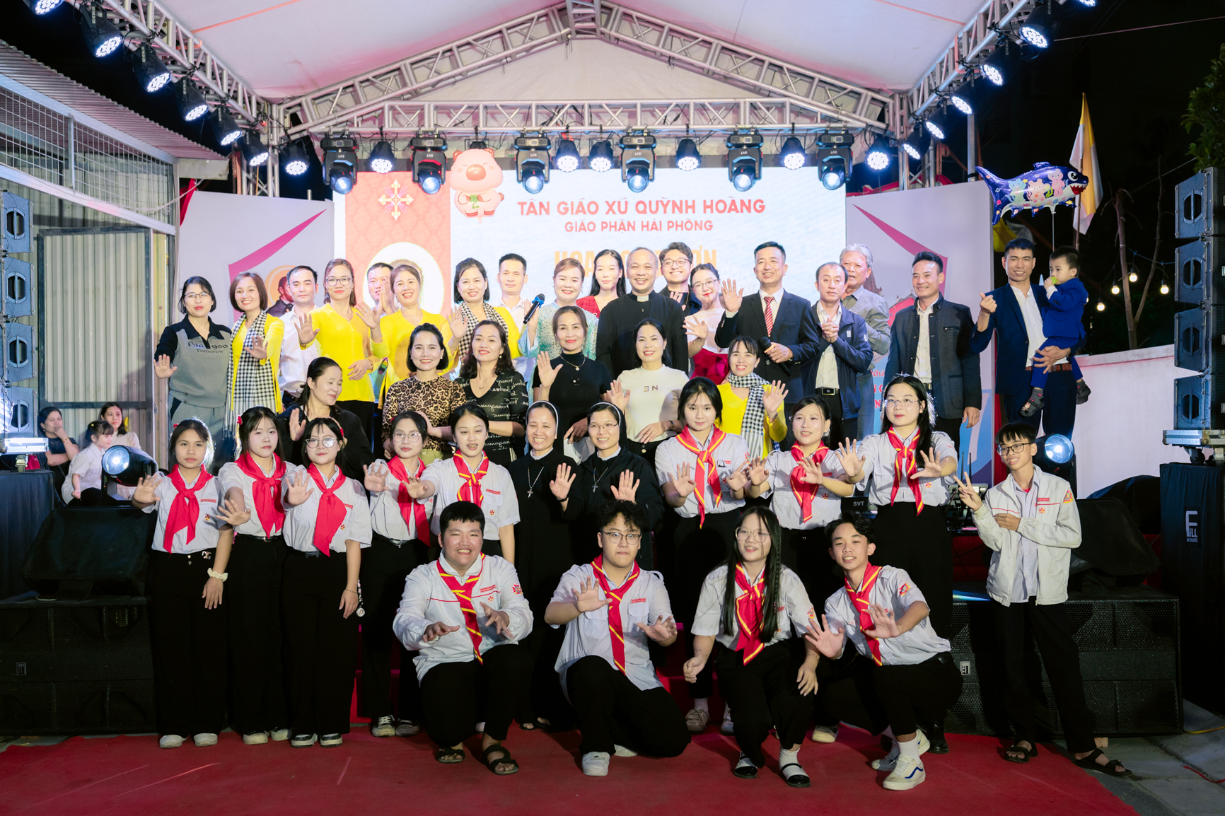 Kết thúc Thánh lễ, cộng đoàn cùng bà con lương dân trong tổ dân phố quây quần ấm cúng trong Chương trình hoan ca tạ ơn mừng thánh Quan thầy và biến cố lịch sử đón nhận sắc phong lên xứ.