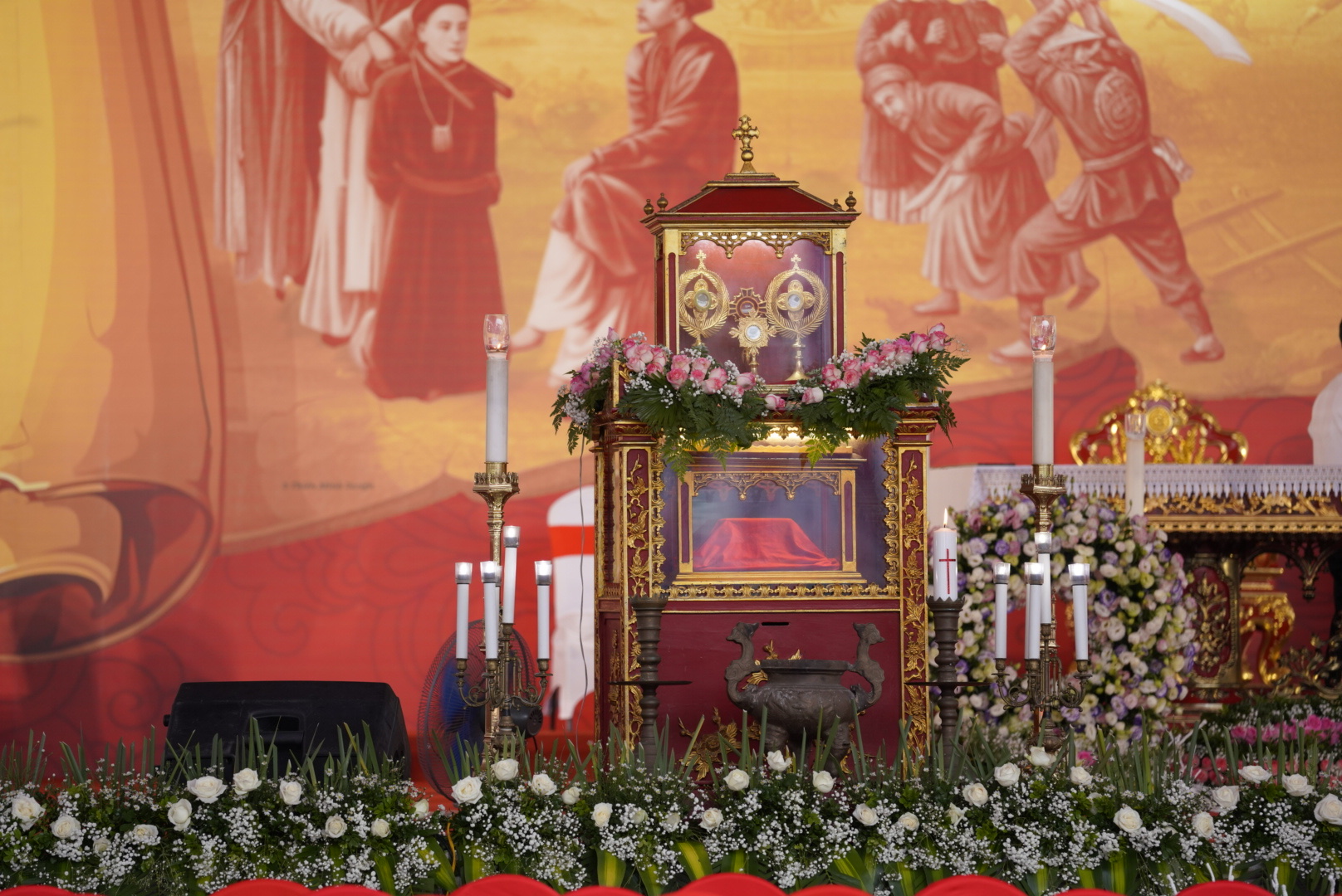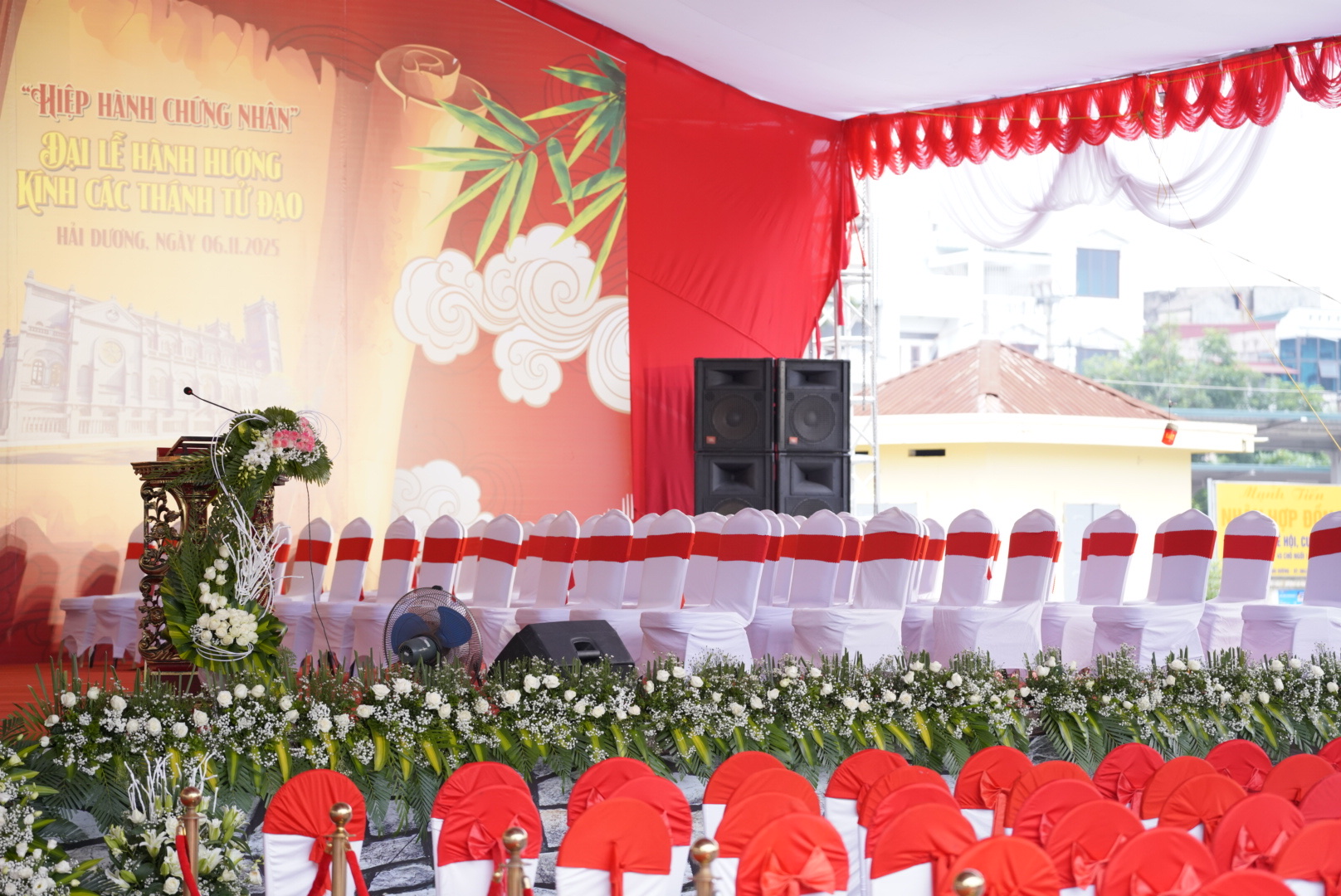 Ngay lúc này, ngày 06/11/2025, các giáo hữu từ khắp các giáo xứ trong giáo phận Hải Phòng đã cùng nhau hành hương về nhà Đền thánh Tử Đạo Hải Dương để tham dự các nghi thức và thánh lễ Tạ ơn mừng kính Các thánh Tử Đạo. Sự kiện diễn ra trong tâm tình yêu mến và tinh thần hiệp thông với chủ đề “Hiệp hành chứng nhân.”
