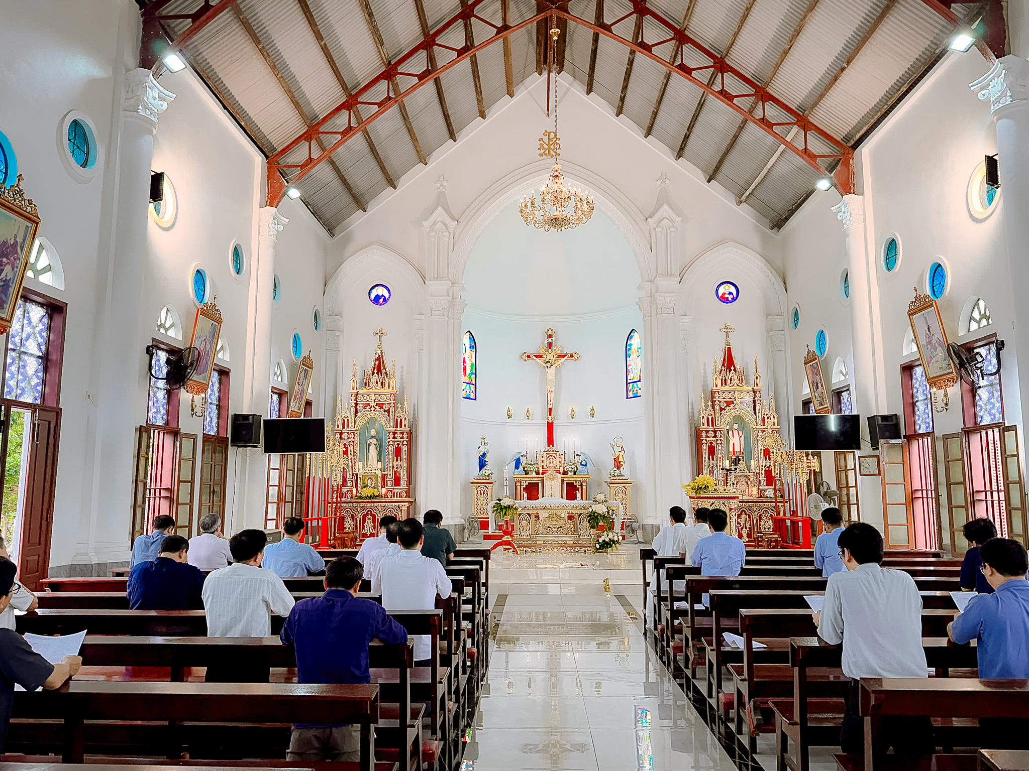 Sau giờ phút giải lao, quý cha bước vào giờ chầu Thánh Thể để cùng nhau tạ ơn Chúa như một sự phó thác và xin Ngài chúc lành cho các công việc mục vụ sắp tới.