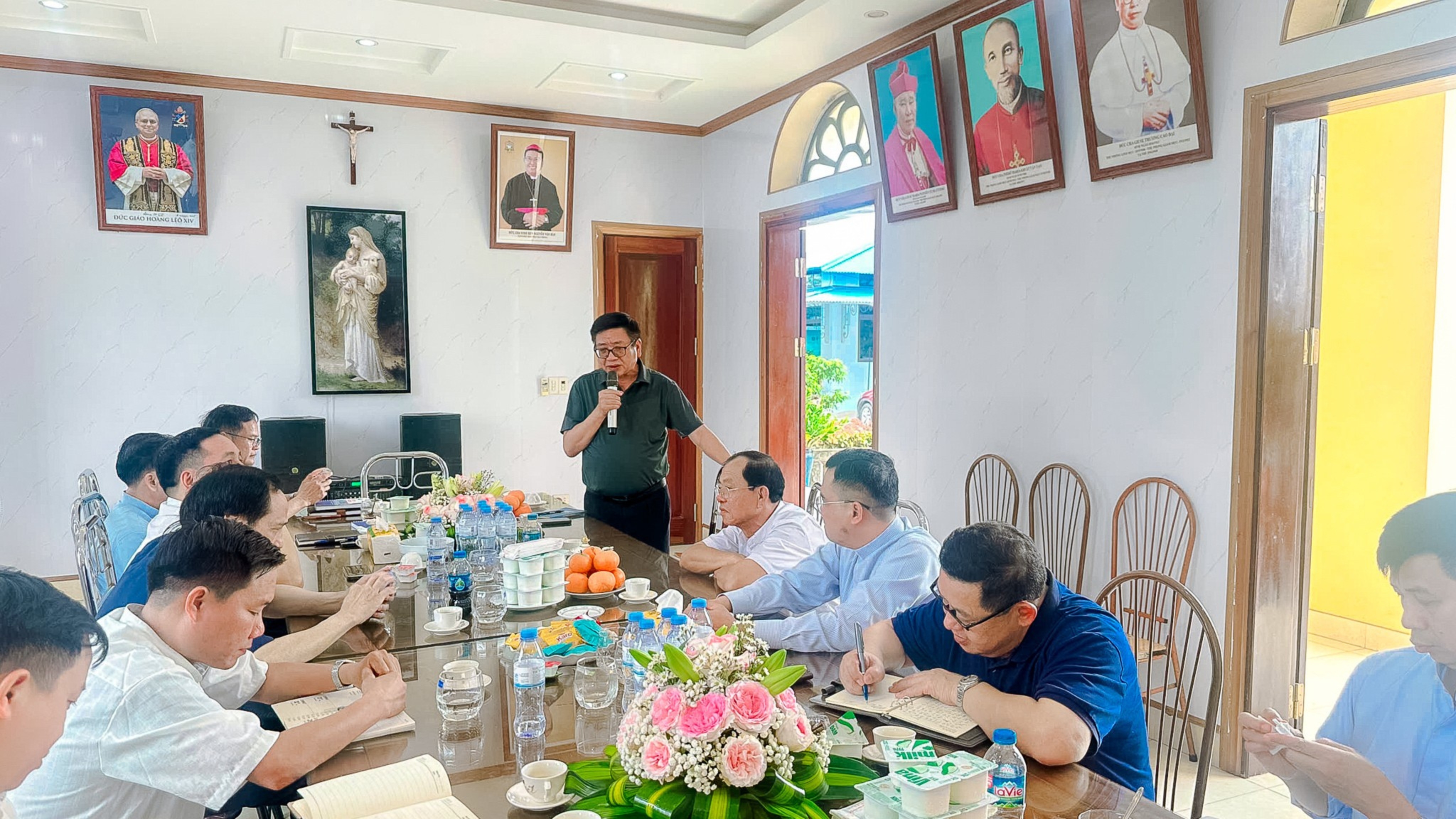 Tiếp theo chương trình, cha xứ Nam Am Giuse Nguyễn Văn Thông đã chia sẻ với quý cha về Văn kiện Chung kết Thượng Hội đồng Giám mục Thế giới.