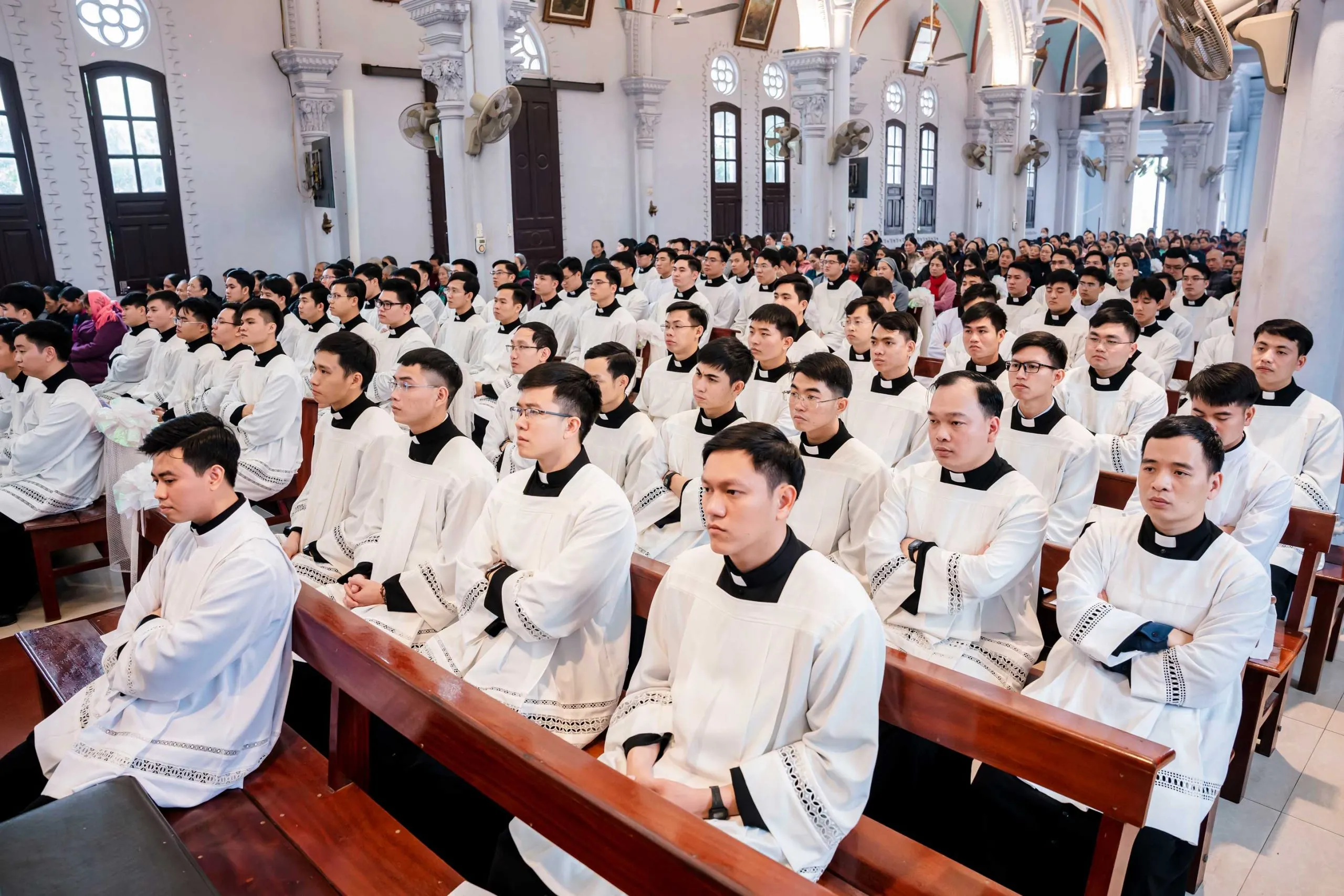 Vào lúc 10h30, đoàn đồng tế tiến vào ngôi thánh đường tham dự Thánh lễ hành hương do Cha Phó Giám đốc Giu-se chủ tế. Hiệp dâng trong Thánh lễ có Cha Gio-an Nguyễn Huy Thịnh – Chính xứ Bút Đông, quý cha trong ĐCV, quý sơ và cộng đoàn dân Chúa.