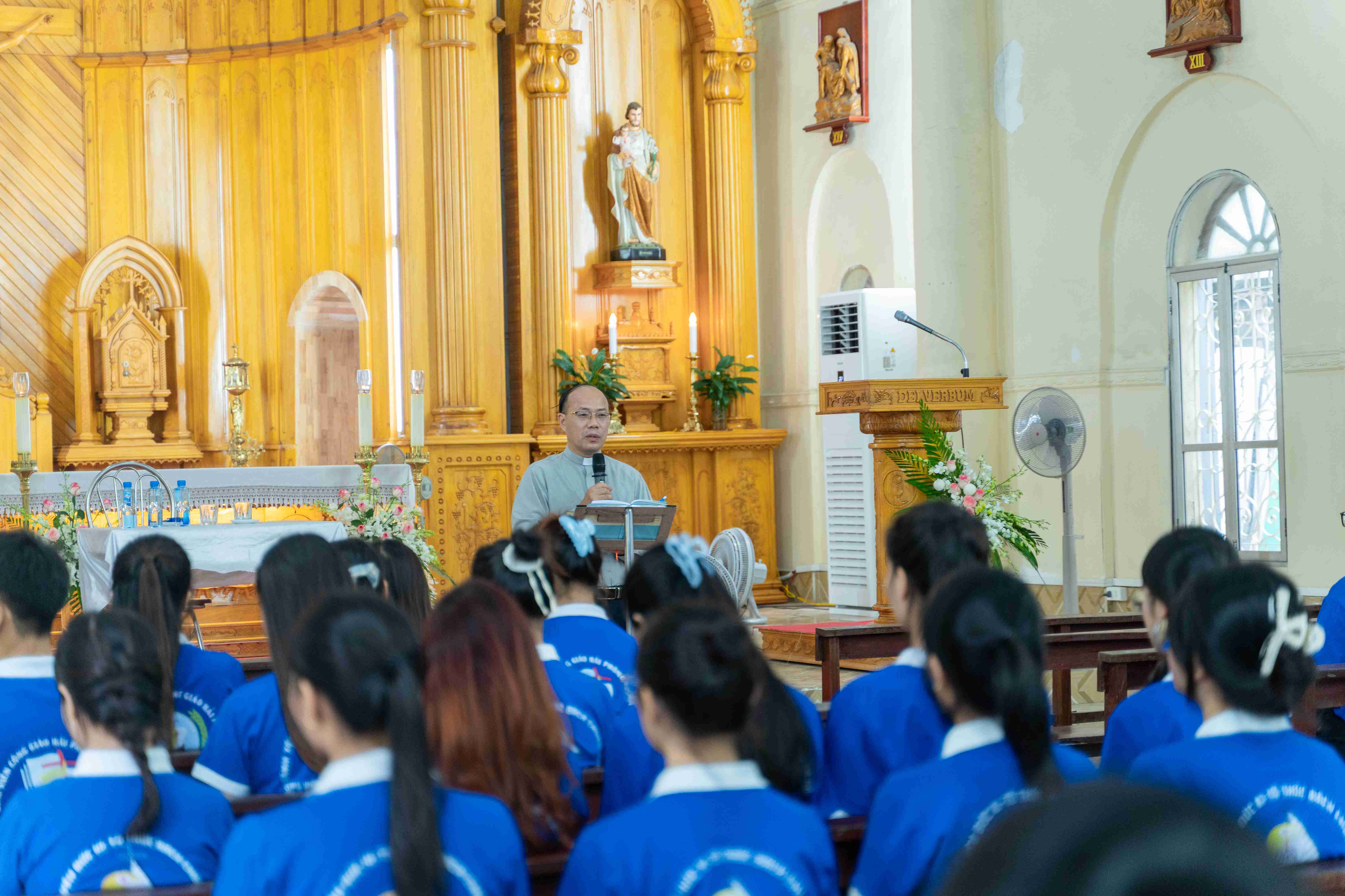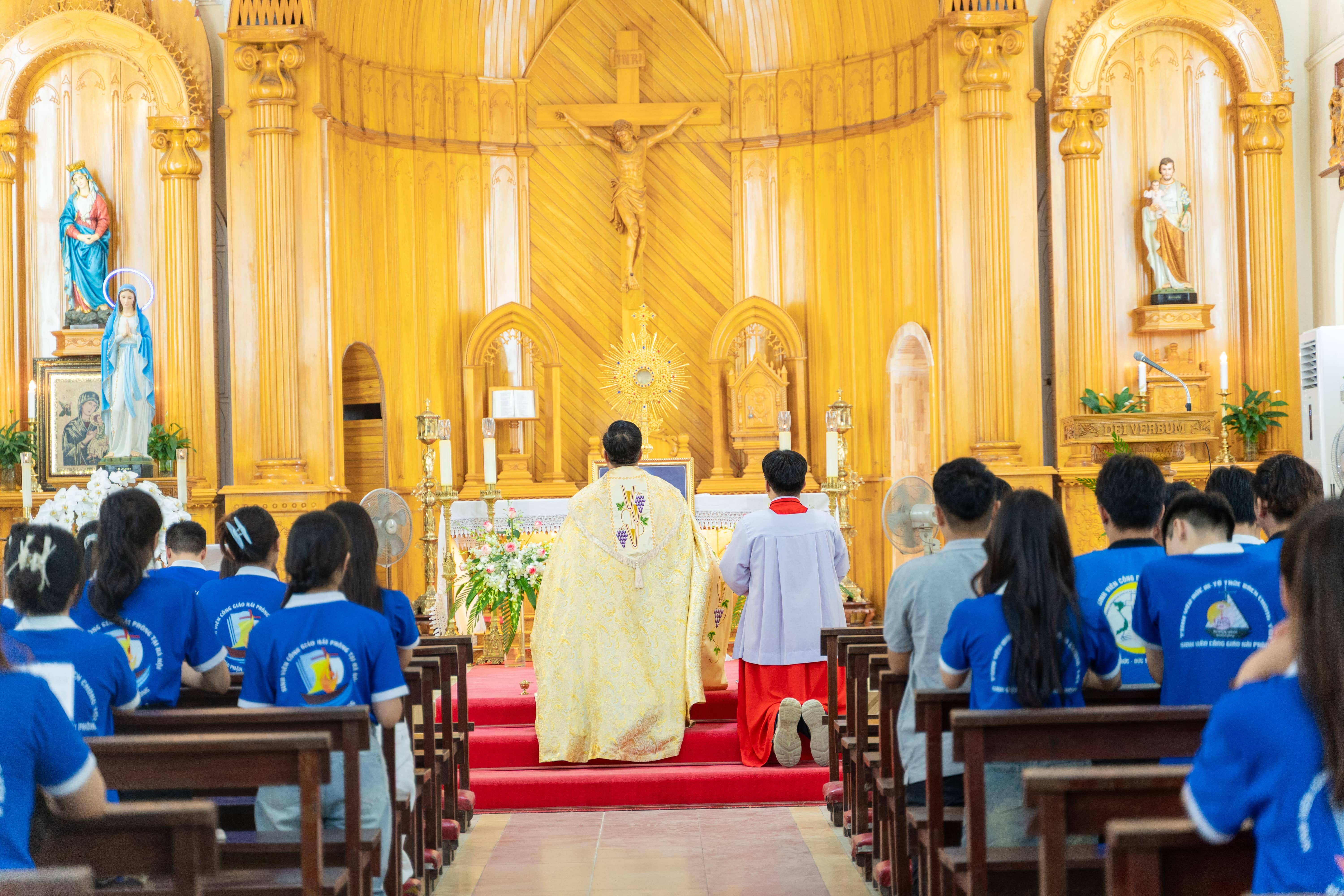 Sau những giờ phút sinh hoạt vui tươi, cộng đoàn cùng bước vào thánh lễ. Mọi người cùng dâng lên Thiên Chúa lời tạ ơn vì biết bao ơn lành Ngài đã trao tặng trong cuộc đời.