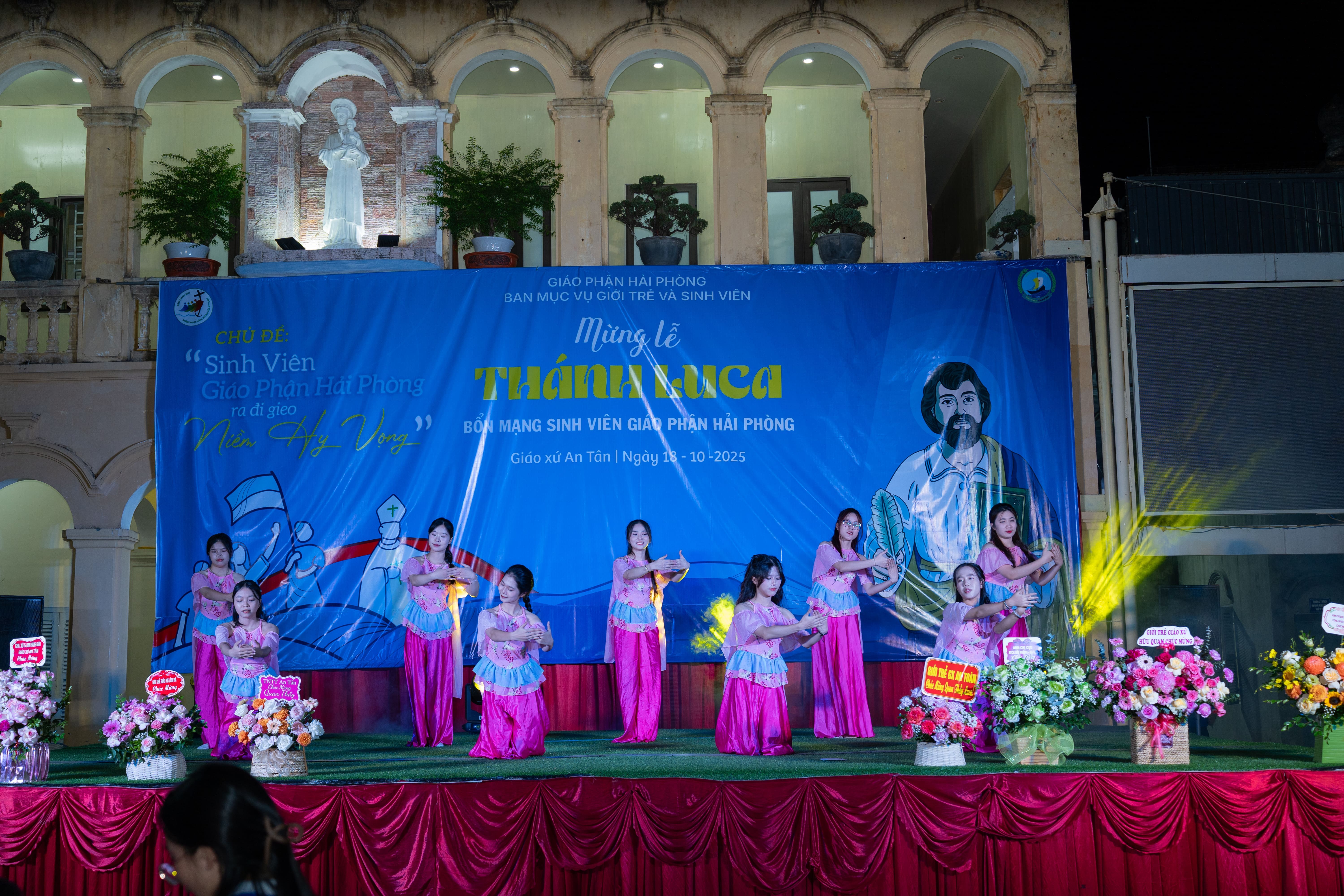Buổi tối, các sinh viên cùng nhau hòa mình trong đêm Hoan ca mừng kính thánh Luca. Chương trình nghệ thuật được chuẩn bị công phu với nhiều tiết mục đặc sắc, mang đậm tinh thần tuổi trẻ và đức tin. Sau đó, chương trình khép lại trong giờ cầu nguyện Taizé.