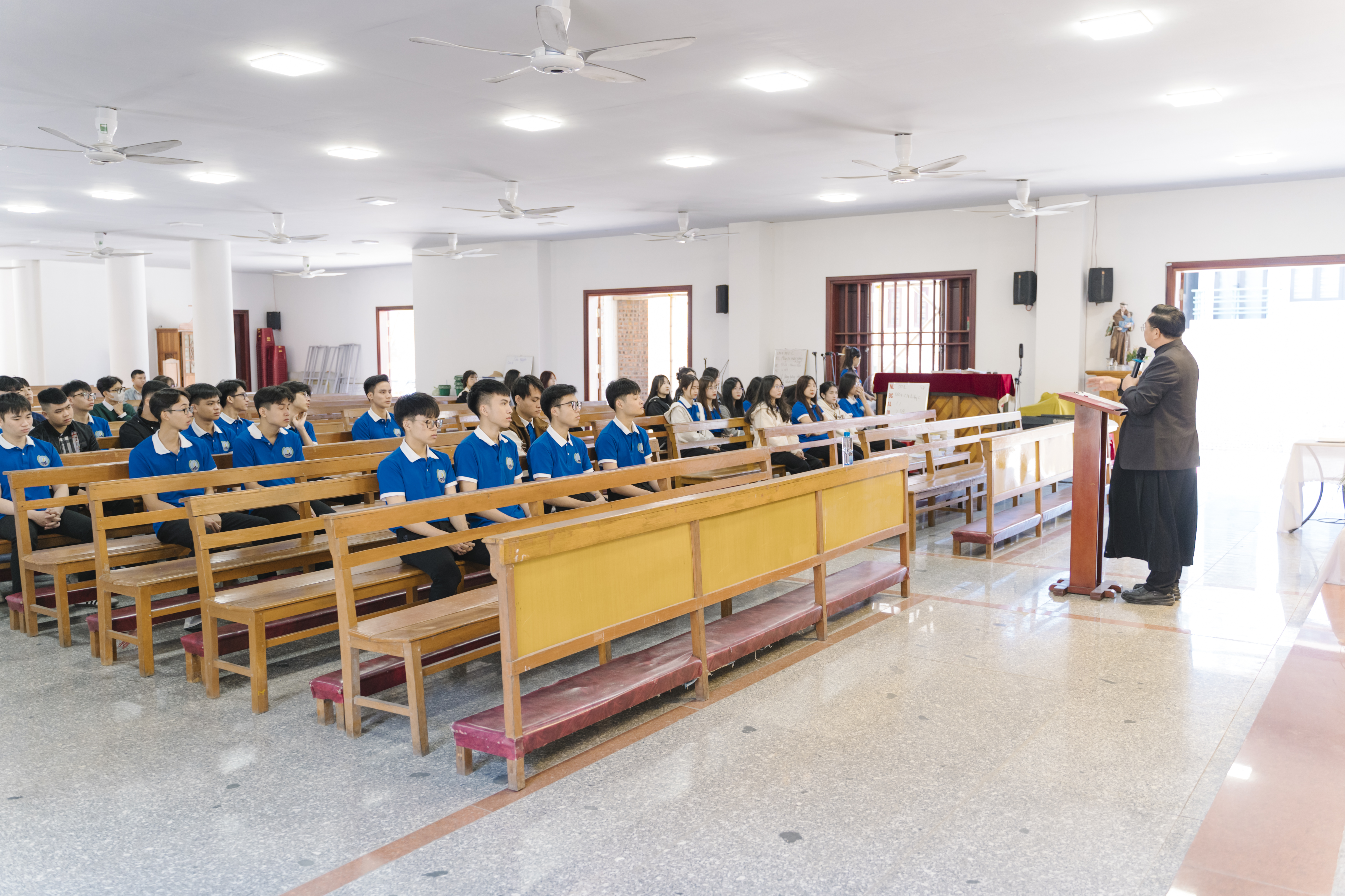 Sau bài giảng, các bạn trong ban điều hành mới của sinh viên cử hành nghi thức chính thức tiếp nhận vai trò trong ban điều hành với sự chứng kiến của cha Đặc trách. Cha Phêrô chúc mừng các bạn và trao bằng bổ nhiệm cho các tân ban điều hành.