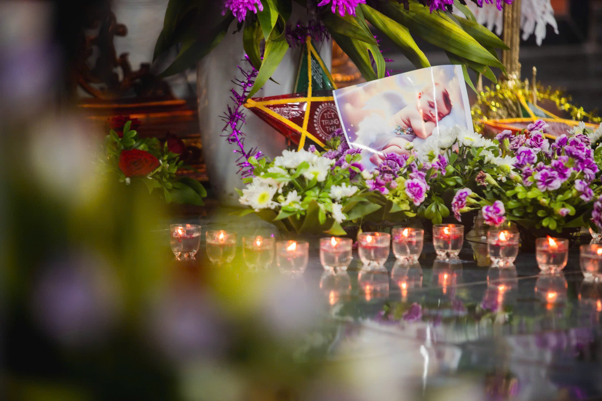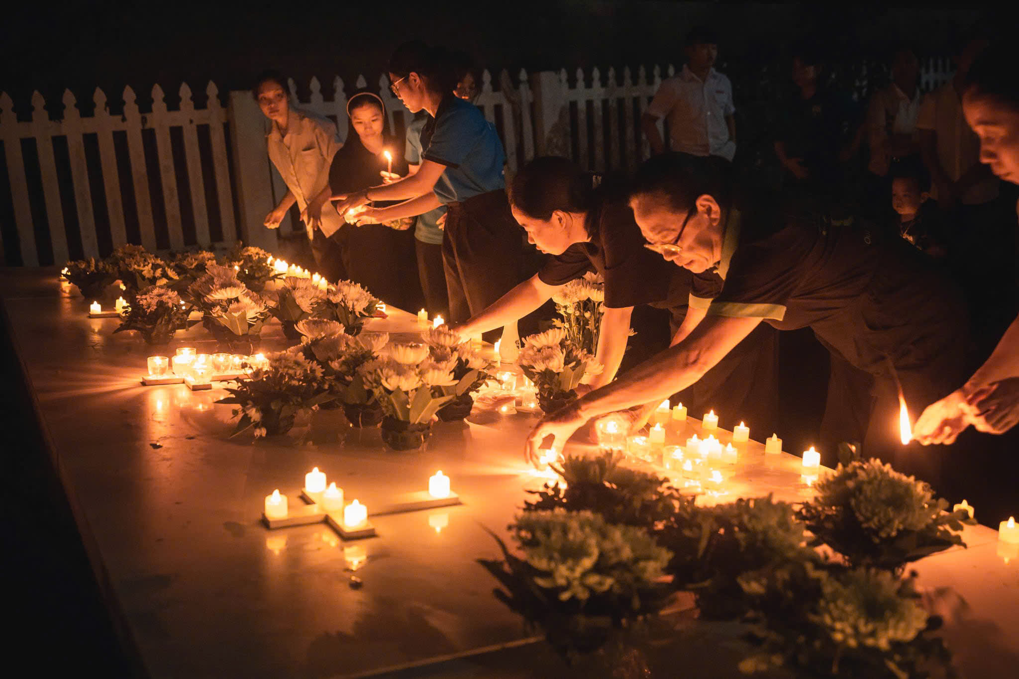 Sau Thánh lễ, mọi người cùng ra Vườn thánh, nơi các em an nghỉ. Dưới ánh trăng tròn, những ngọn nến không nằm trong chiếc đèn lồng rực rỡ, nhưng được thắp trên mộ của các em. Mọi người cùng các em vui tết Trung Thu bằng những lời cầu nguyện của chuỗi kinh Lòng Thương Xót Chúa.