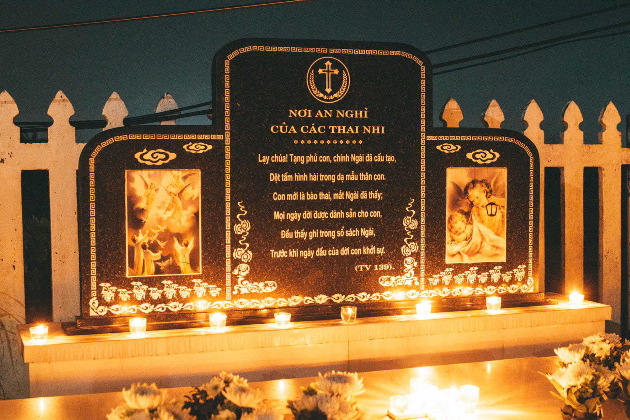 Xin Chúa đón nhận các em vào vòng tay yêu thương vô biên của Ngài, cho các em được vui hưởng ánh sáng và bình an trong Nước Trời. Và xin Chúa dạy chúng con cũng biết trân quý từng sự sống nhỏ bé Ngài trao ban.