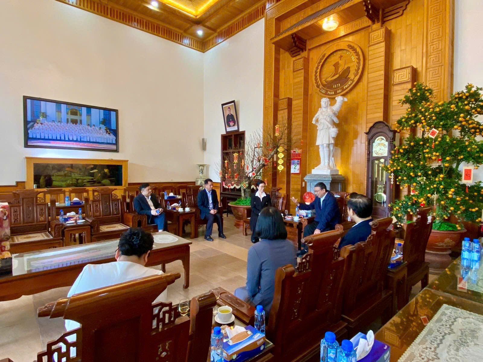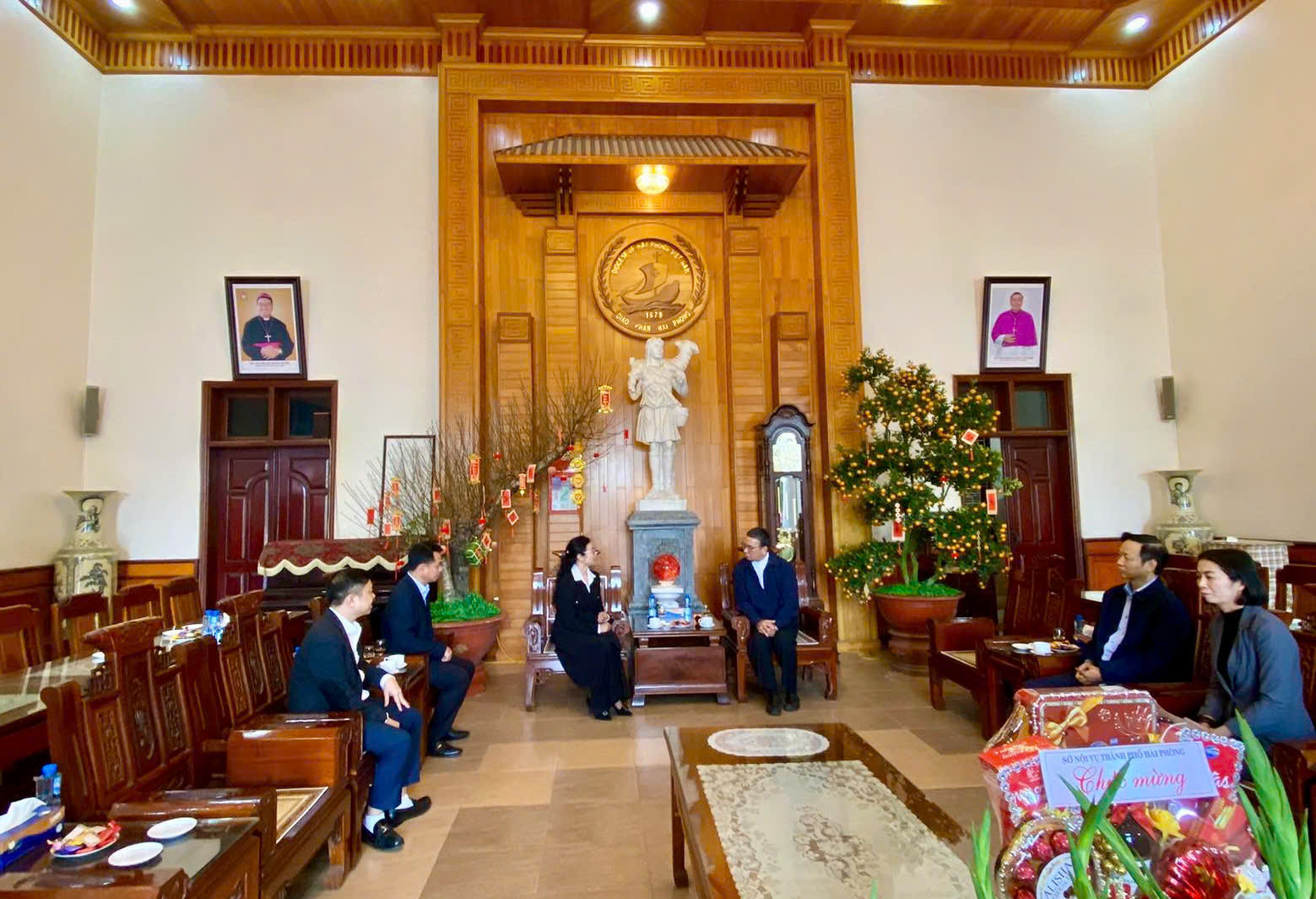 Đáp lời, Đức Cha Giáo phận bày tỏ niềm vui và cảm kích trước sự hiện diện thân tình của quý vị lãnh đạo Thành phố trong dịp Tết đến Xuân về. Ngài ghi nhận sự đồng hành, hỗ trợ tích cực của các cơ quan chức năng trong nhiều hoạt động của Giáo phận suốt năm qua. Nhân dịp Xuân Bính Ngọ, Đức Cha trân trọng gửi lời chúc mừng năm mới tới quý cơ quan, đoàn thể của Thành phố Hải Phòng. Cách riêng, Ngài chúc các gia đình của quý vị lãnh đạo một năm mới dồi dào sức khỏe, an khang và thành đạt trong mọi công việc phục vụ cộng đồng.
