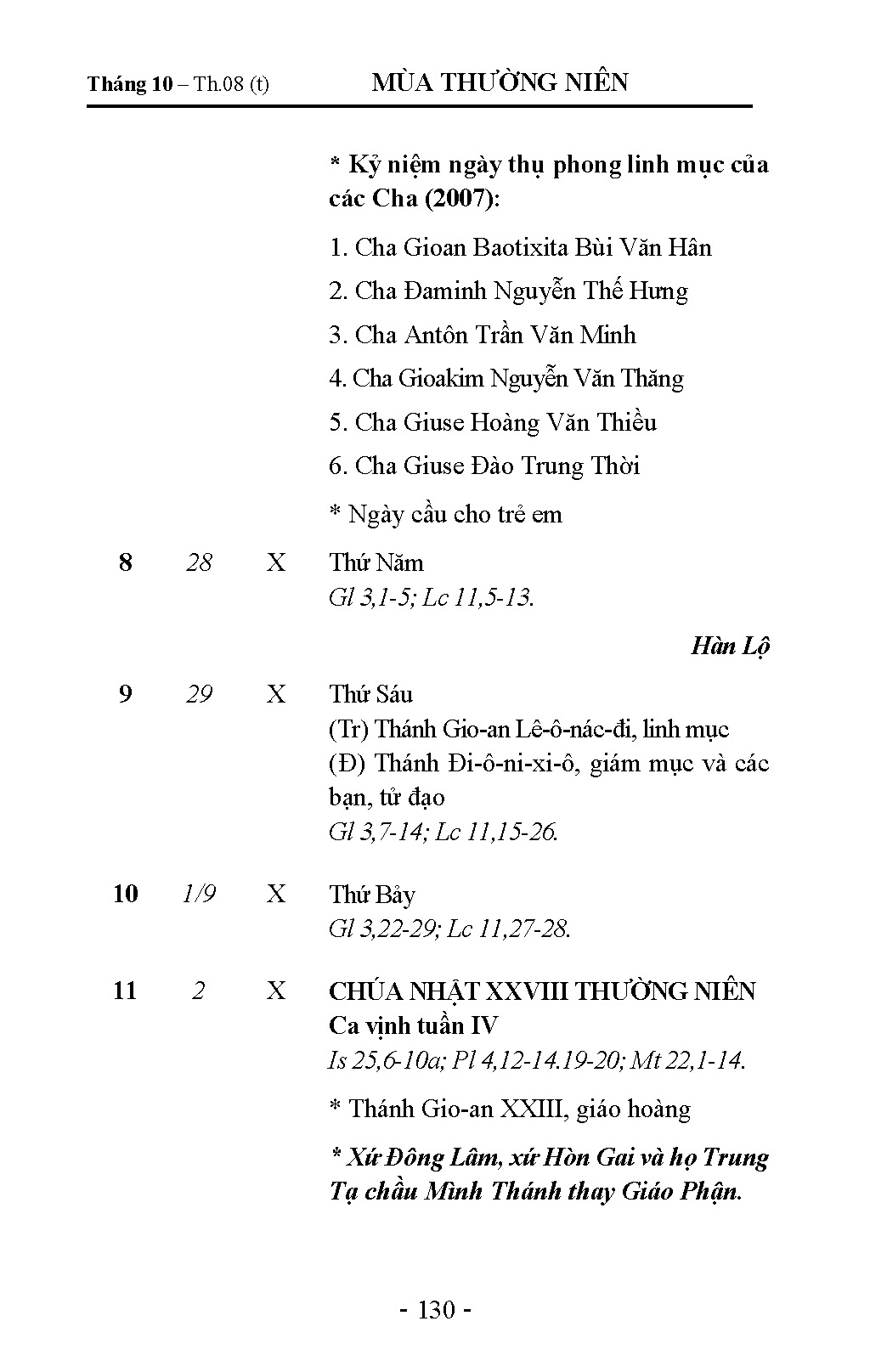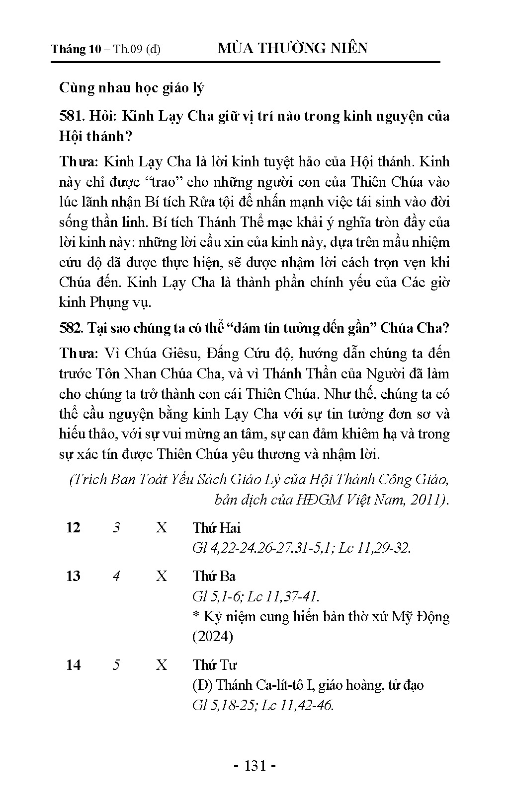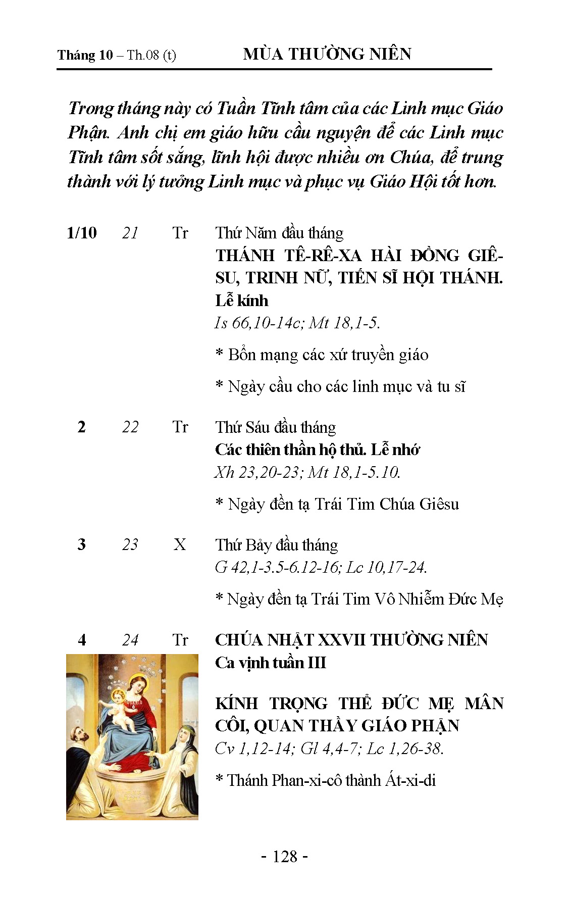 Tháng 10 - Lịch Công Giáo Giáo Phận Hải Phòng 2026
