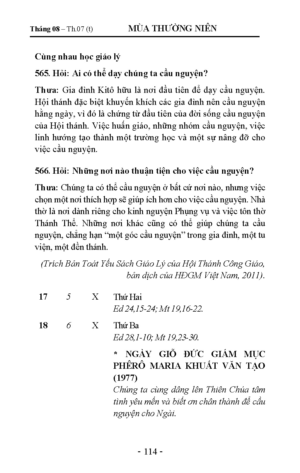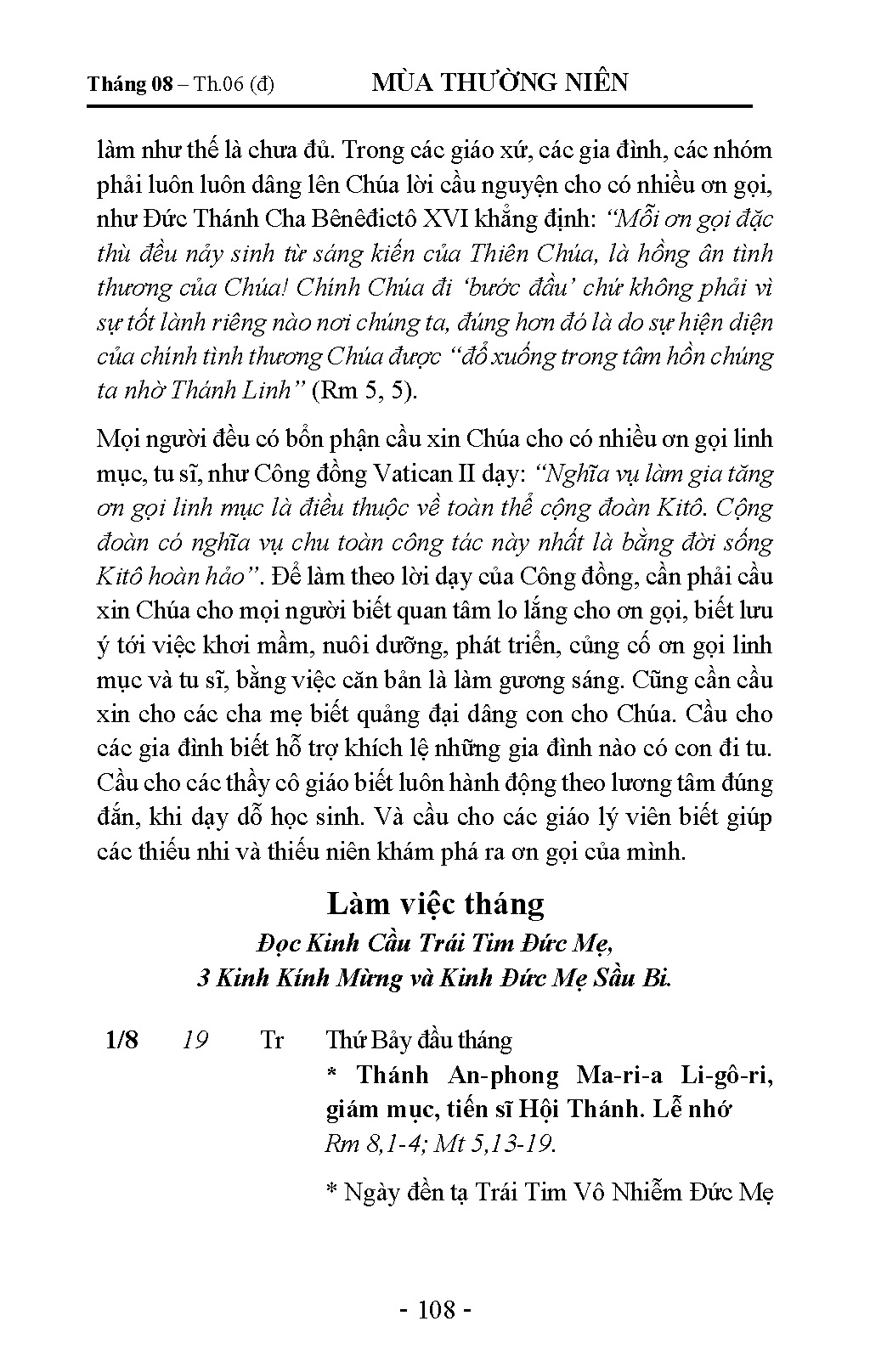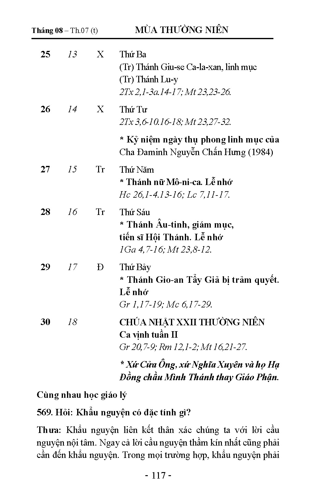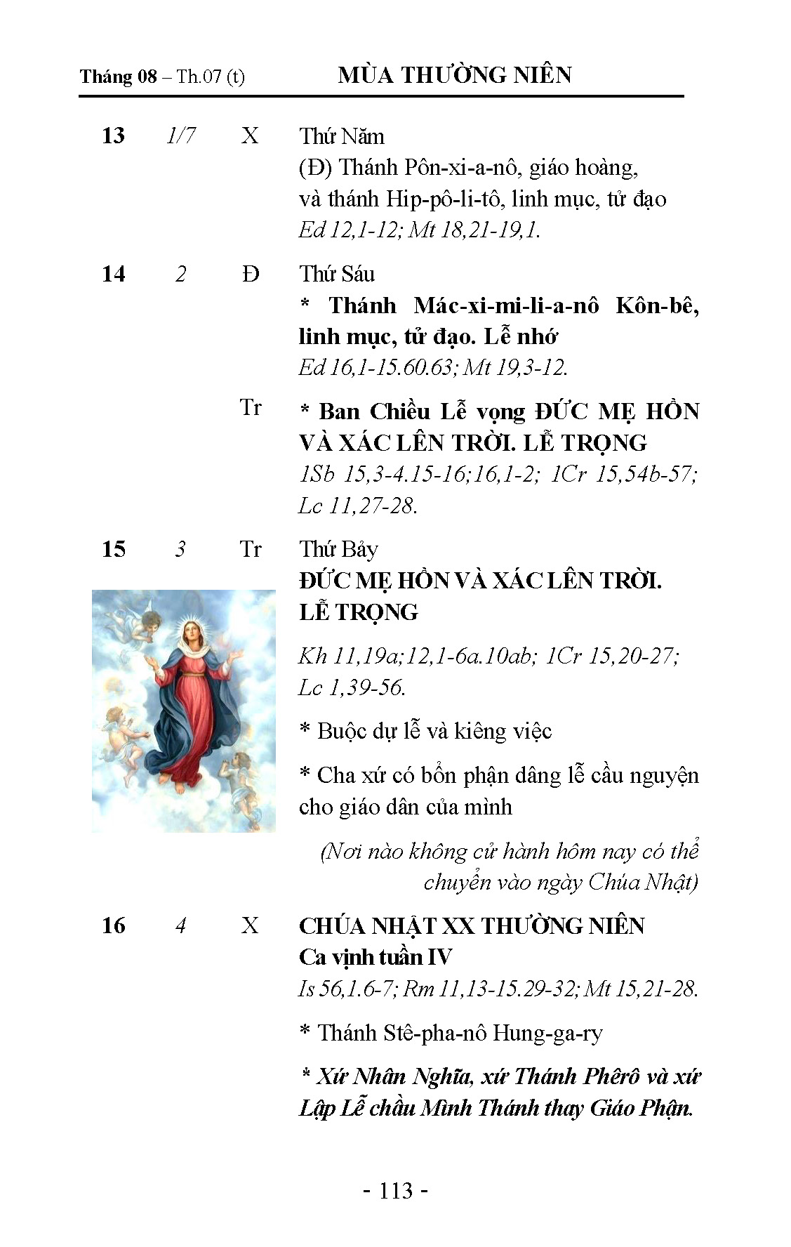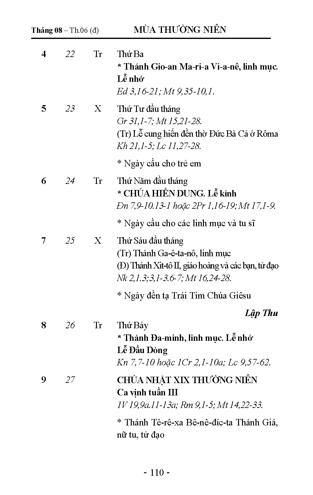 Tháng 8 - Lịch Công Giáo Giáo Phận Hải Phòng 2026