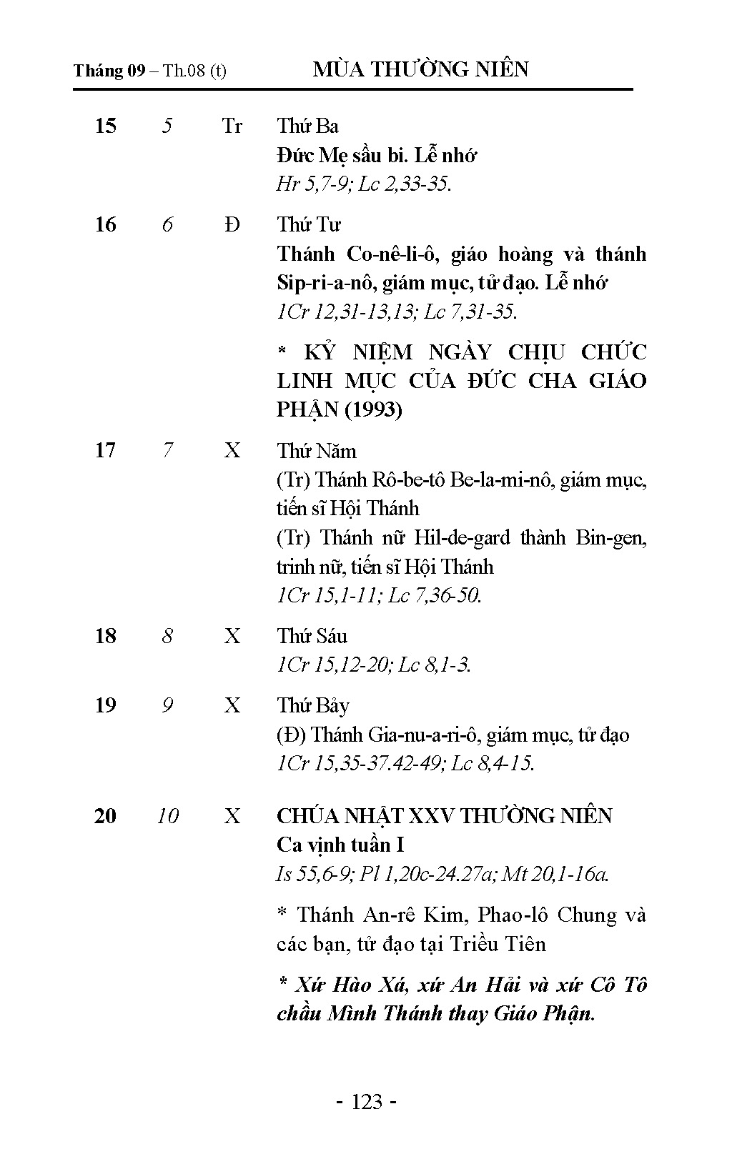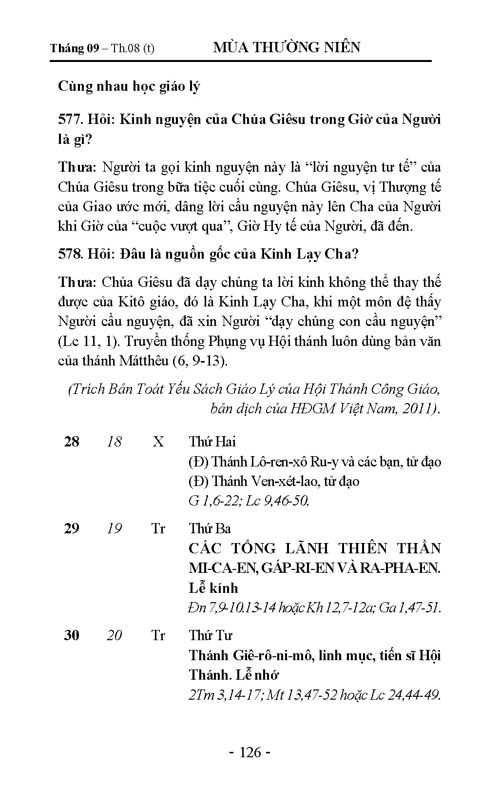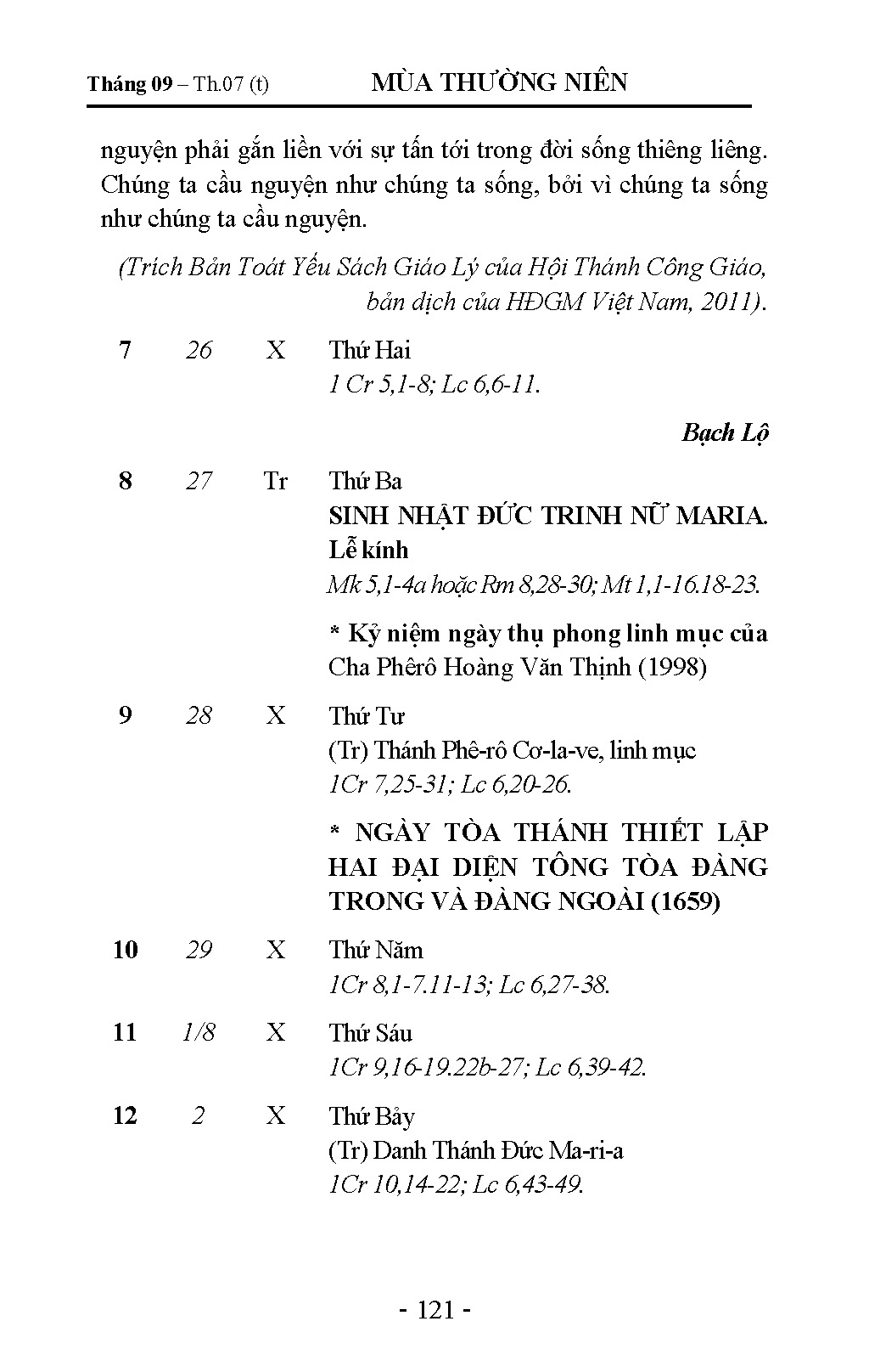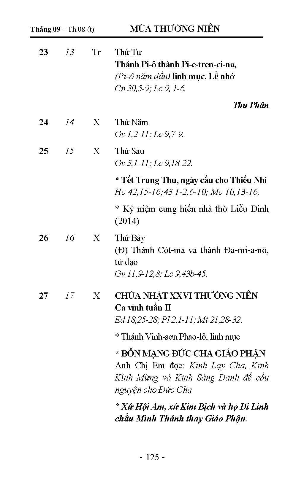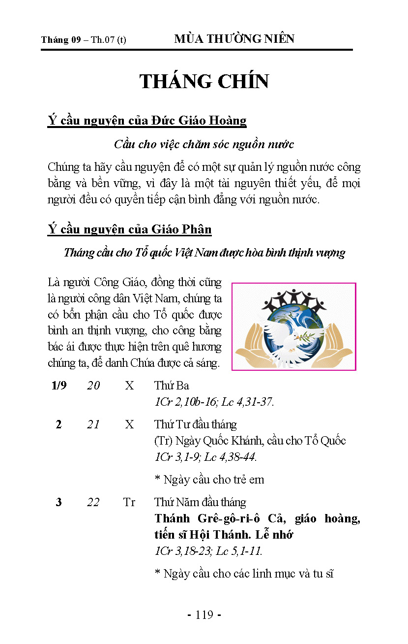 Tháng 9 - Lịch Công Giáo Giáo Phận Hải Phòng 2026