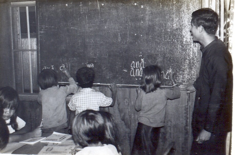 Thầy Phó tế Giuse Trần Sĩ Tín dạy học cho các em Jrai