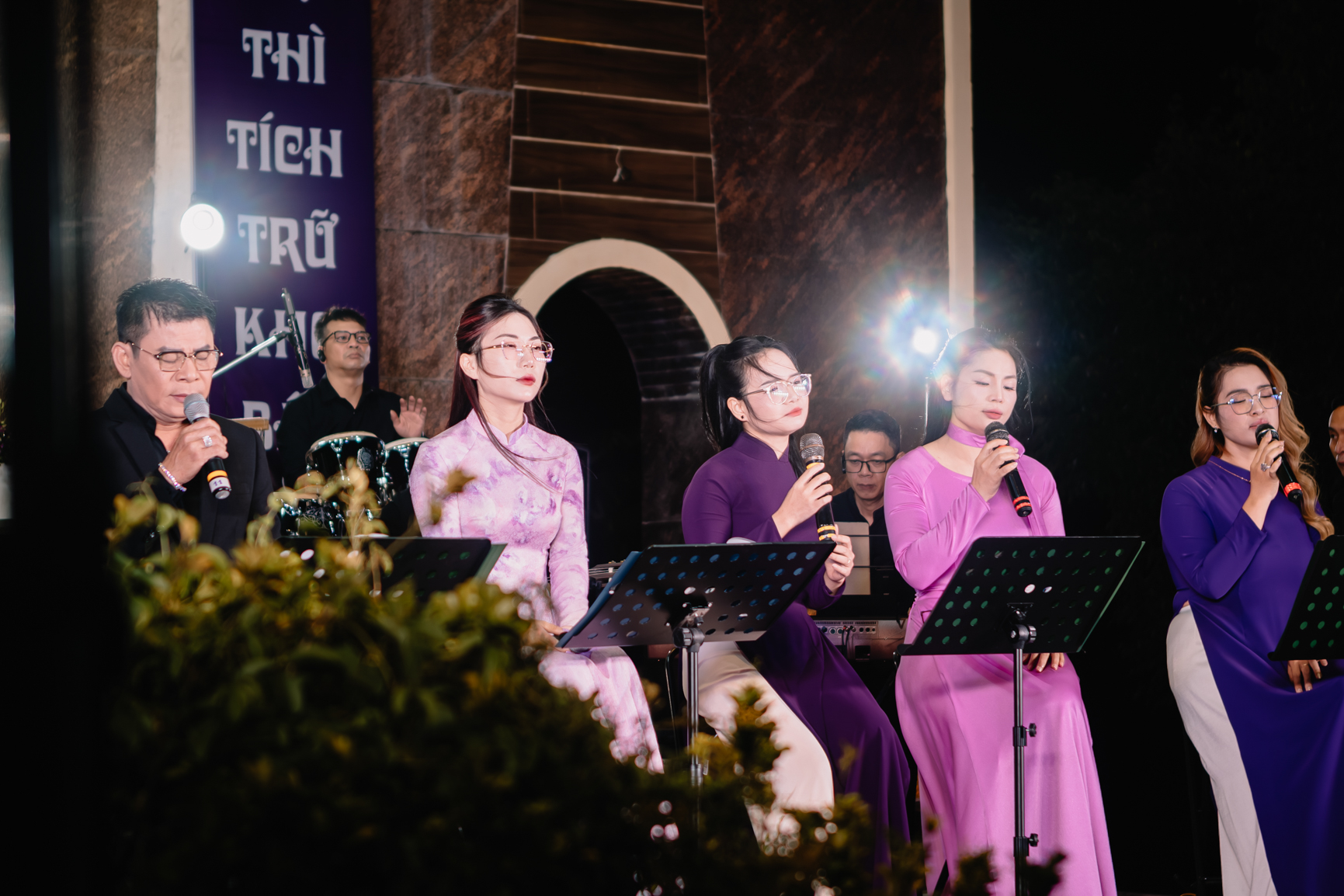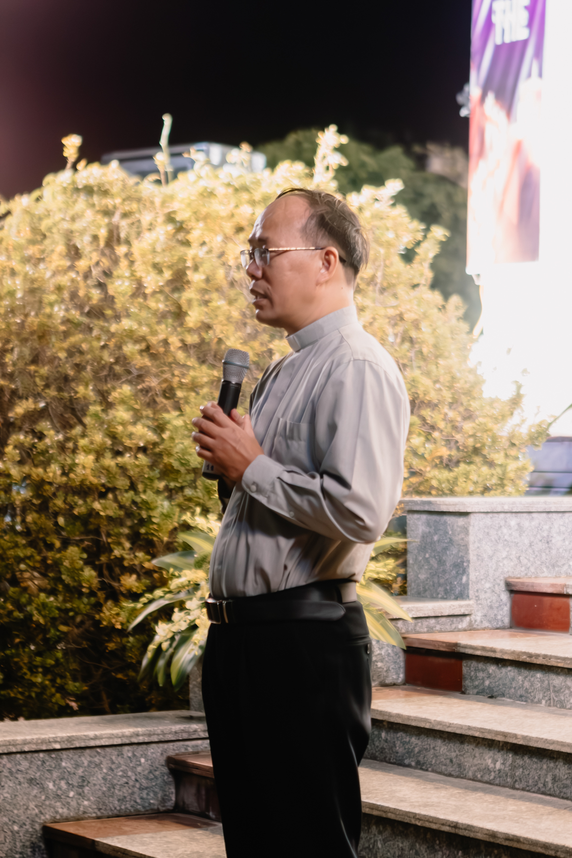 Ngay sau đó, Cha Phêrô Sanen Nguyễn Văn Hiệu – Giám đốc Caritas Giáo phận, cha đồng hành của chương trình – đã chia sẻ ý nghĩa thiêng liêng của buổi Thánh ca. Ngài nhấn mạnh rằng, Thánh ca không chỉ là những giai điệu ngân vang, mà còn là lời cầu nguyện thiết tha thay cho các linh hồn. Giữa Vườn Thánh này, mỗi người không chỉ tưởng nhớ, mà còn gặp gỡ trong Đức tin, trong niềm hy vọng và trong tình yêu của Đấng Phục Sinh. Chính đó cũng là điều mà các linh hồn đang khát khao – mong từng tín hữu còn sống hướng lòng về họ trong lời cầu nguyện và yêu thương.