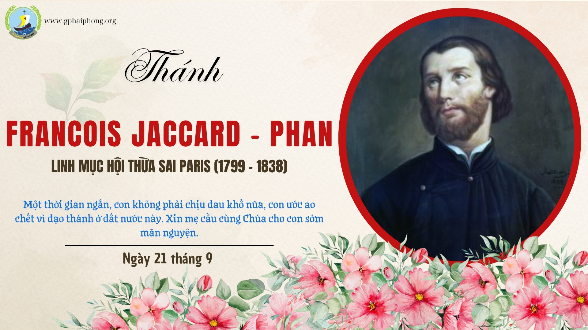 Thánh François Jaccard - Phan chào đời ngày 06-9-1799 tại làng Onion, thuộc miền Savoie, nước Pháp, trong một gia đình sùng đạo. Cho dầu sống giữa thời cách mạng Pháp (1789) nhưng song thân chuyên tâm cho con cái có được nền giáo dục Kitô giáo.