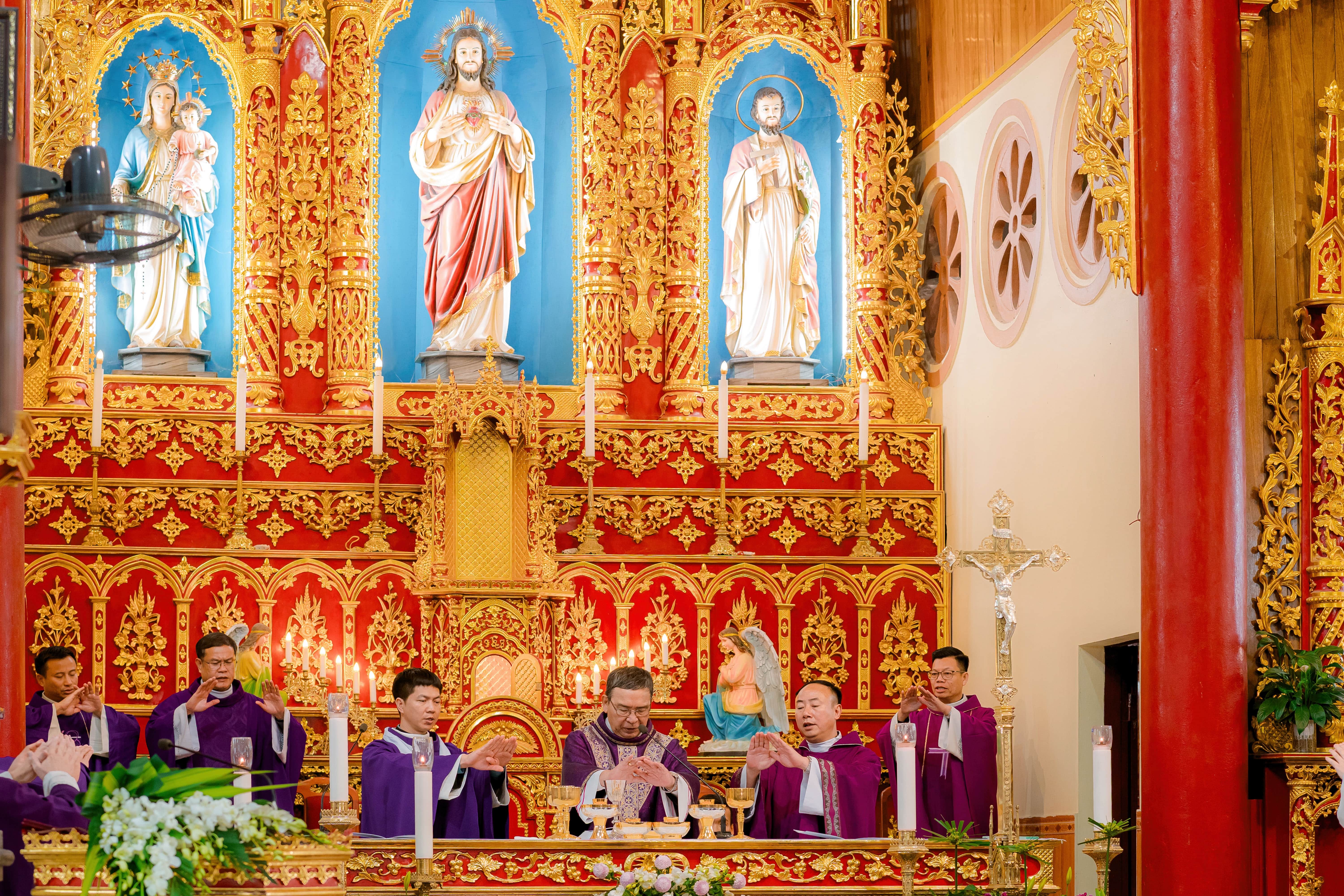 Hiệp thông trong Thánh lễ có sự hiện diện của quý Cha trong Giáo phận, quý Cha cùng lớp Chủng viện với Cha Đa Minh, quý nam nữ tu sĩ, cùng đông đảo cộng đoàn Dân Chúa – quy tụ trong niềm thương mến và hiệp thông cầu nguyện cho bà cố.