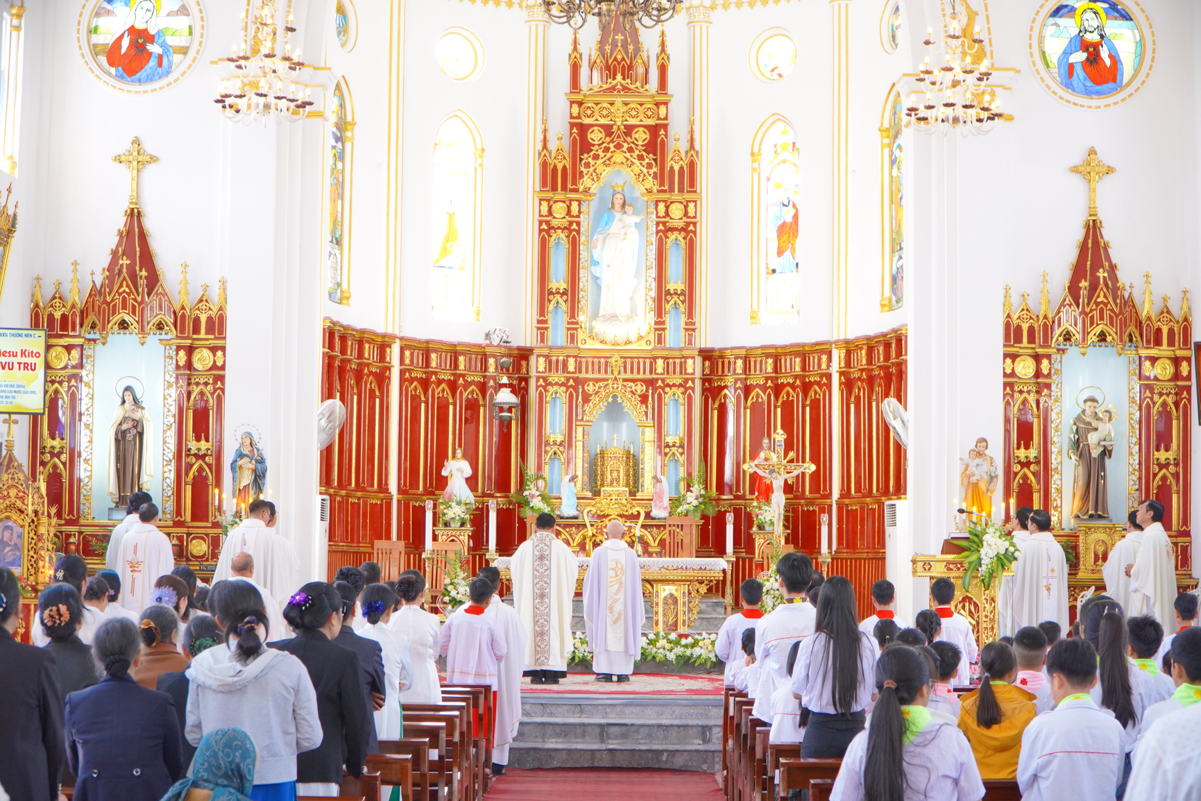 Khởi đầu Thánh lễ, Cha chủ sự mời gọi cộng đoàn hướng lòng về Chúa Giêsu – Vị Vua của tình yêu và bình an, Đấng hằng đồng hành và dẫn dắt dân Người qua mọi chặng đường của đời sống đức tin.