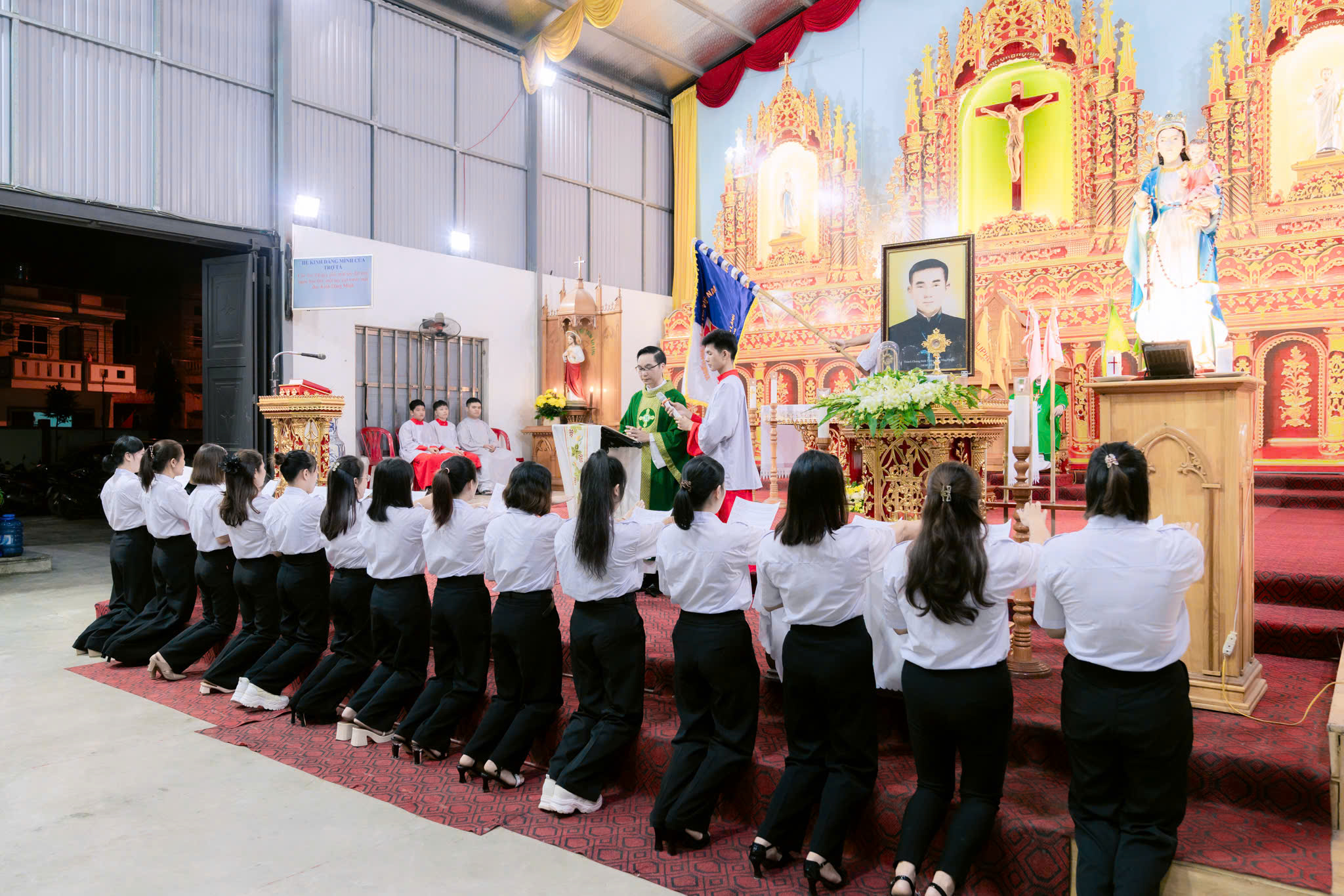 Bầu khí sốt sắng và tràn đầy niềm vui bao trùm nhà thờ trong ngày hồng phúc này, với sự hiện diện đông đảo của cộng đoàn dân Chúa, đặc biệt là các Thiếu nhi Thánh Thể – những khuôn mặt vẫn còn ánh lên niềm hạnh phúc của Thánh lễ thành lập Xứ đoàn được cử hành cách đây một tuần, ngày 19/10/2025. Tất nhiên, niềm vui lớn nhất hôm nay thuộc về các thành viên Ban Trợ tá Xứ đoàn, những người được tuyên hứa ra mắt trong Thánh lễ này.