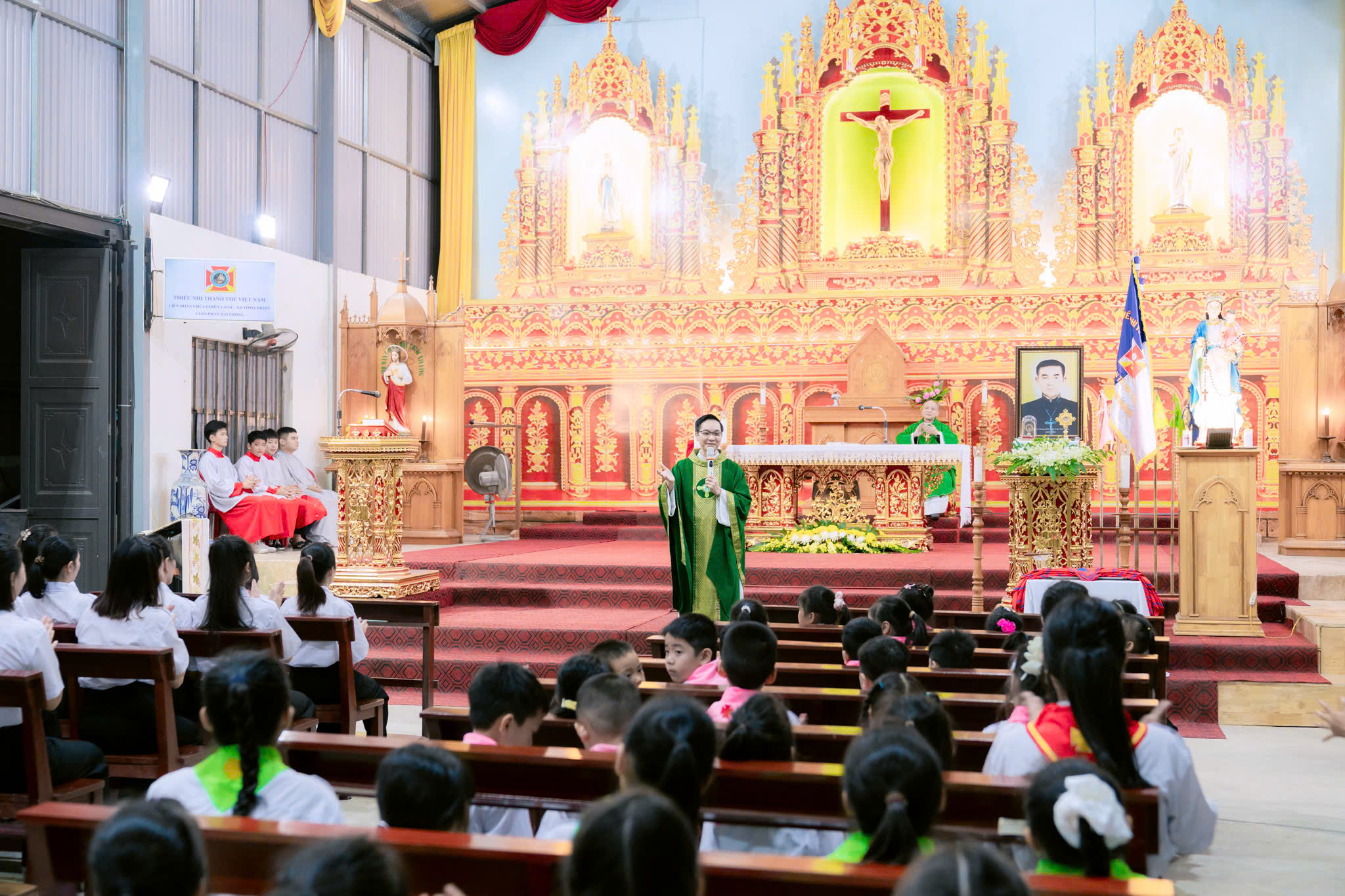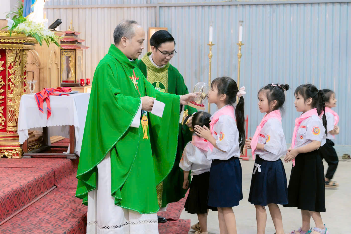 Trong bài giảng lễ, Cha Tuyên úy Phêrô chia sẻ về vai trò không thể thiếu của các phụ huynh trong việc đồng hành cùng Xứ đoàn TNTT. Ngài nhấn mạnh: “Sự phát triển nhân cách và đời sống đức tin của các em thiếu nhi không chỉ là trách nhiệm riêng của Cha xứ và các Huynh trưởng – Giáo lý viên, mà còn là sứ mạng thiêng liêng của mọi thành phần trong Giáo hội, nhất là các bậc phụ huynh. Vì thế, sự hỗ trợ bằng thời gian, công sức và lời cầu nguyện từ cha mẹ là điều không thể thiếu, mang lại nhiều ích lợi cho con em mình và cho cộng đoàn.