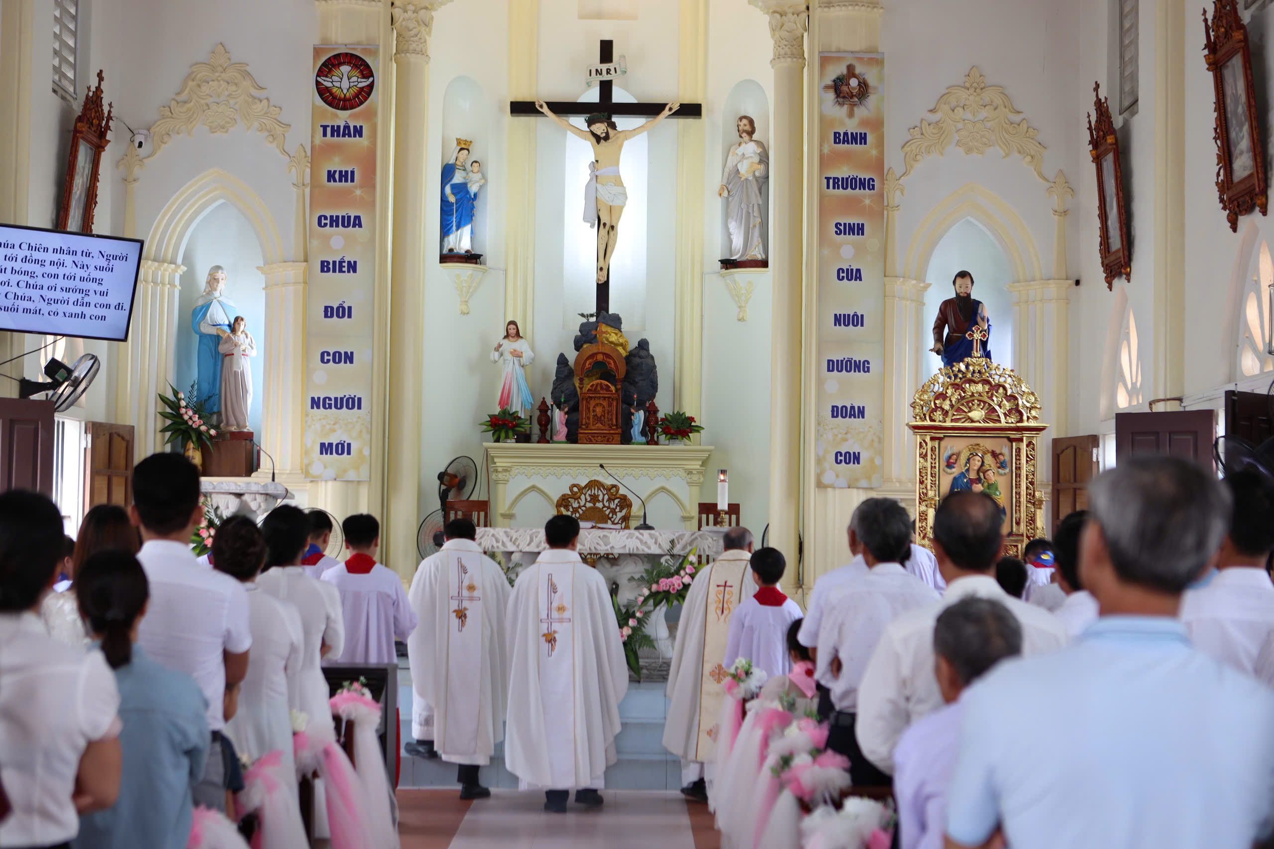 Mở đầu Thánh lễ, Cha Quản hạt Giuse Nguyễn Văn Vang chia sẻ: Chúa Giêsu Phục Sinh ban cho nhân loại sức sống mới, đó là sự sống trong ân sủng và niềm vui, nhờ biết lắng nghe và thực thi giáo huấn của Vị Mục Tử nhân lành.