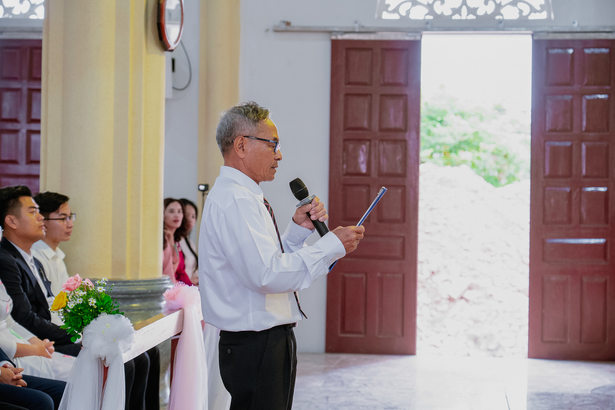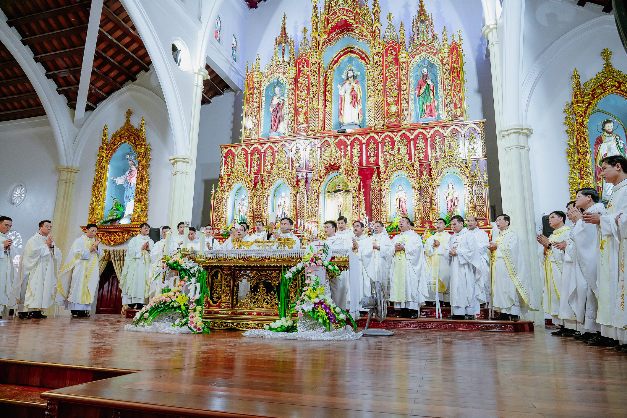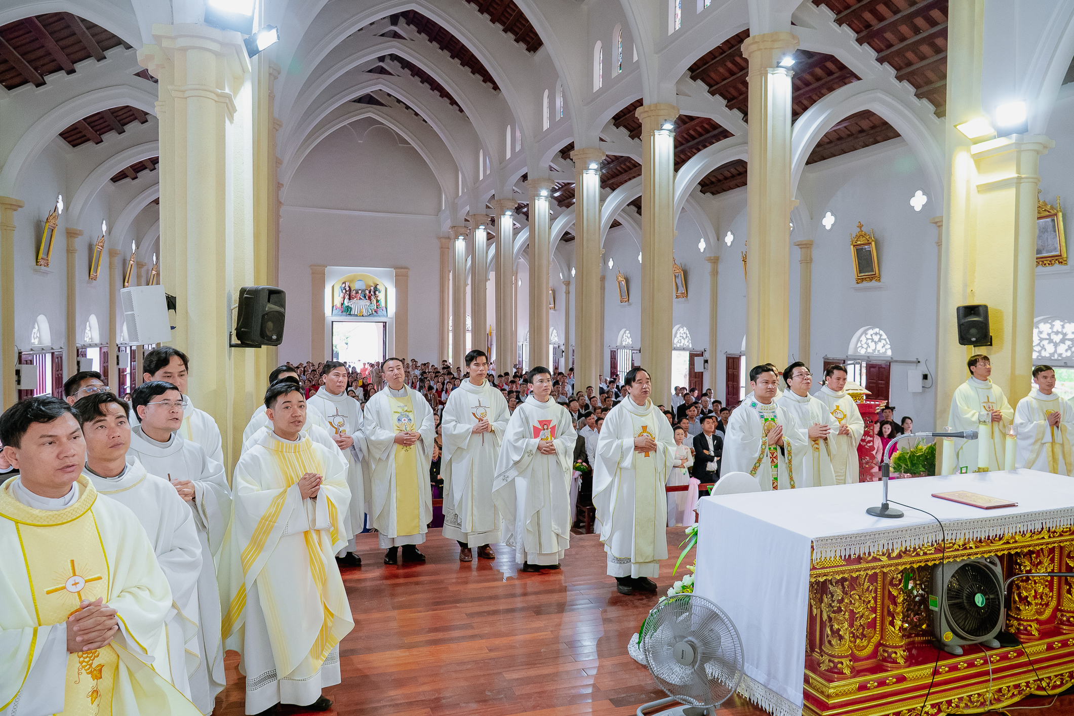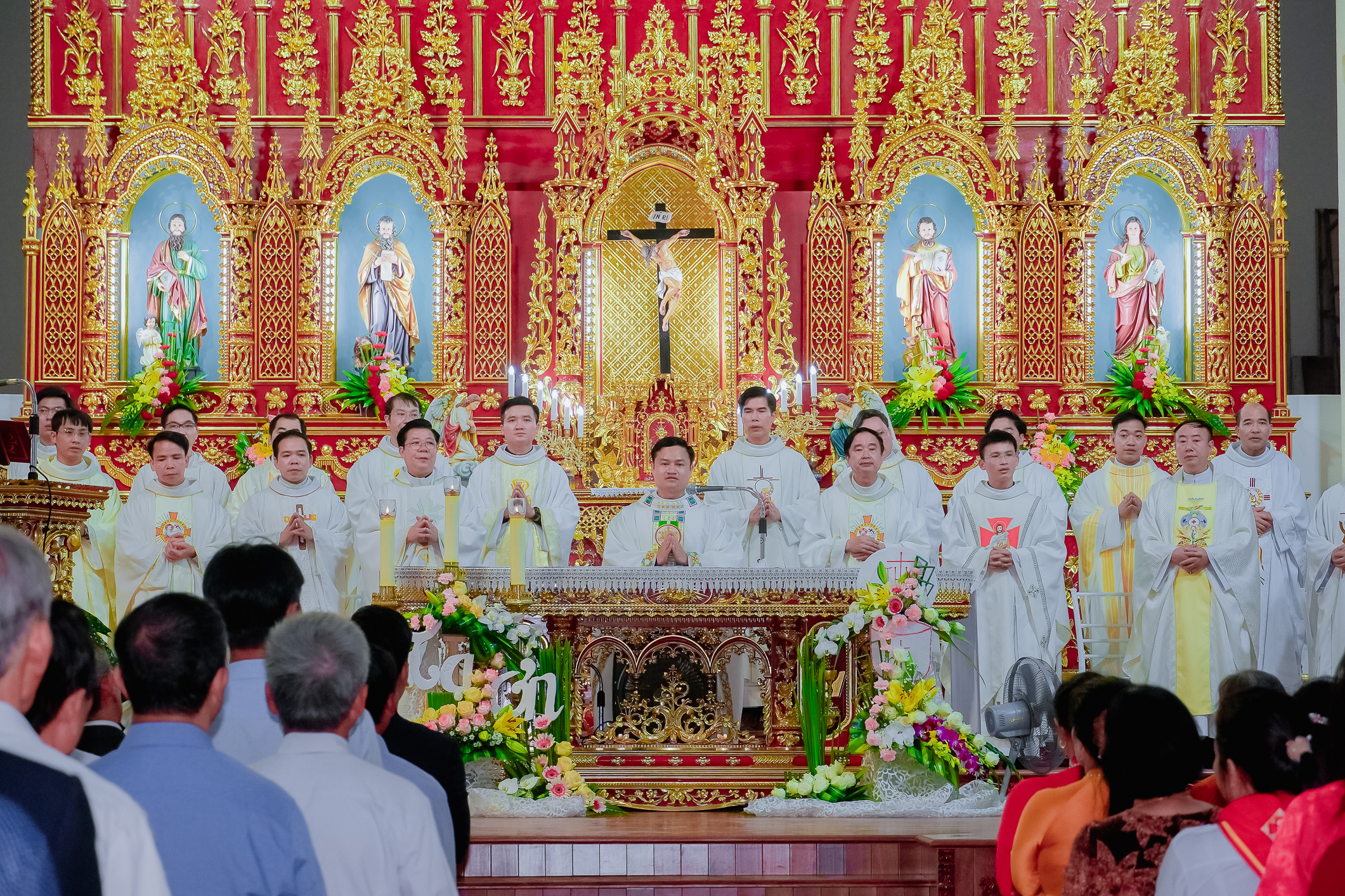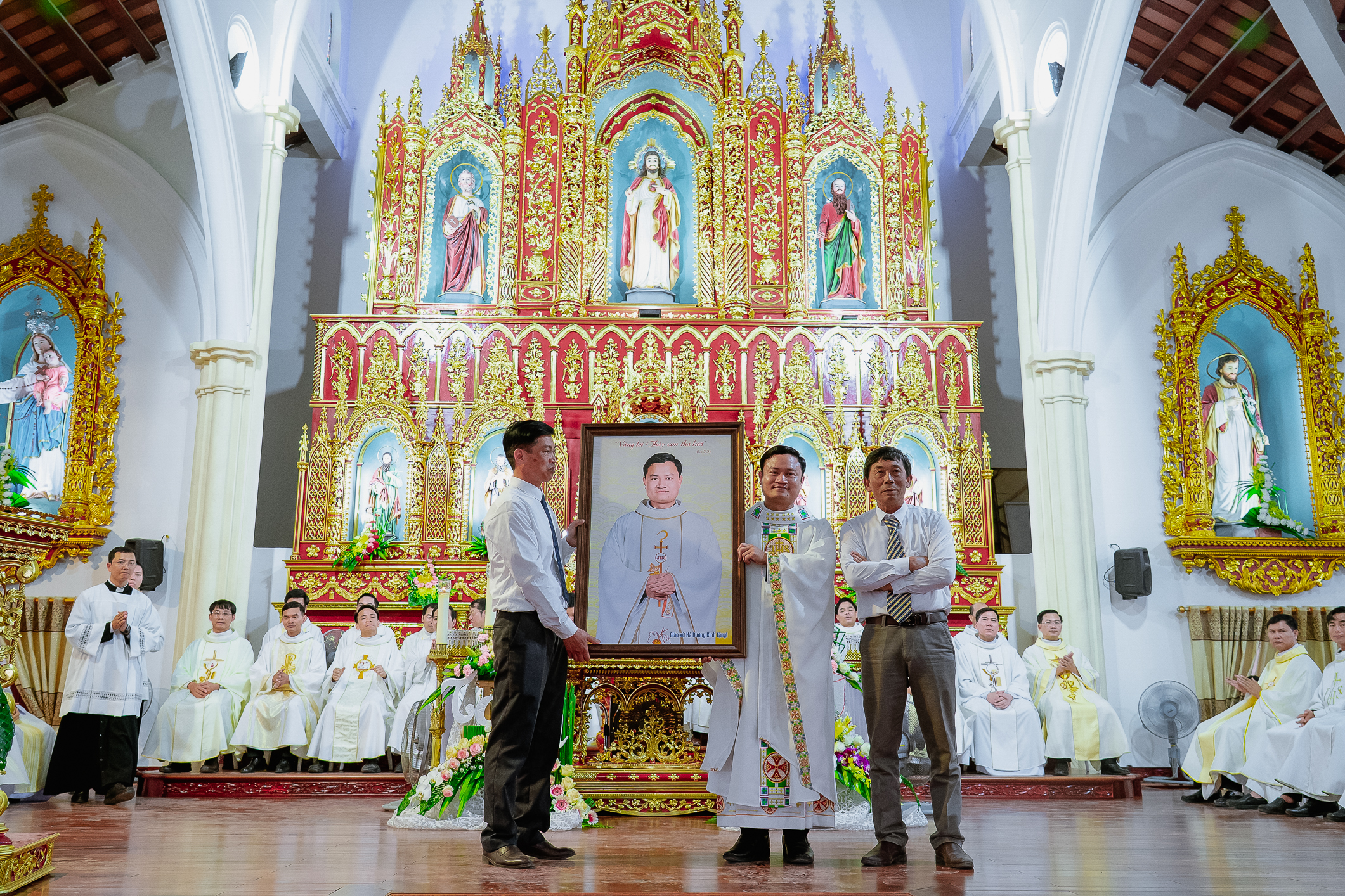 Cùng hiệp dâng trong Thánh lễ với Tân Linh mục có quý cha Quản hạt, quý cha cố, quý cha đồng tế trong và ngoài Giáo phận, quý tu sĩ, quý khách, quý thân-ân nhân, các cộng đoàn thuộc các Giáo xứ nơi Tân linh mục đã mục vụ, cùng cộng đoàn giáo dân sở tại.