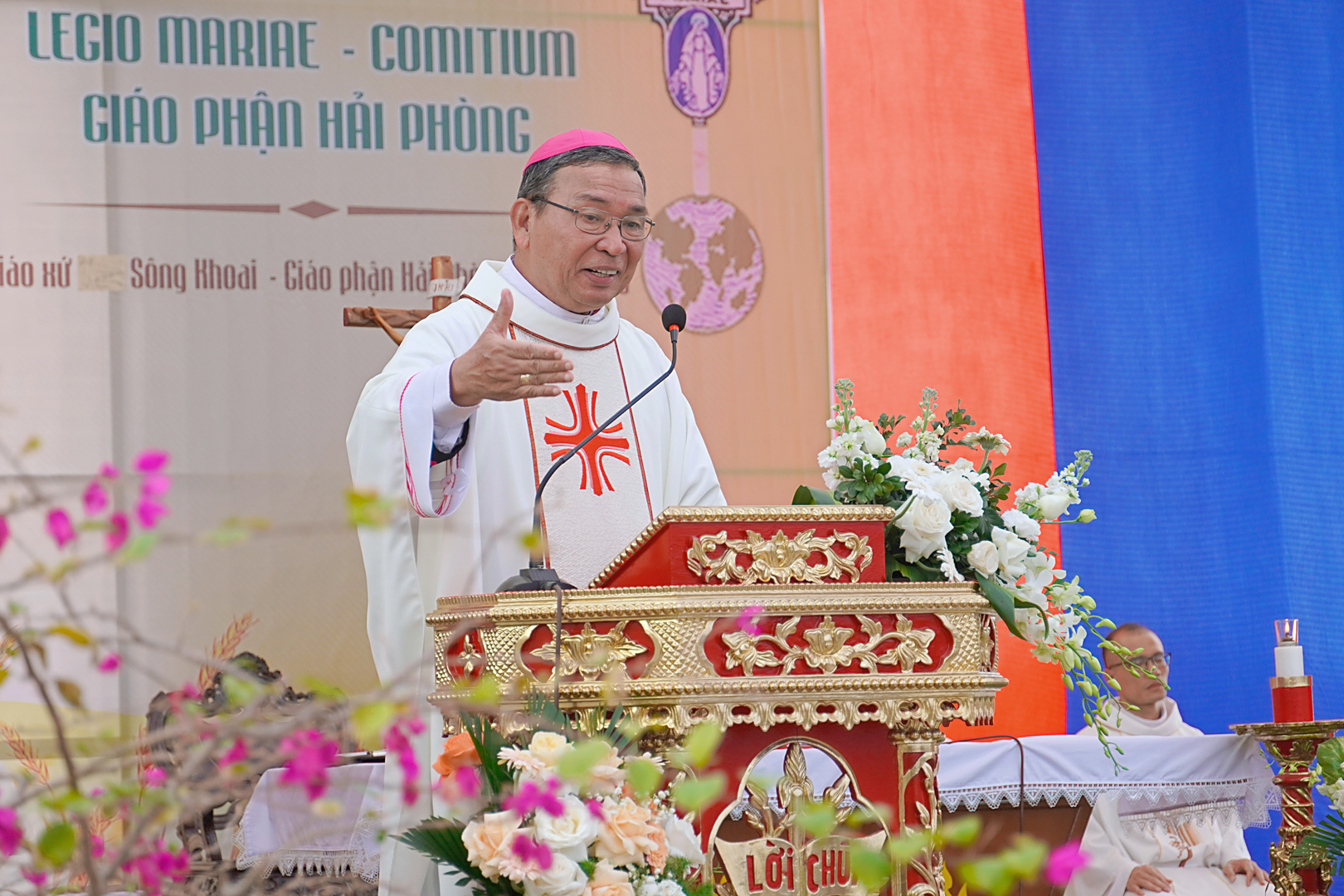 Ngài mời gọi cộng đoàn đào sâu đức tin qua việc học hỏi giáo lý và suy niệm Lời Chúa, để luôn “sẵn sàng trả lời cho niềm hy vọng của mình” như lời dạy của Thánh Phê-rô. Đức Cha cũng khẳng định vai trò đặc biệt của Đức Maria trong chương trình cứu độ, như một điểm tựa thiêng liêng vững chắc cho người truyền giáo.