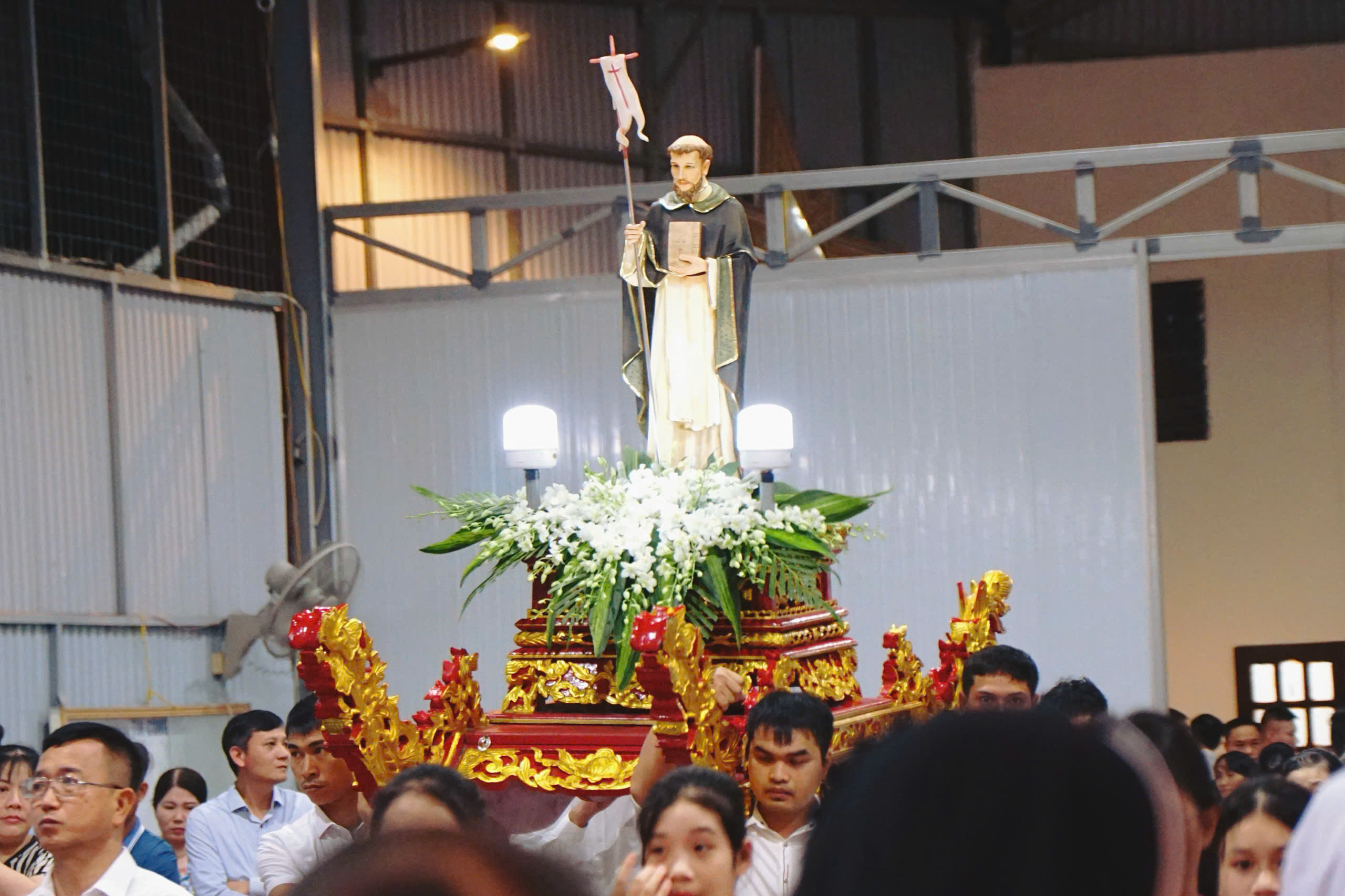 Sau nghi thức làm phép tượng là cuộc rước long trọng bước vào Thánh lễ. Với lời mở đầu Thánh lễ, cha xứ bày tỏ vui mừng trước tấm lòng nhiệt thành và dấn thân phục vụ cộng đoàn của các bạn trẻ là thành viên Hội Trống. Ngài cũng nhấn mạnh việc thành lập các Ban ngành hội đoàn trong giáo xứ vừa tạo cho cộng đoàn giáo xứ non trẻ một khung cơ cấu để hoạt động bền vững, vừa cho thấy sự thăng tiến, phát triển của cộng đoàn.